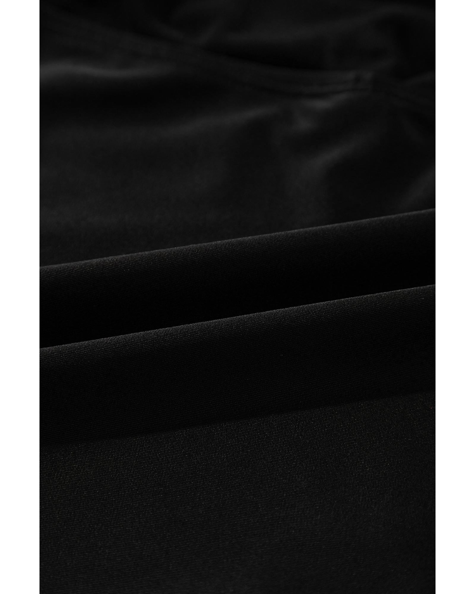 Black Pleated Mesh One Shoulder Bikini Top and Skirts Set – S