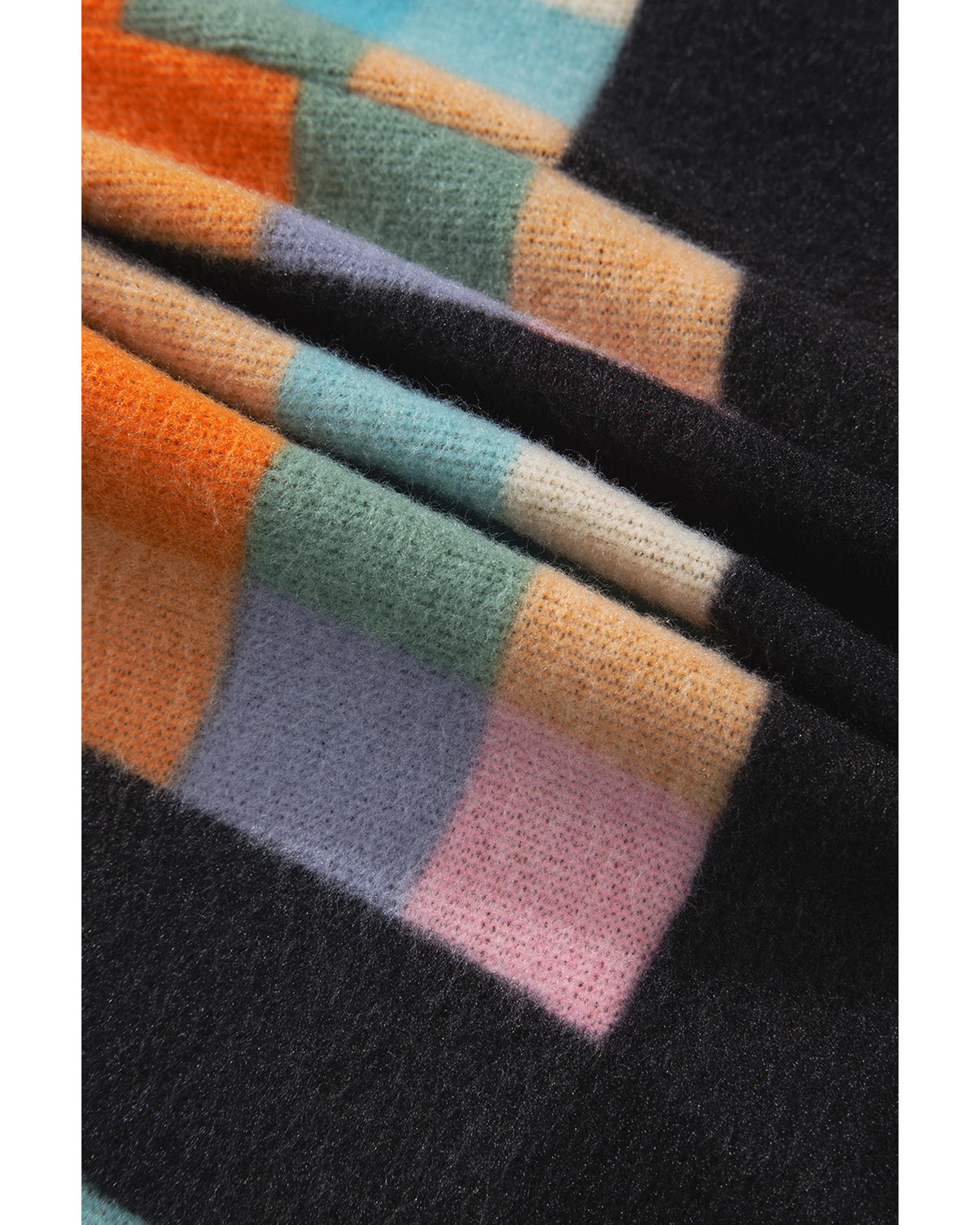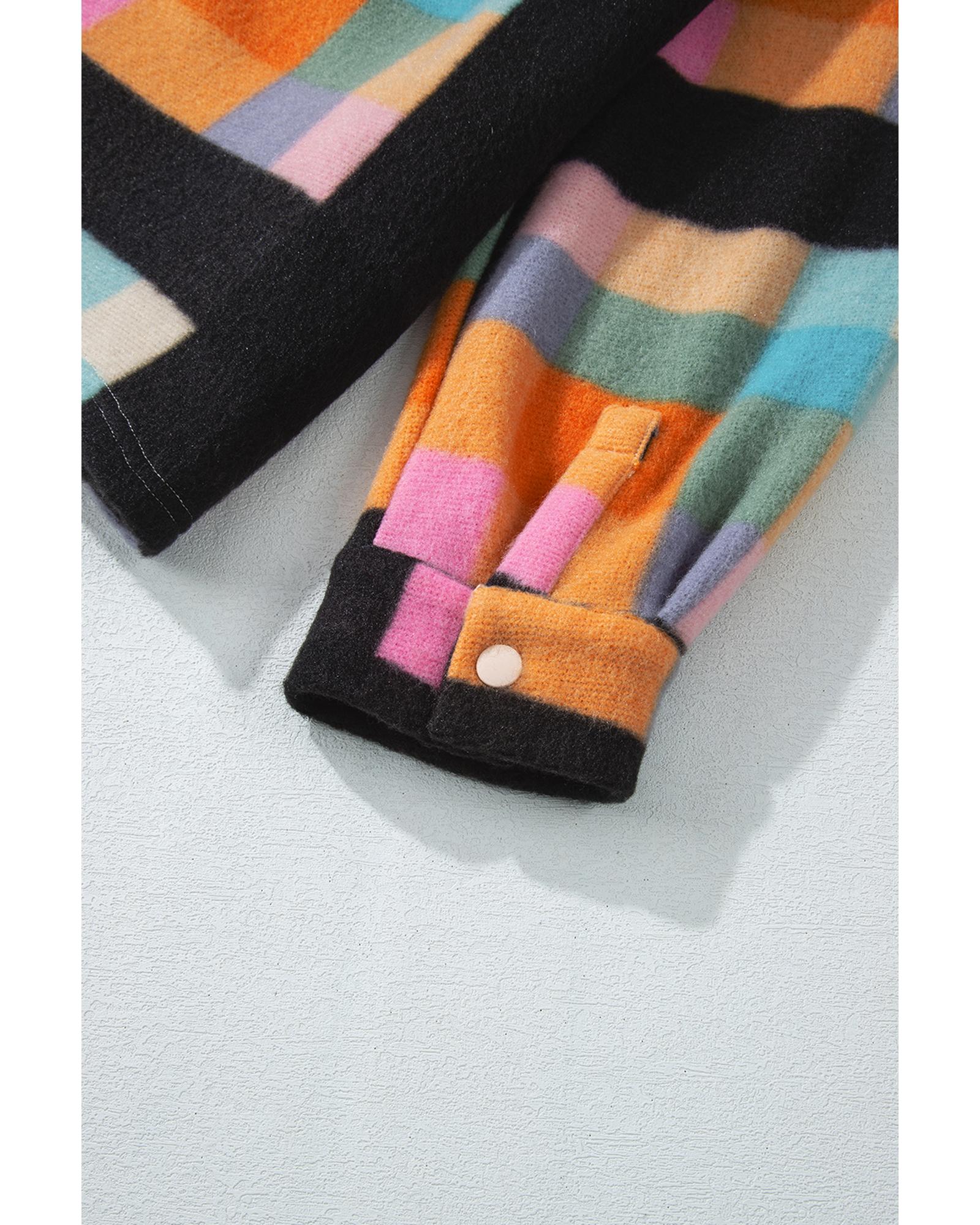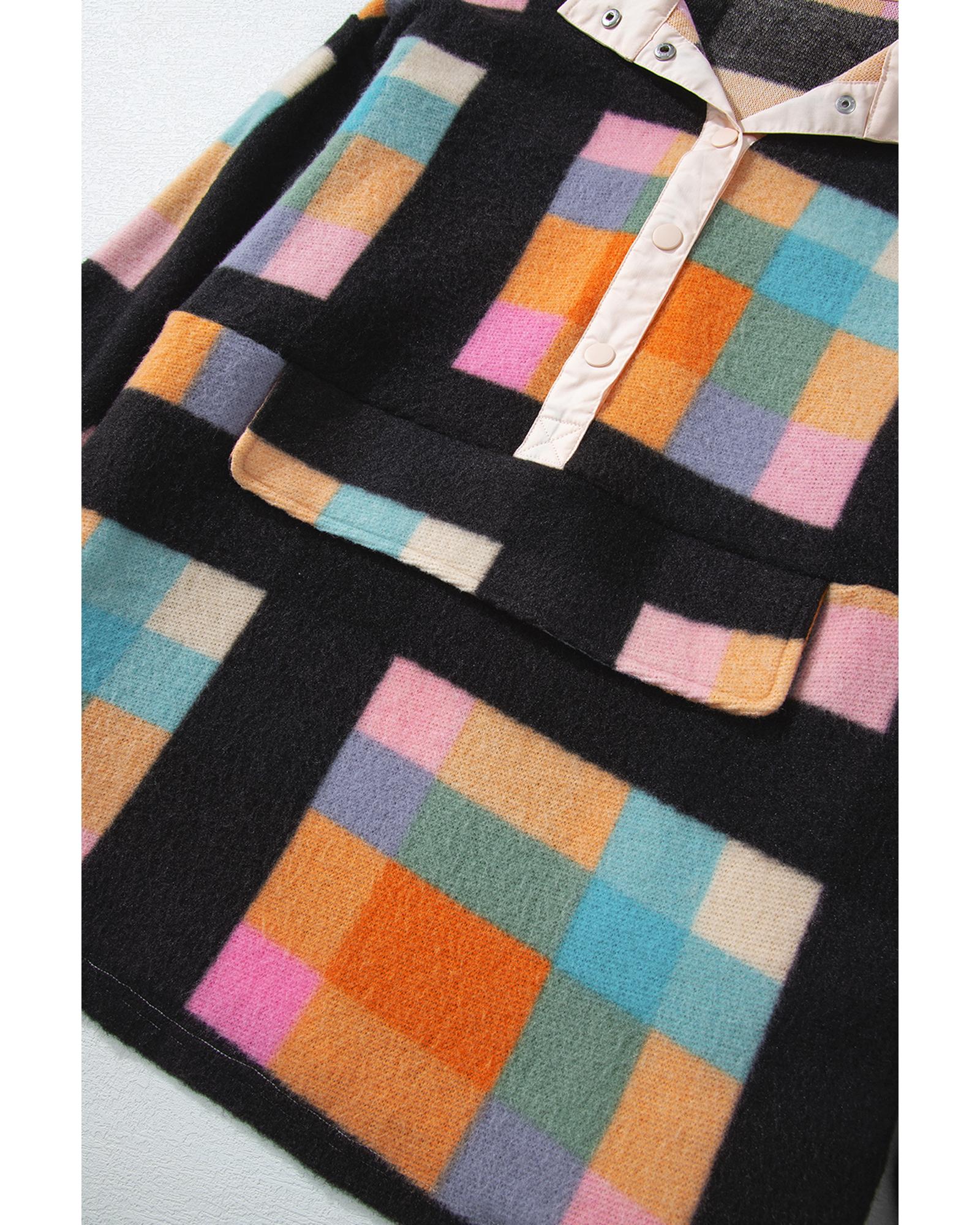 - Black Plus Size Checkered Print Sherpa Henley Sweatshirt