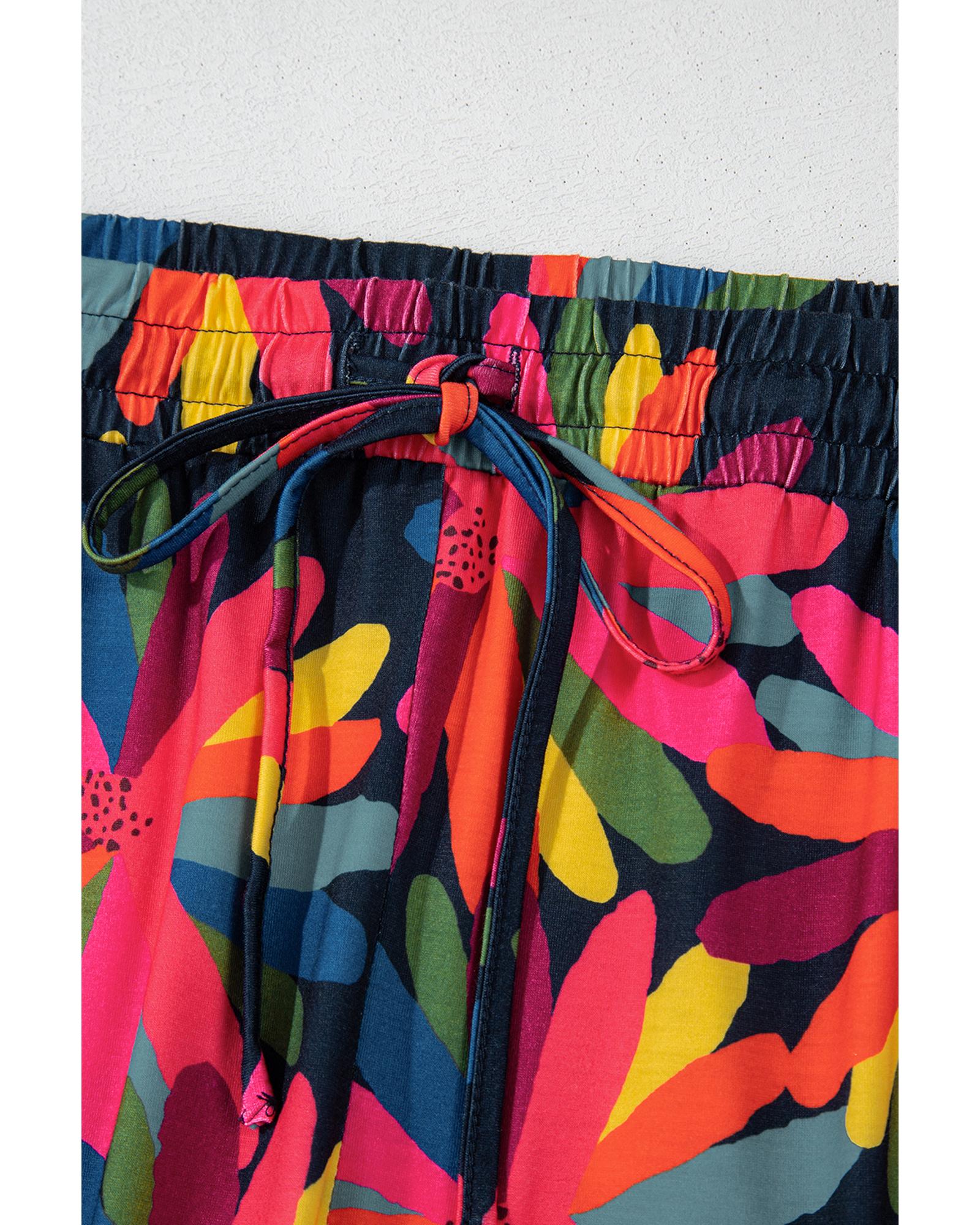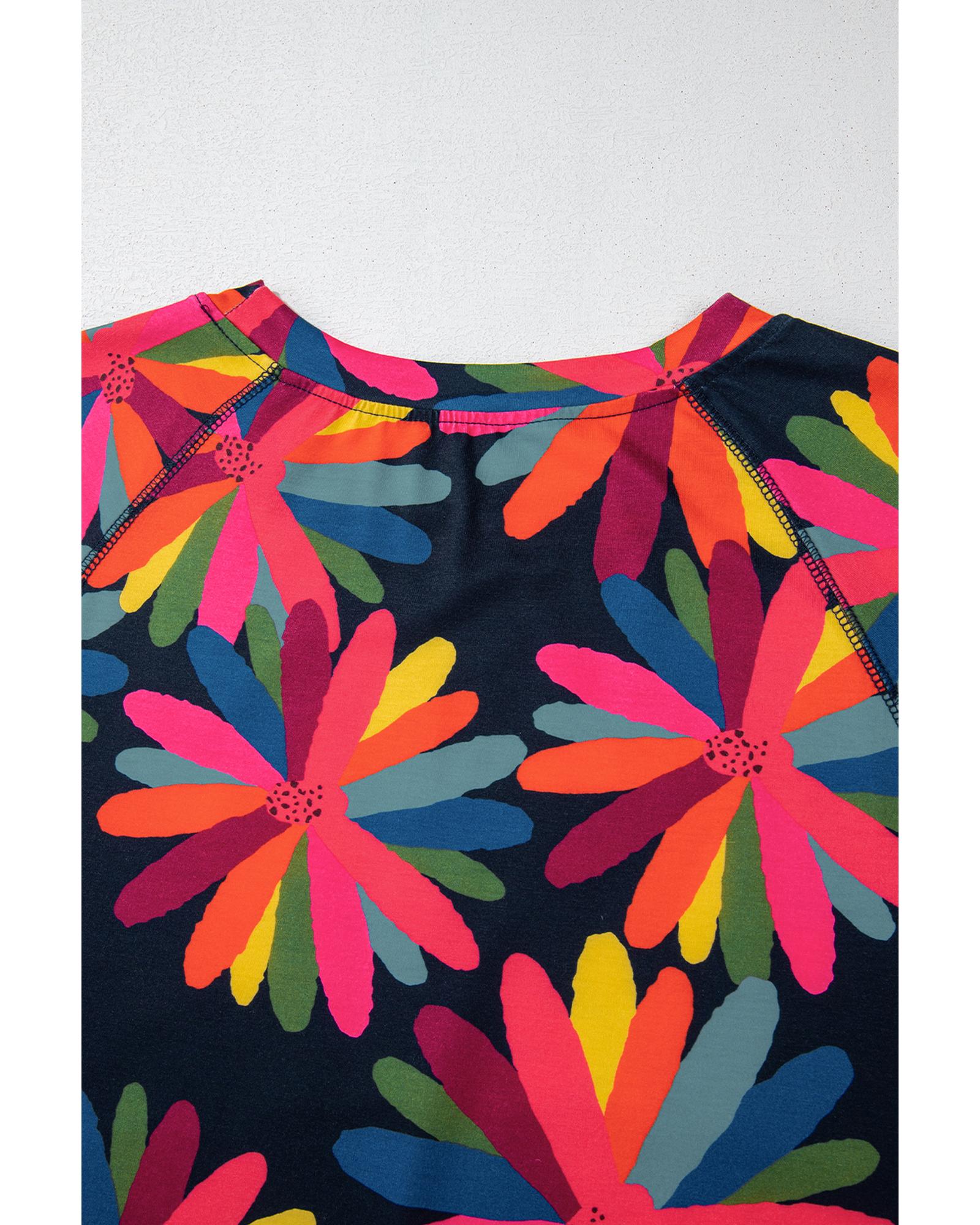 Orange Floral Print Split V Neck Bubble Sleeve Plus Size Midi Dress - 3X