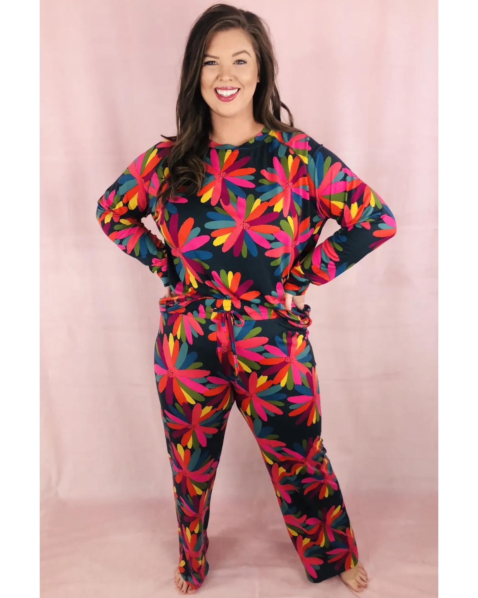 Black Plus Size Printed Long Sleeve and Pants Lounge Set – 4X