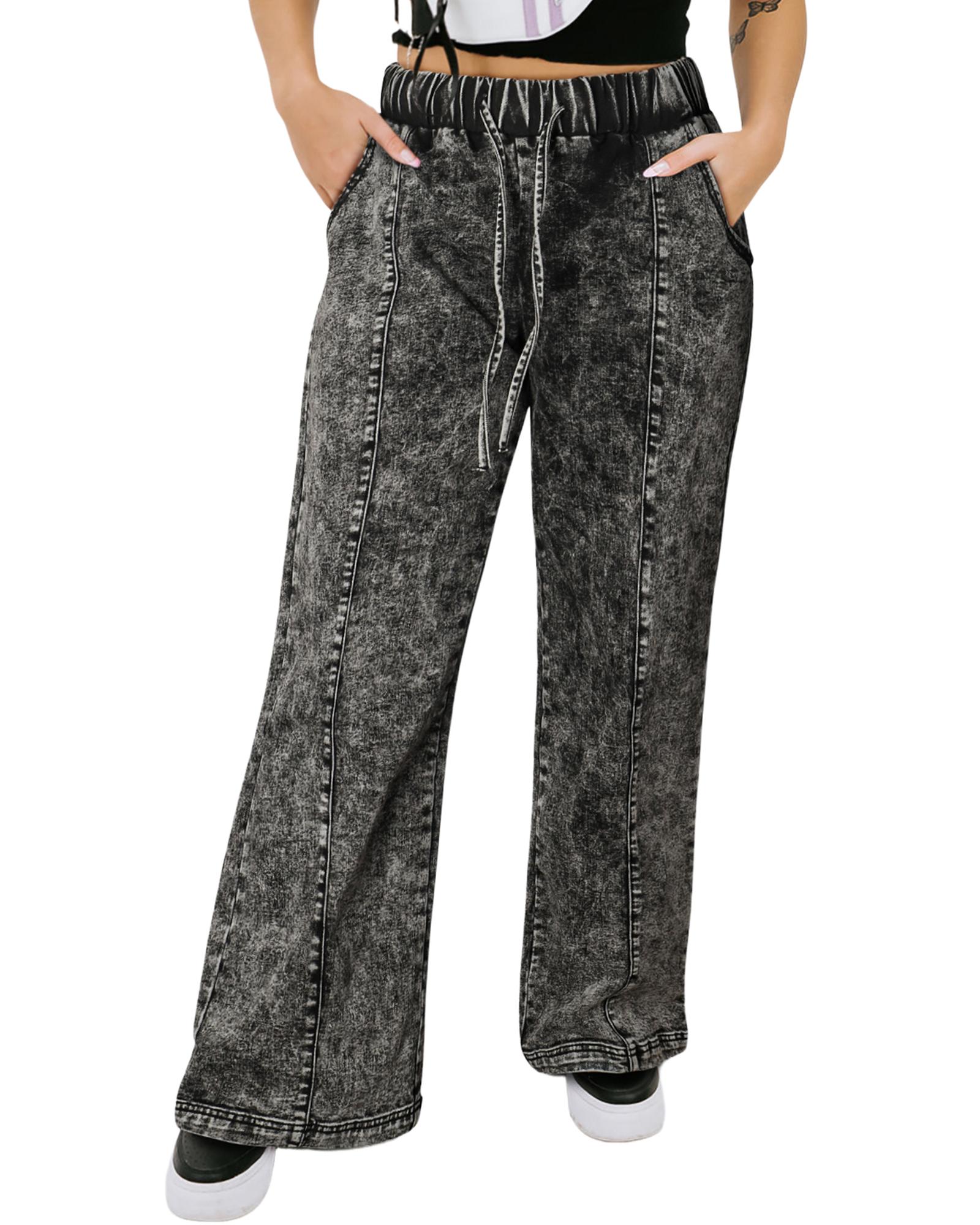 Black Plus Size Tie Dye Drawstring Splicing Wide Leg Jeans – 3X