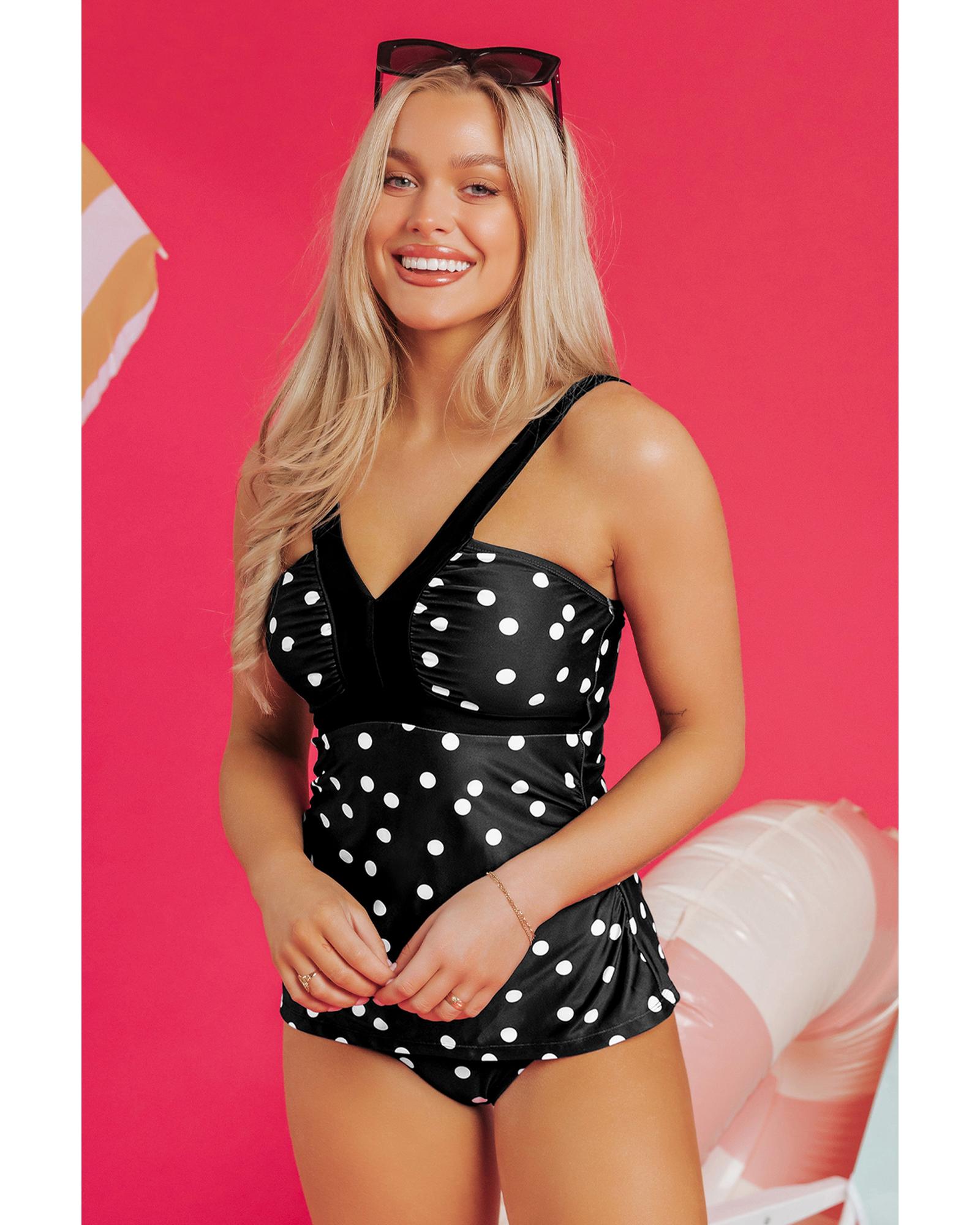 Black Polka Dot Print V Neck Tankini Set – S