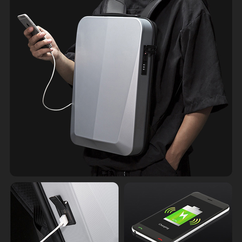 Black Premium Hard Shell Business Backpack with TSA Lock and USB Charging Port, Waterproof Laptop Bag for Men