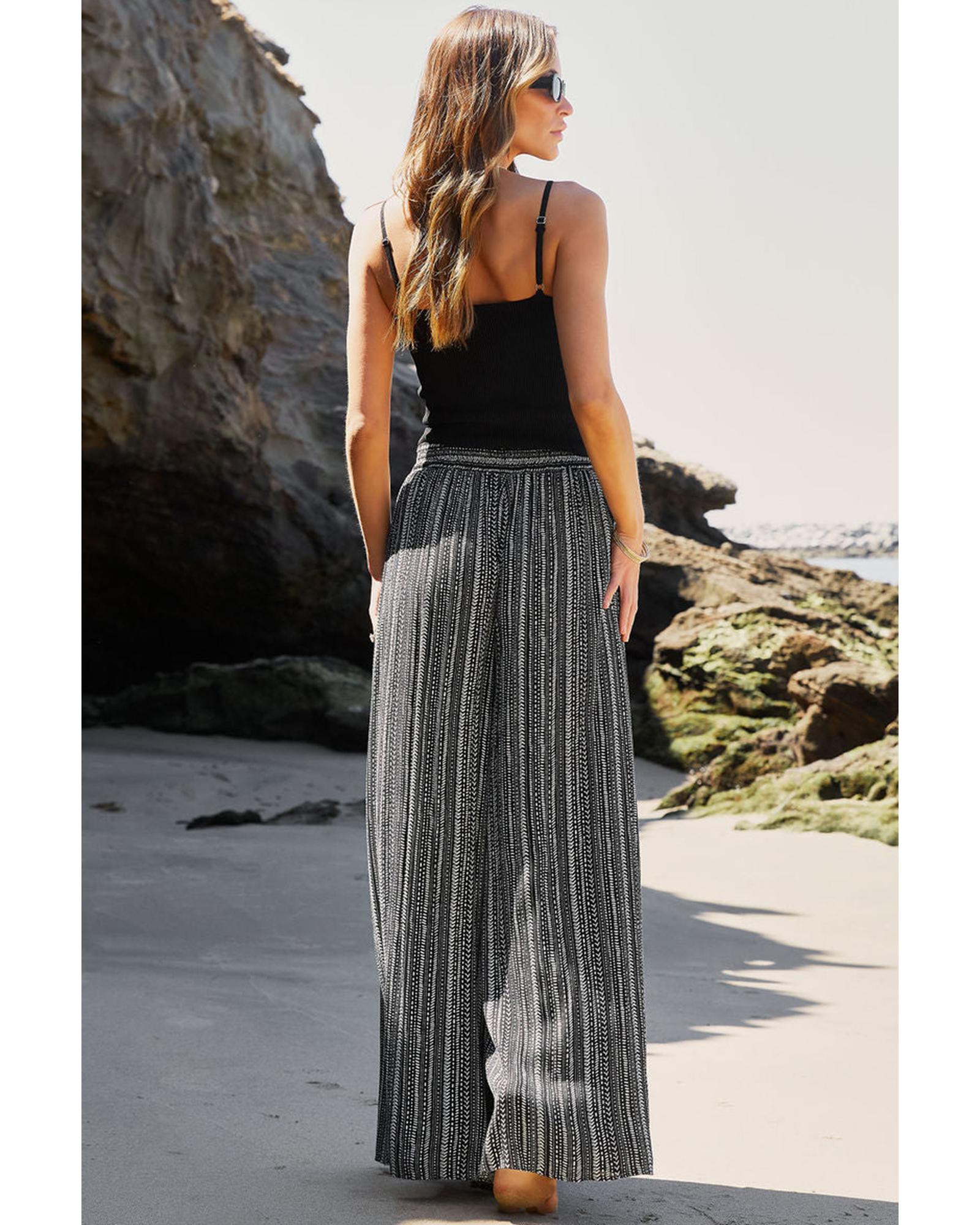 Black Printed Striped Printed Slit Wide Leg High Waist Pants – S