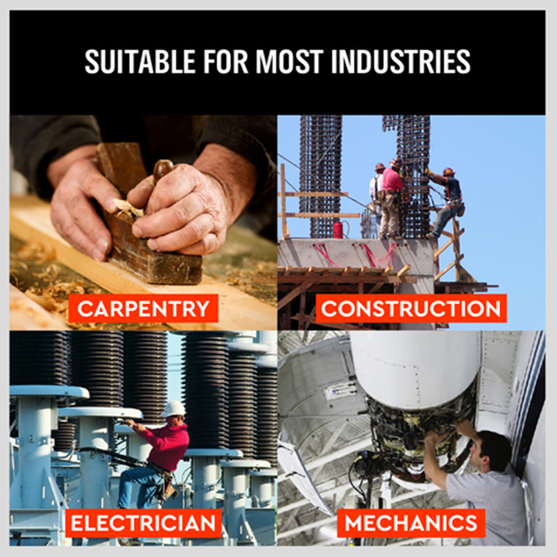 This versatile tool holder belt is suitable for a wide range of industries, including carpentry, construction, electrician work, and mechanics. Whether you are working on a building site or performing maintenance tasks, this tool belt will keep your tools within easy reach.
