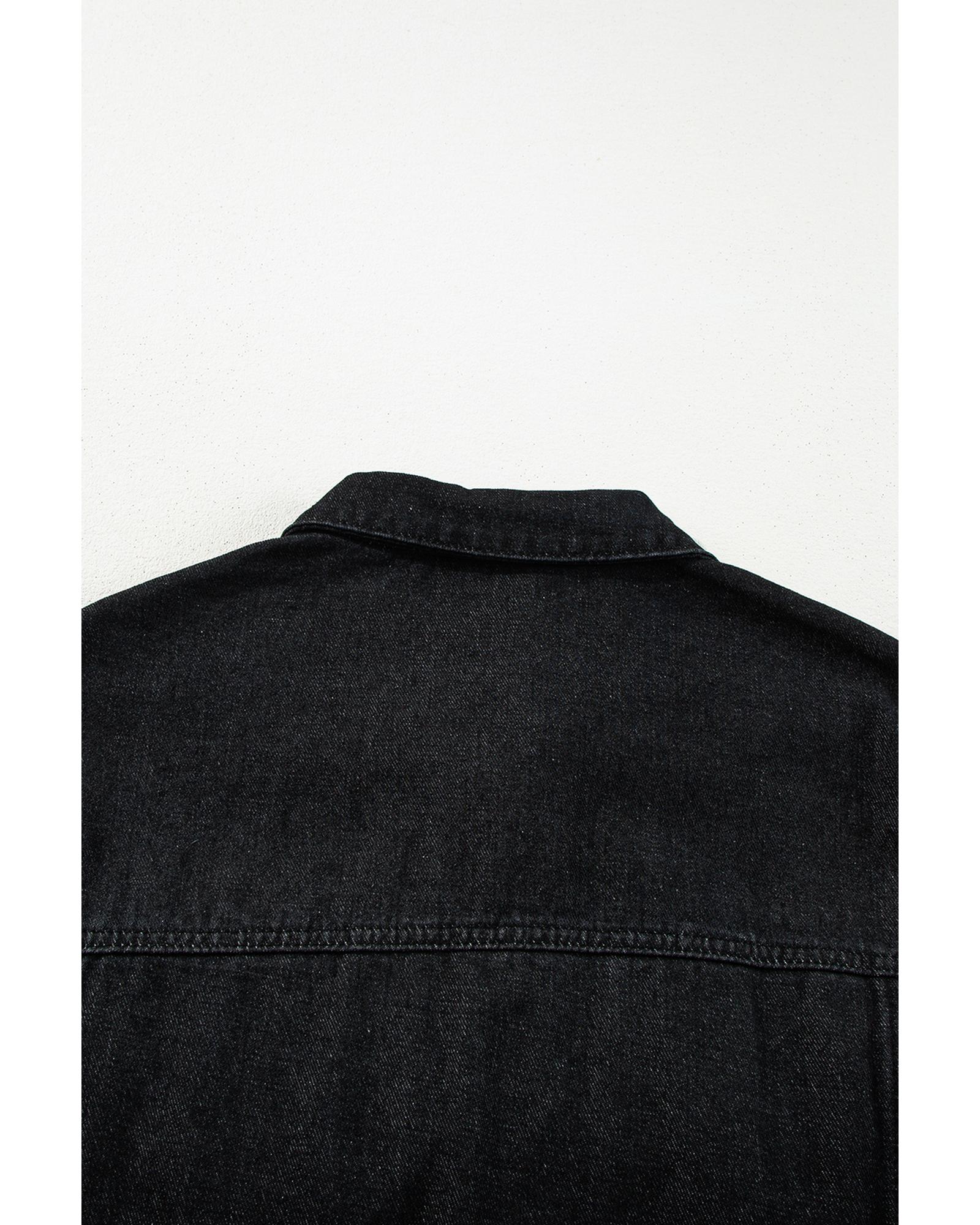 Black Raw Edge Ruffled Short Sleeve Denim Jacket – XL