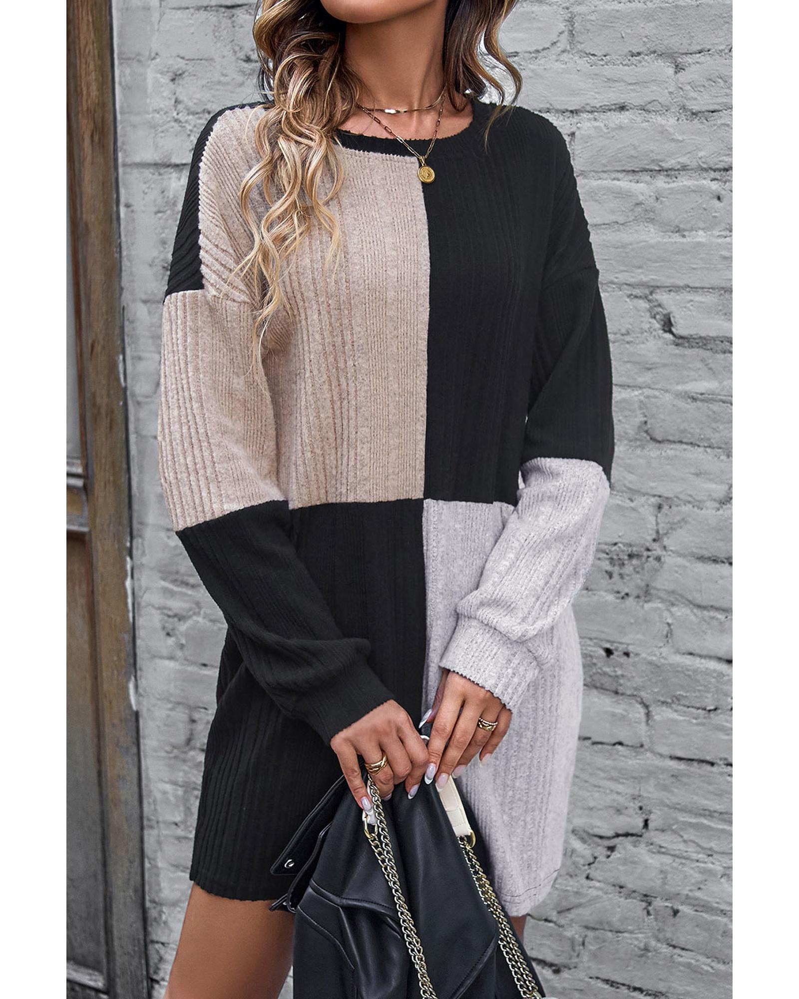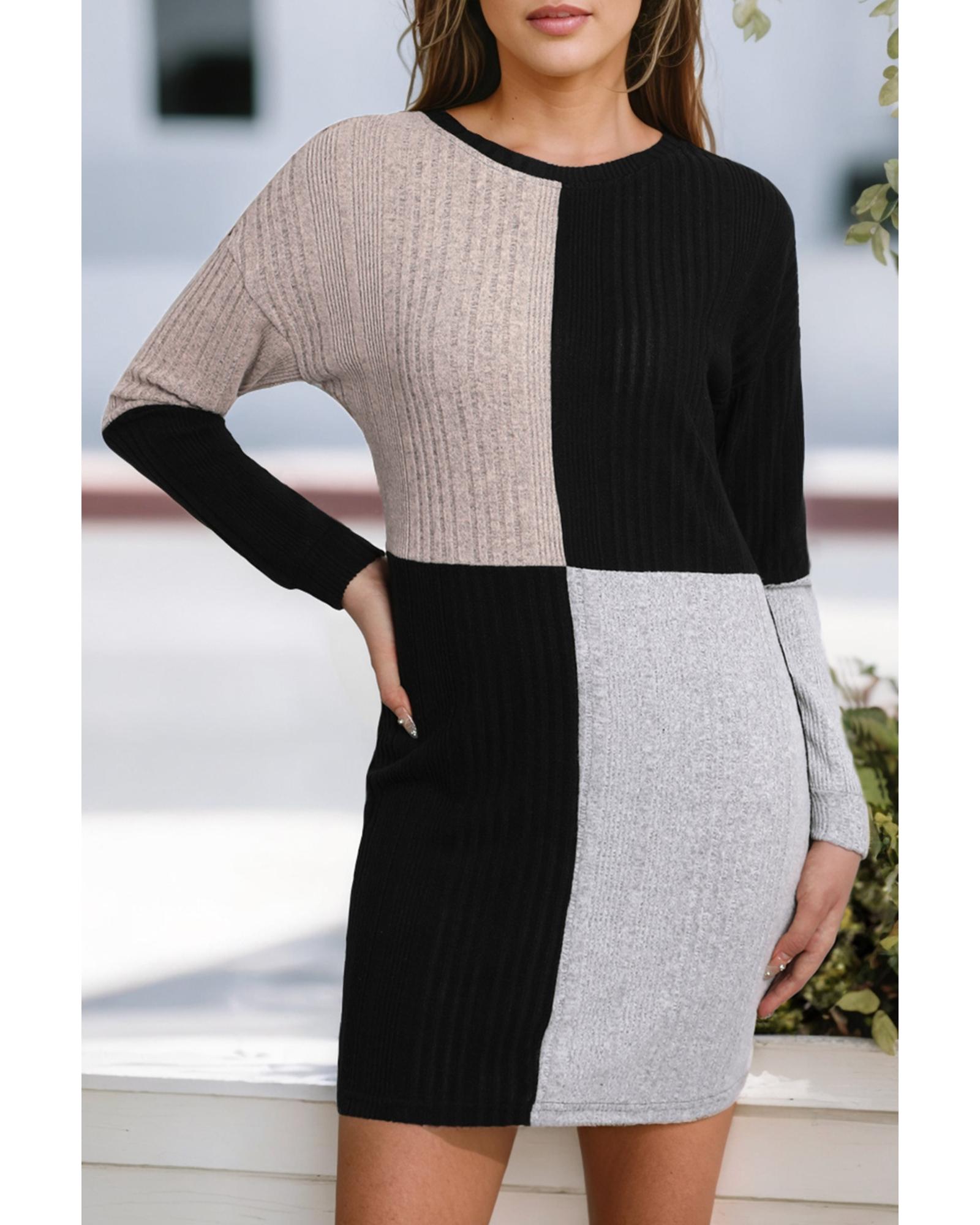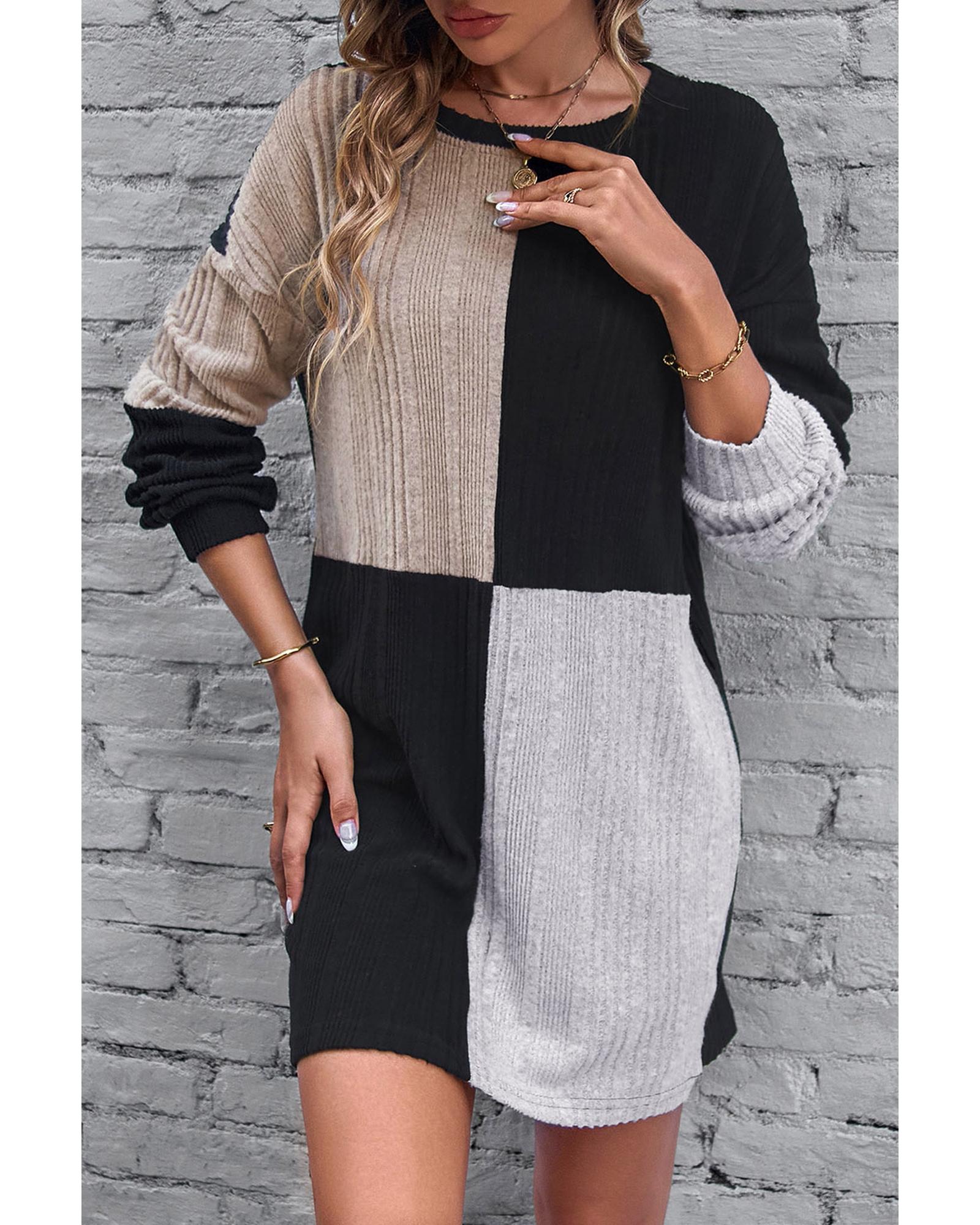 Versatile shift dress for any occasion Ribbed texture and color block design for a trendy look Long sleeves for extra warmth and coverage Flirty and versatile for women of all age groups - Material: 95% Polyester 5% Elastane