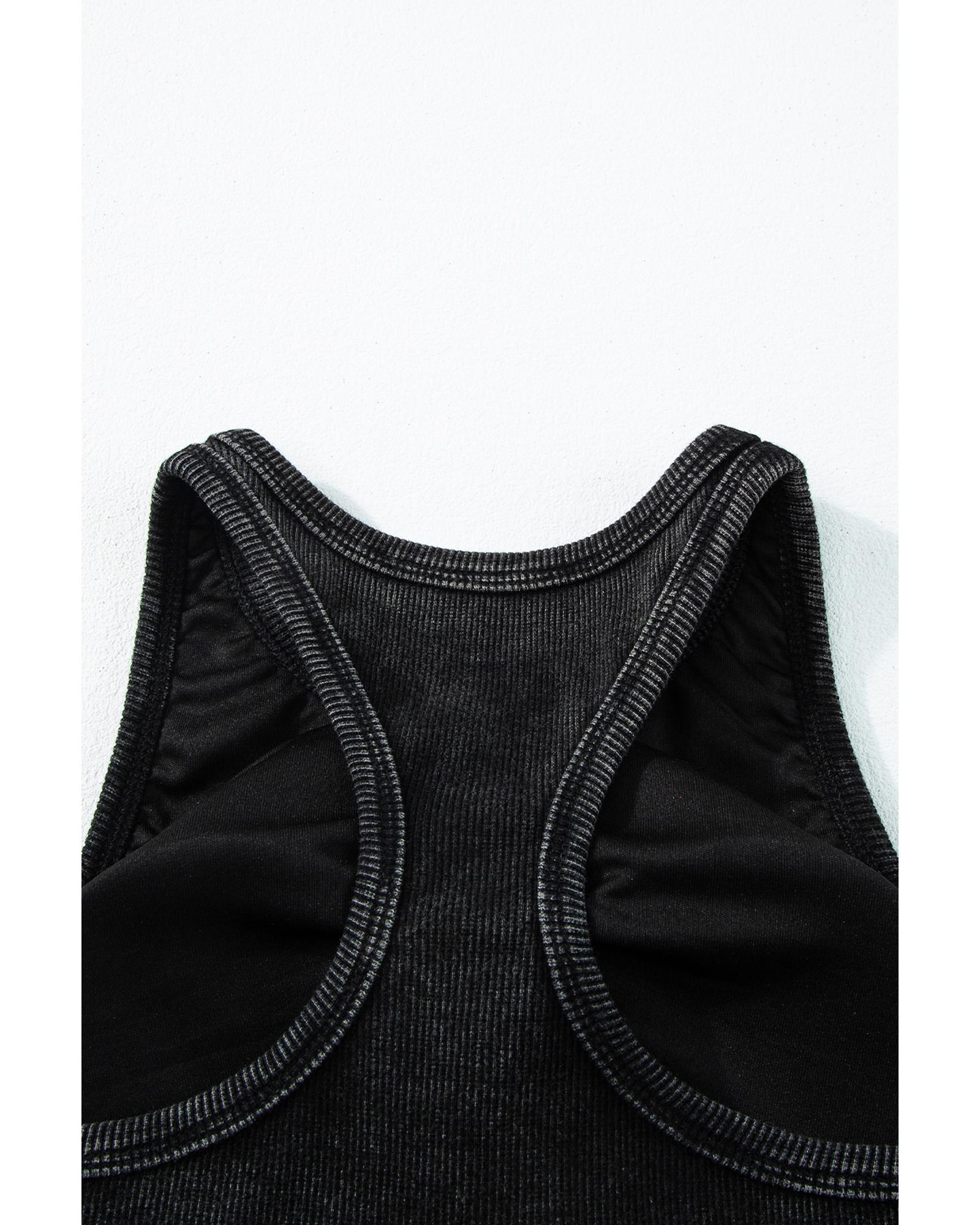 Black Ribbed Mineral Wash Racerback Cropped Tank Top – L