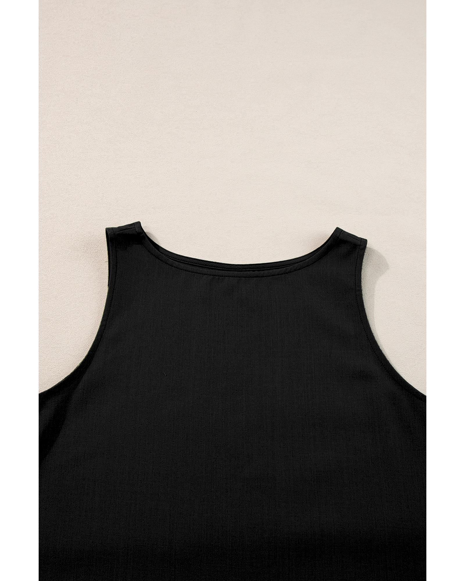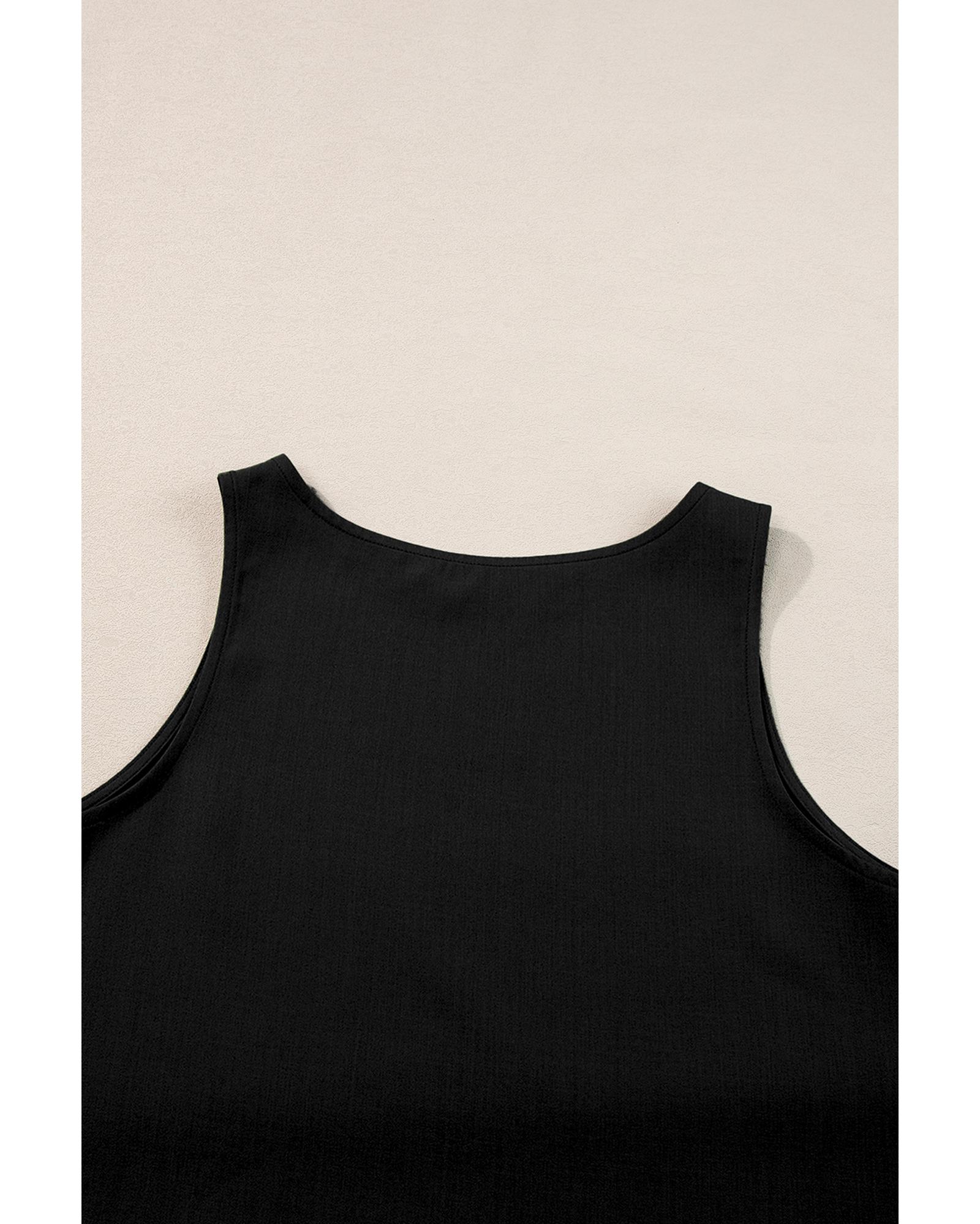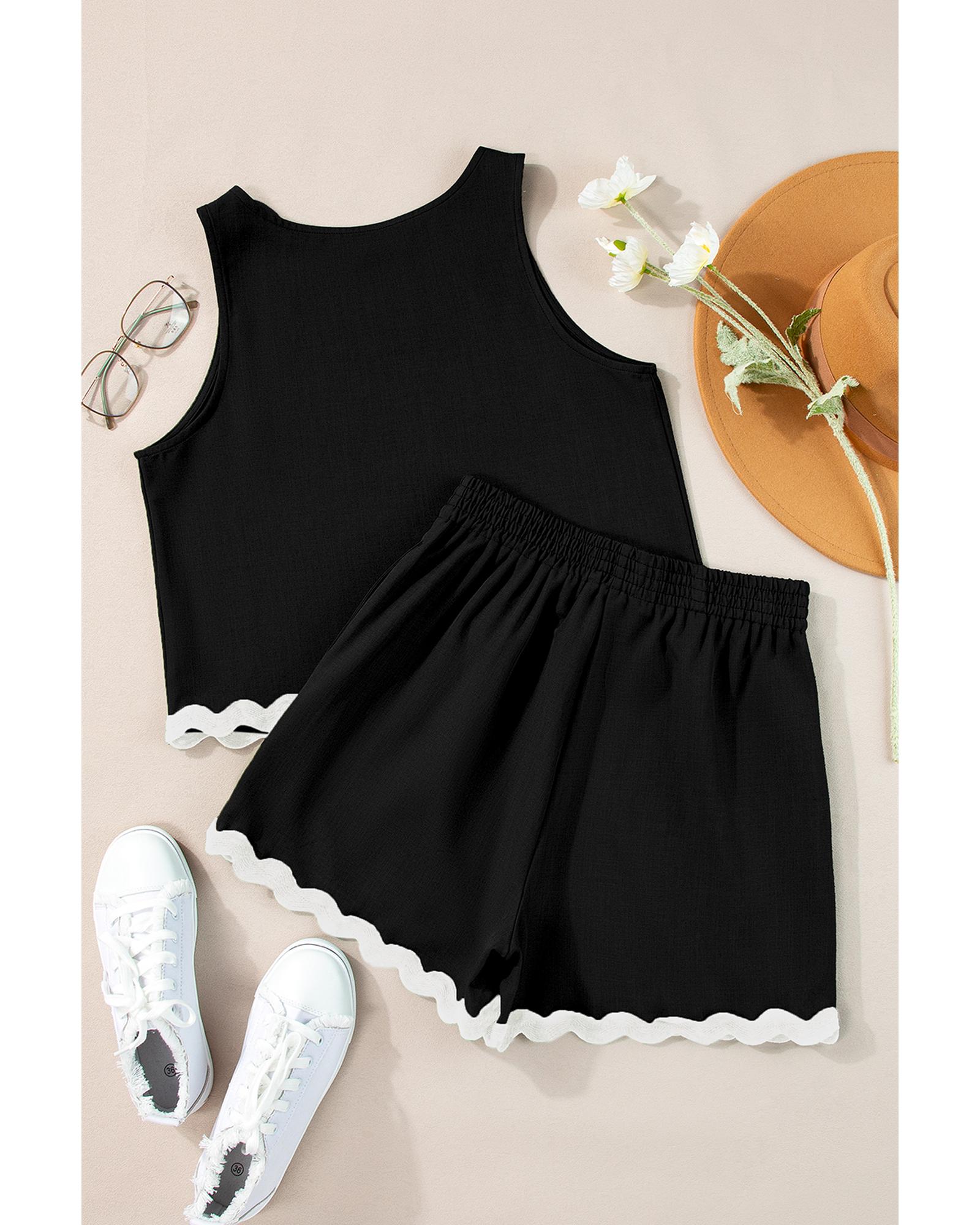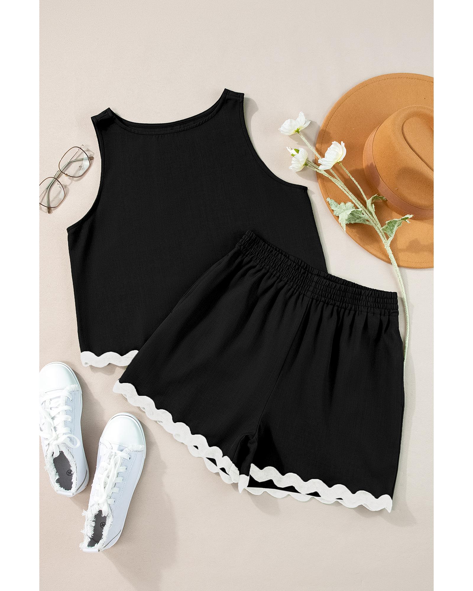 - Black Ricrac Trim Tank Top Elastic Waist Shorts Set