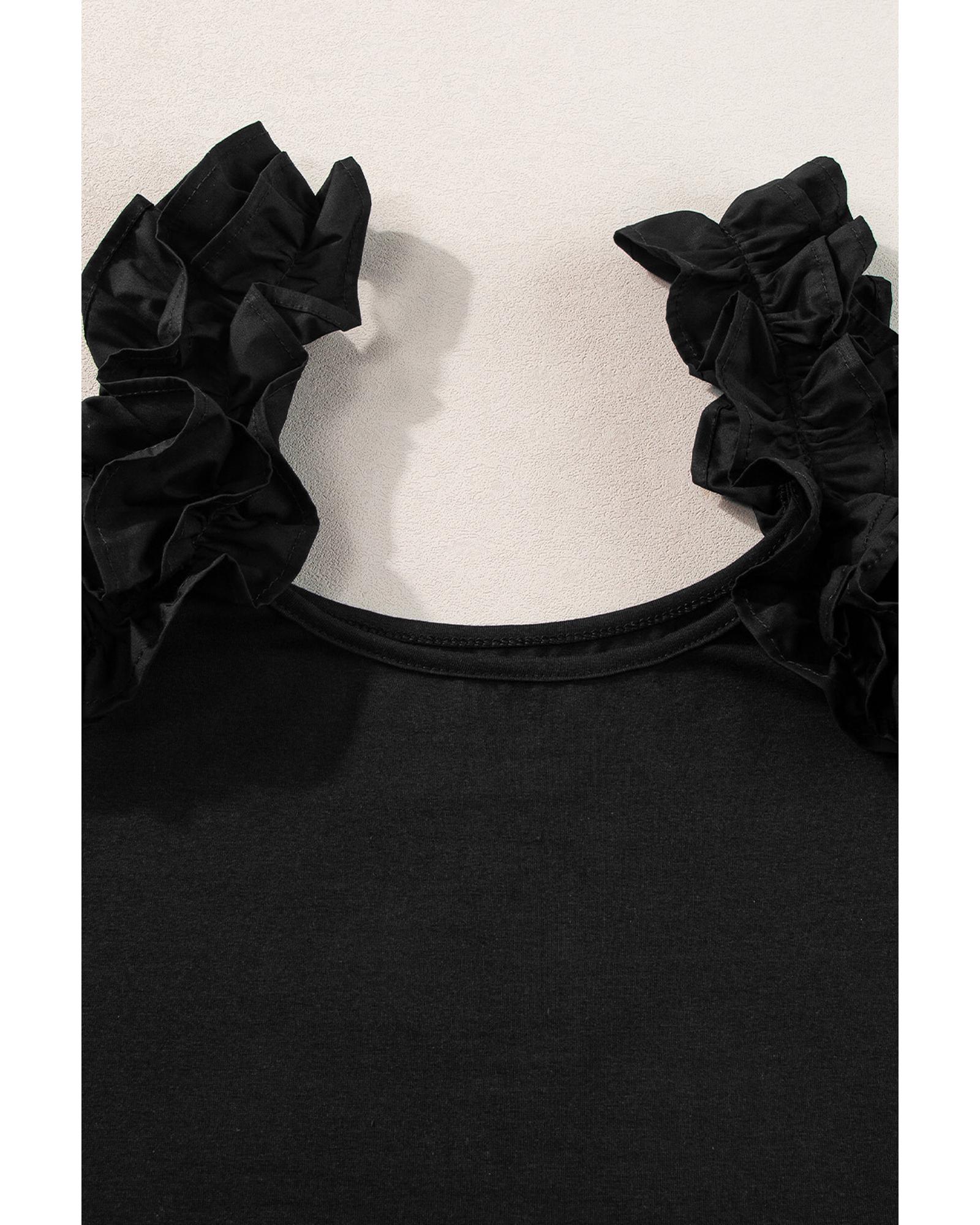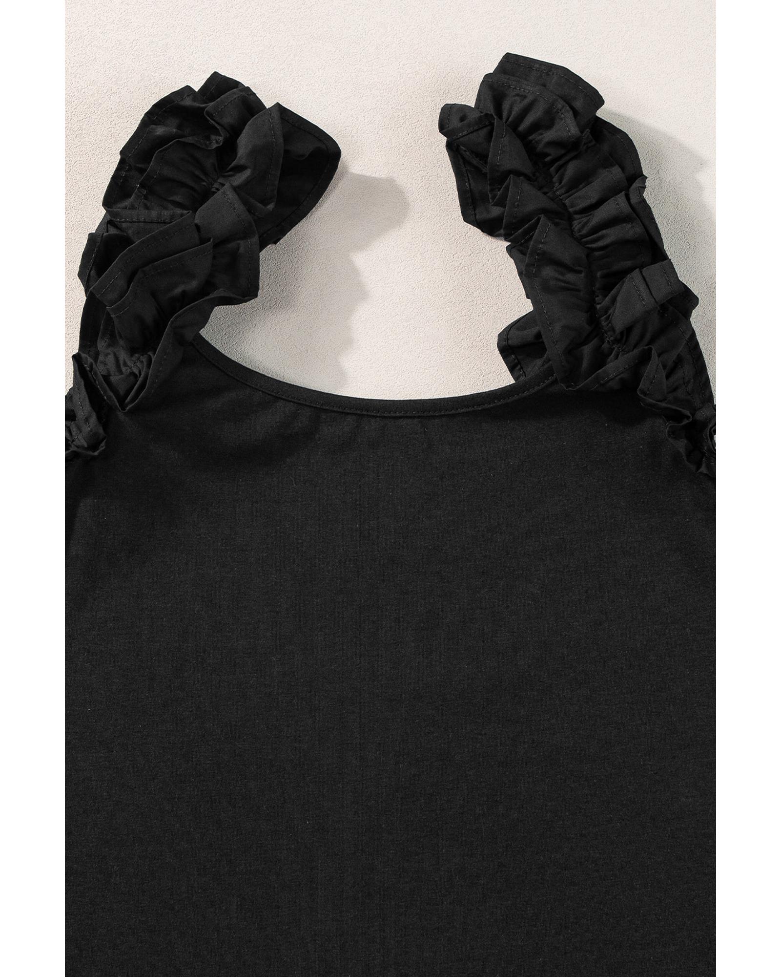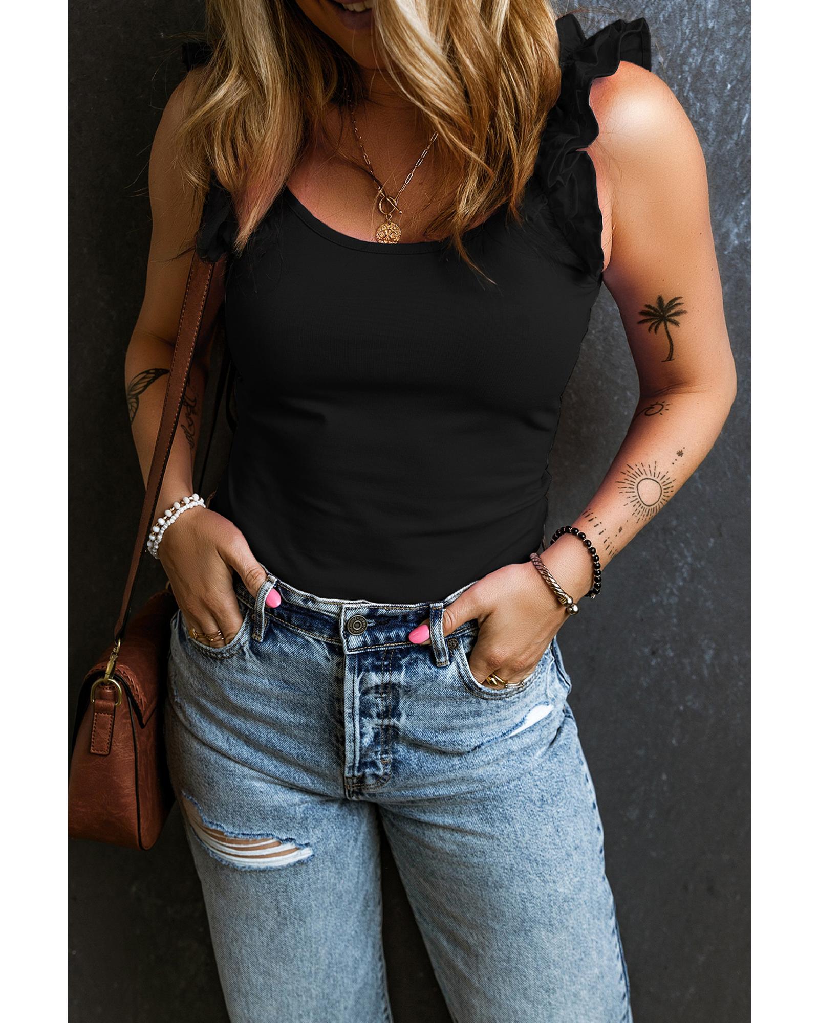Black Ruffled Wide Straps Slim Tank Top – XL
