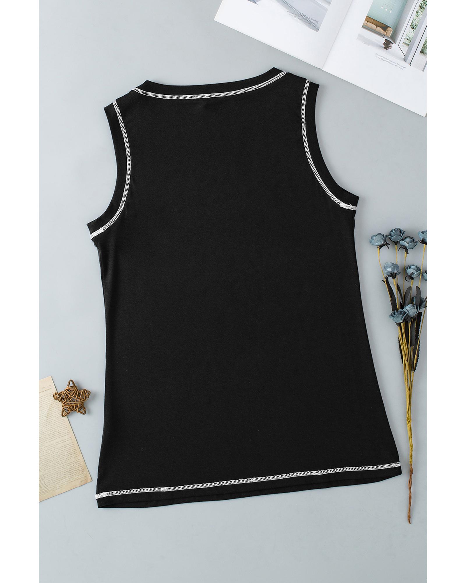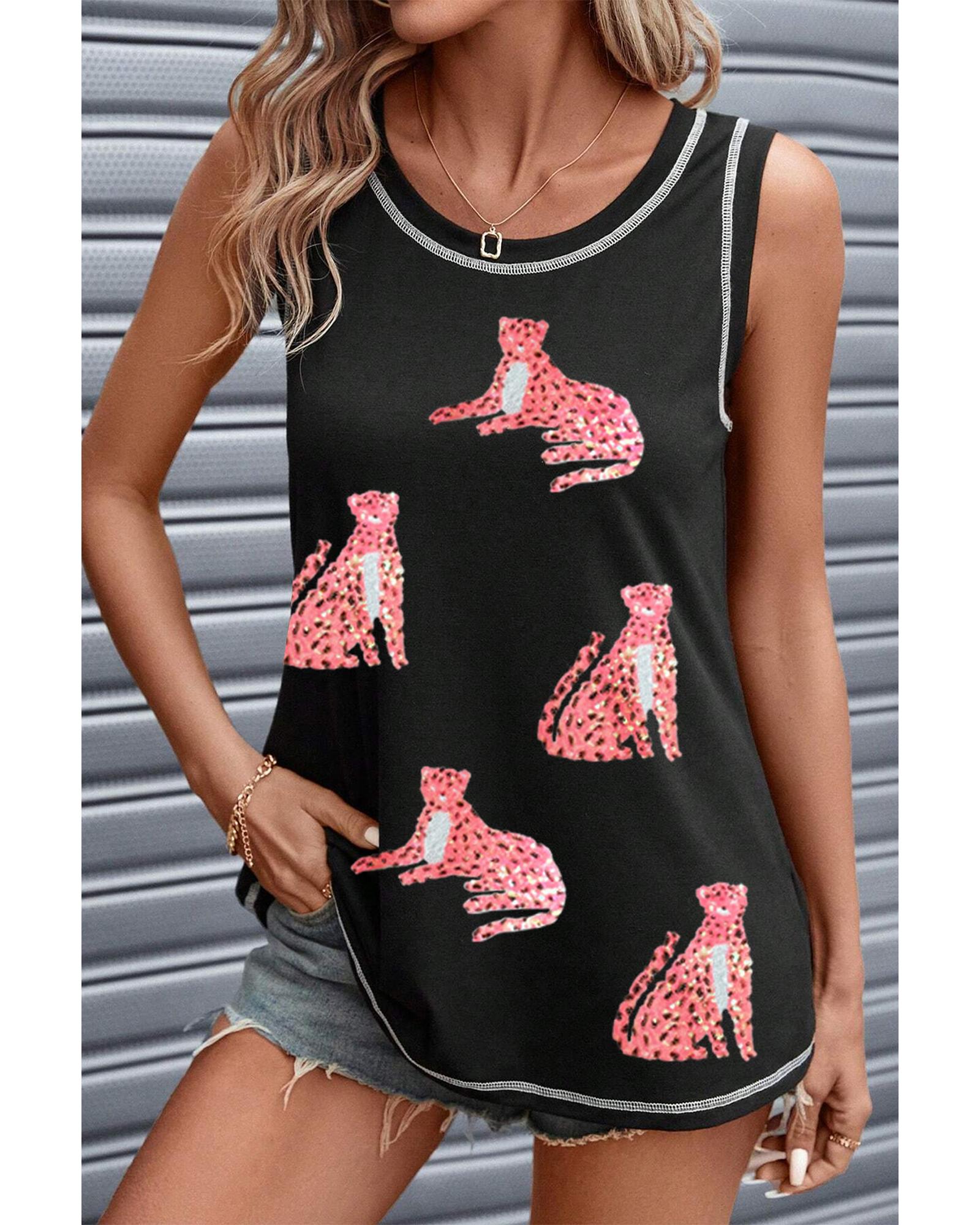 - Black Sequin Cheetah Round Neck Stitching Loose Tank Top
