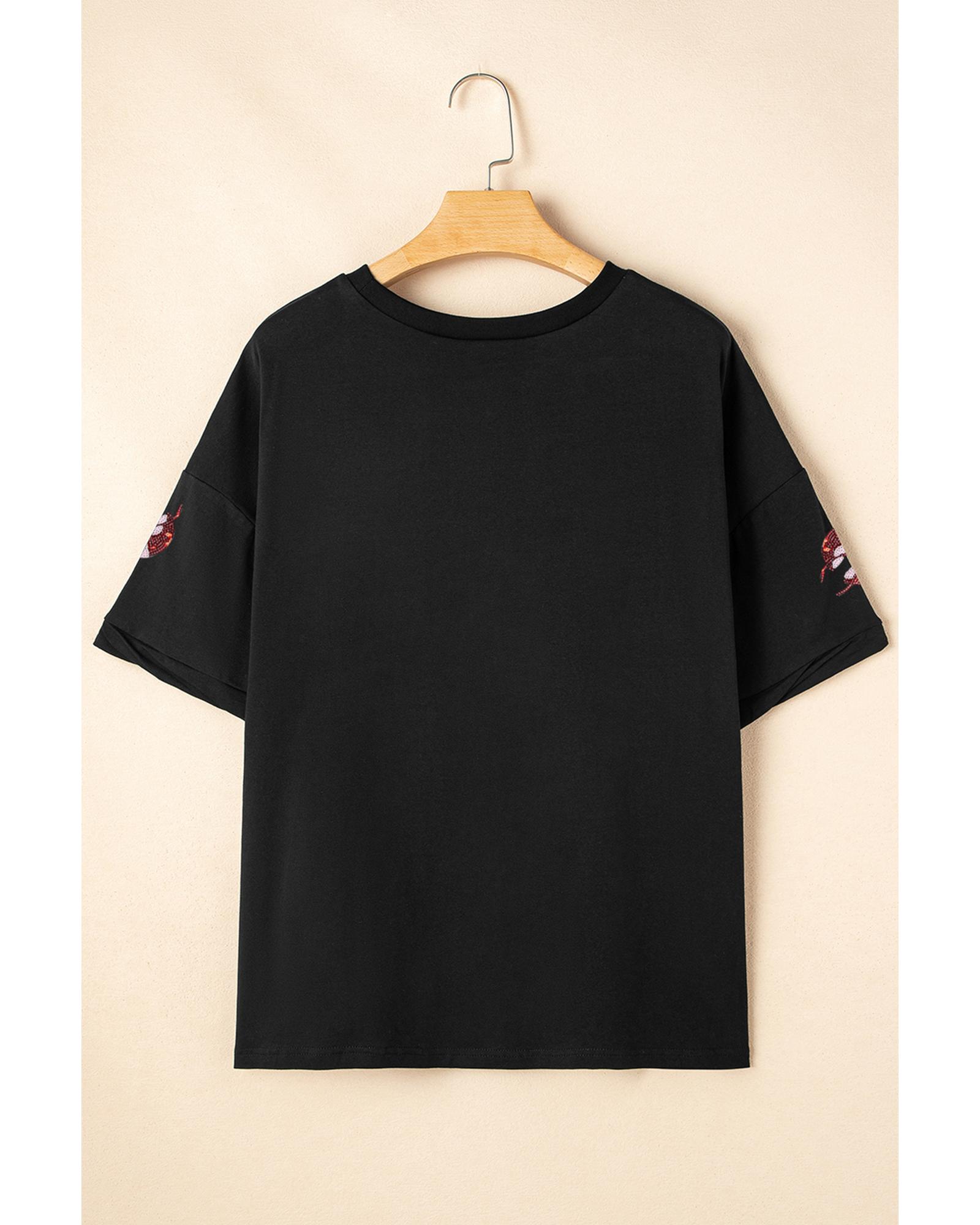 Black Sequin Crayfish Graphic Drop Sleeve High Low Tee – L