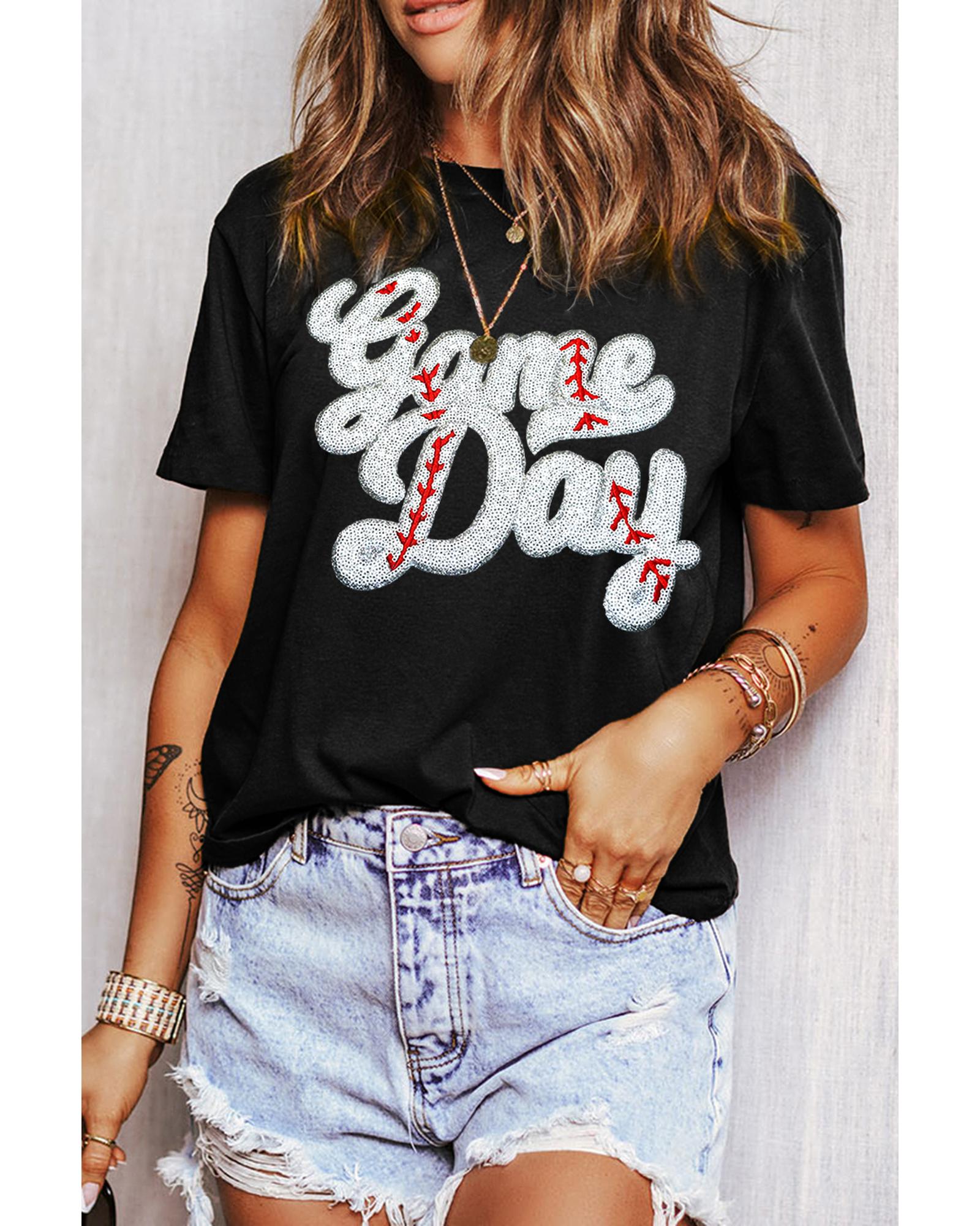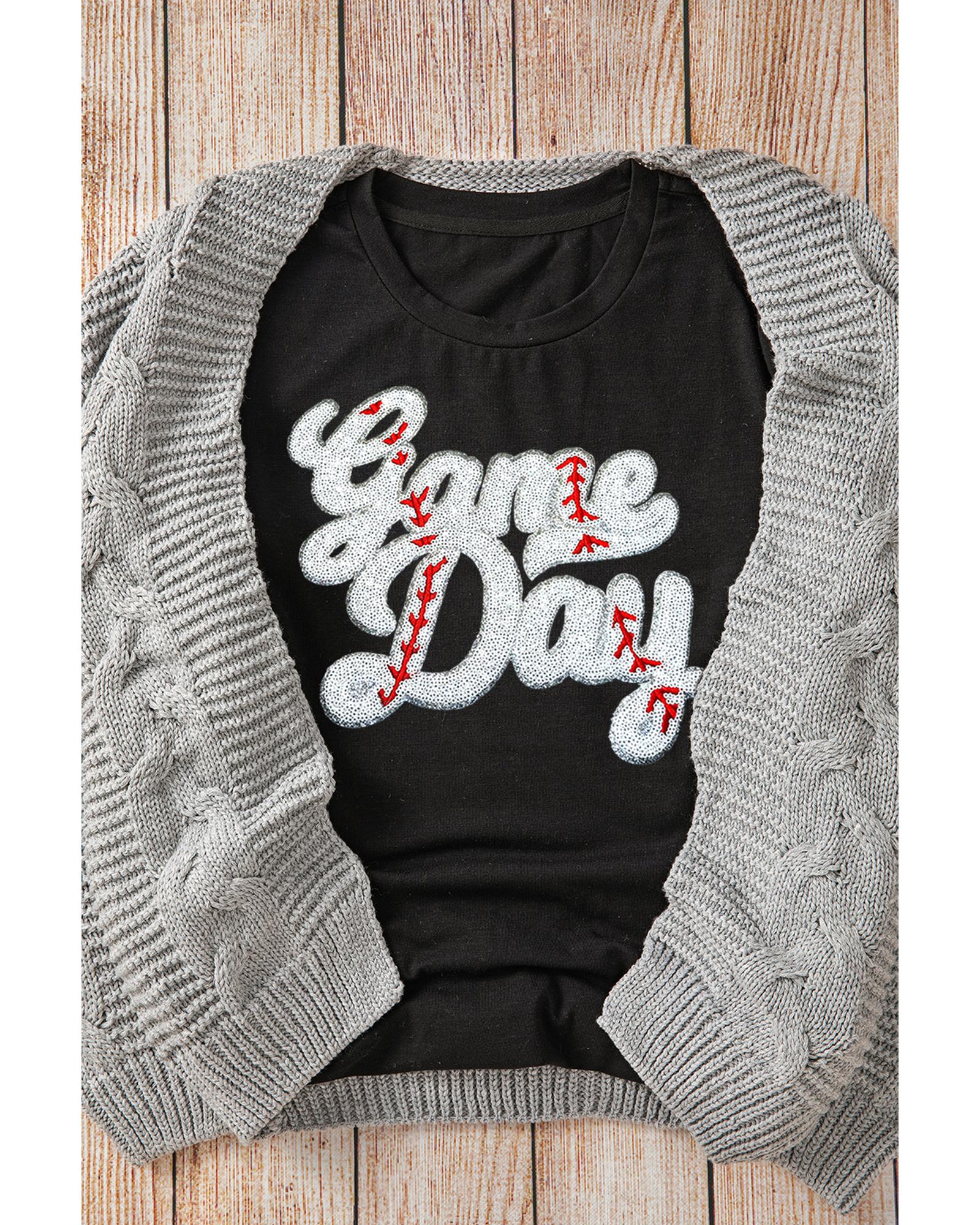 - Black Sequin Game Day Graphic Crew Neck Tee
