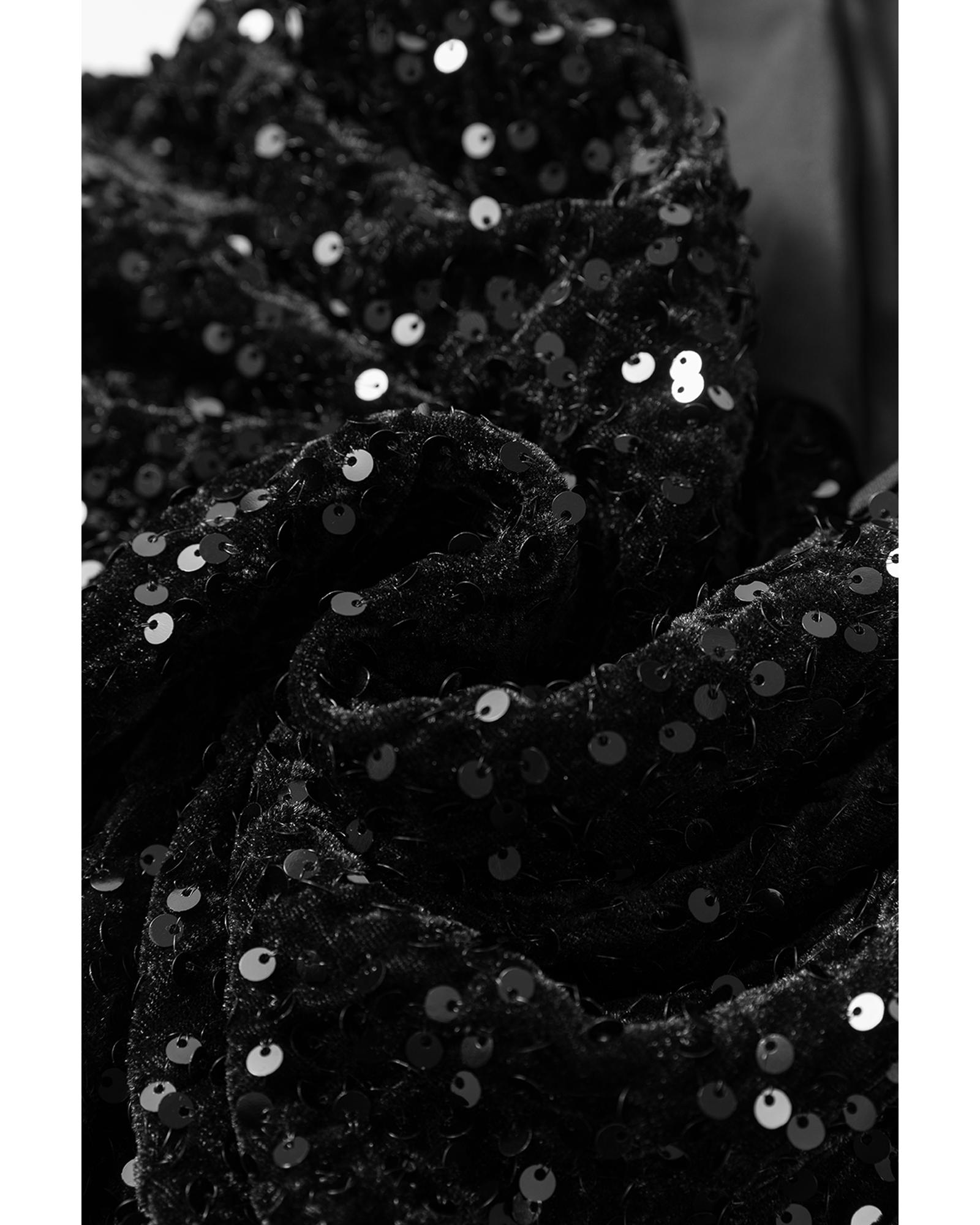 - Black sequin mini dress