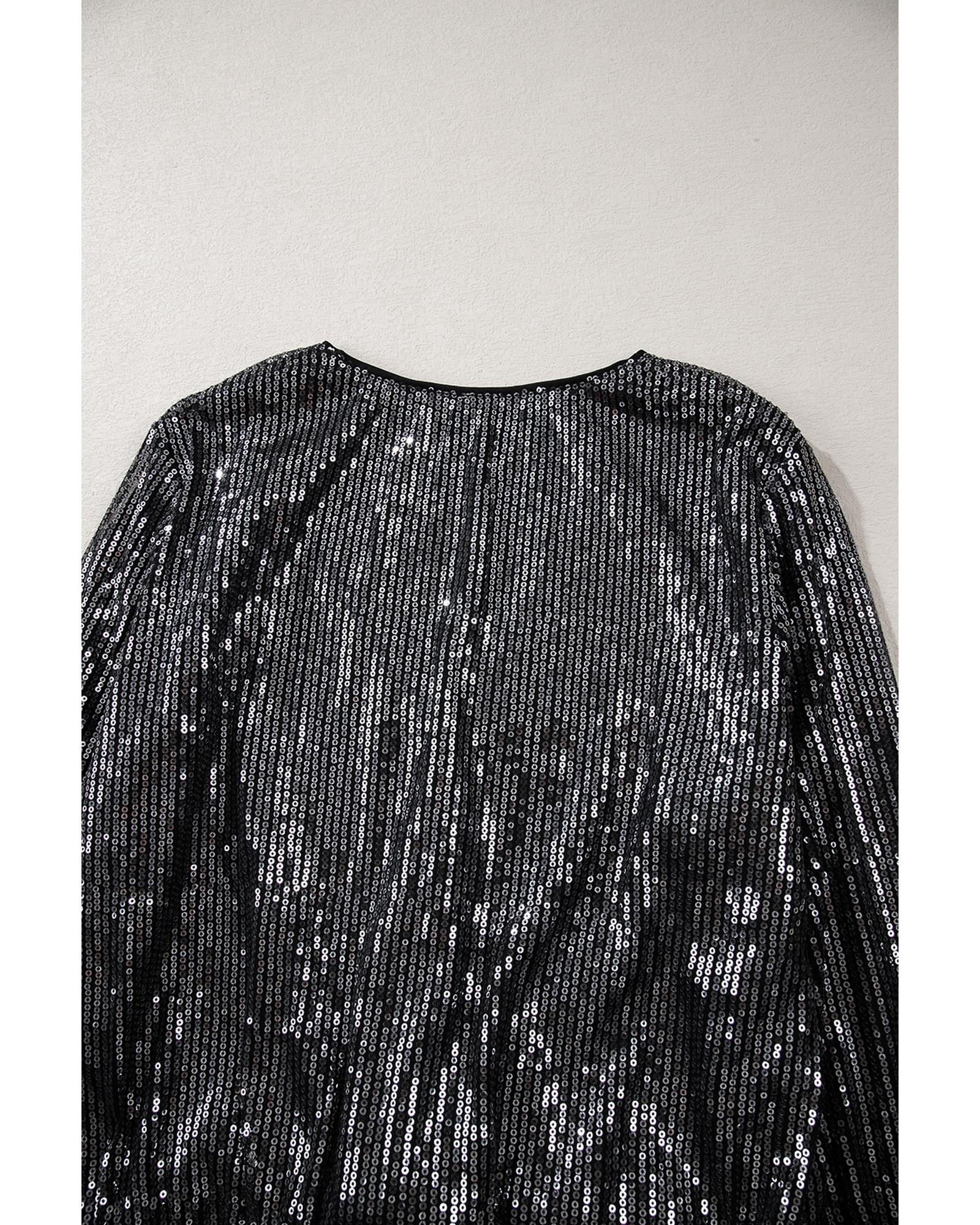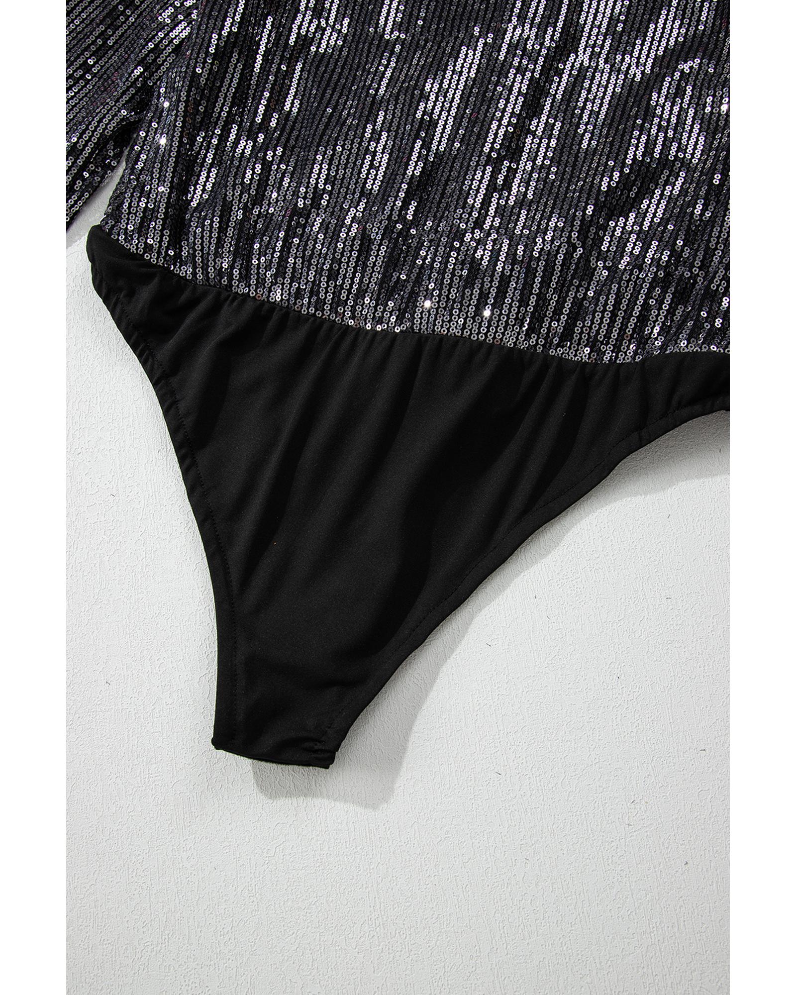 Black Sequin Mesh Long Sleeve Surplice Neck Bodysuit - S Original price was: $70.99.Current price is: $37.99.