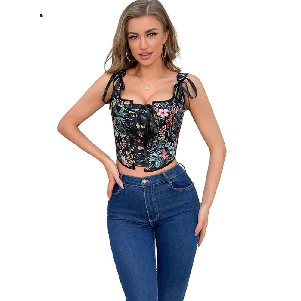 Black Shoulder Strap Slimming Vest Tank Top For Women Backless Sleeveless Summer Corset – S