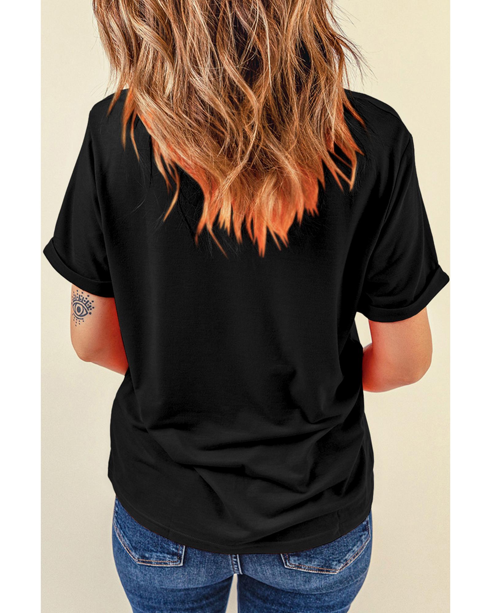 Black Sparkle Rhinestone Smile Face Graphic T Shirt - 2XL