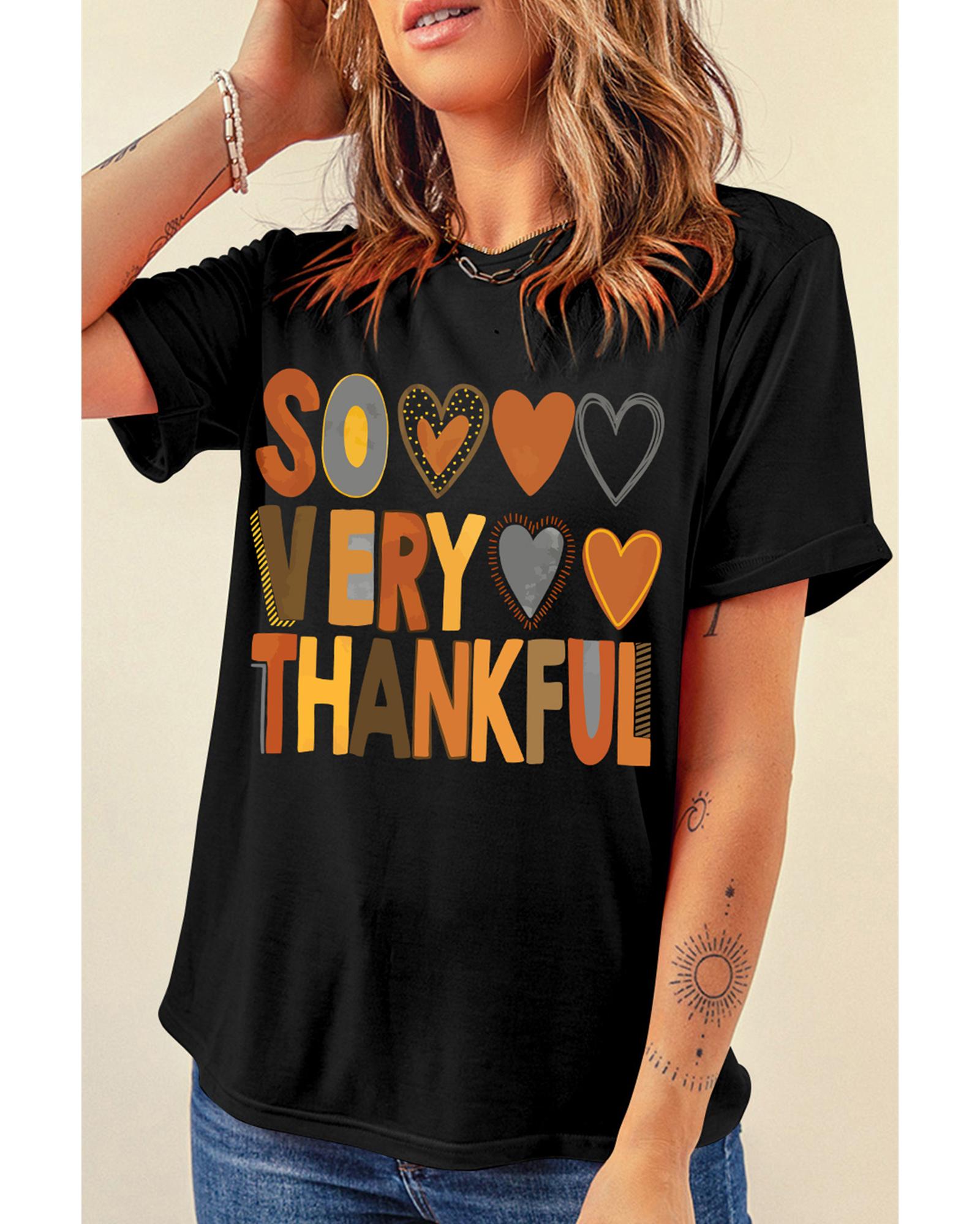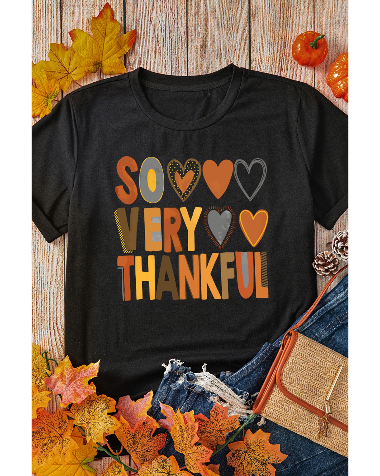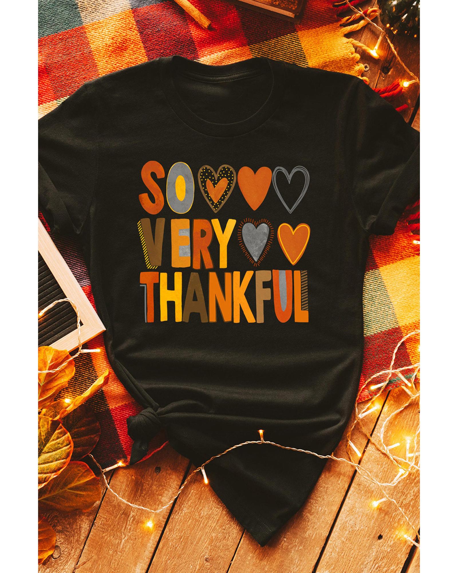 Black So Very Thankful Heart Printed Crewneck Thanksgiving T Shirt – M