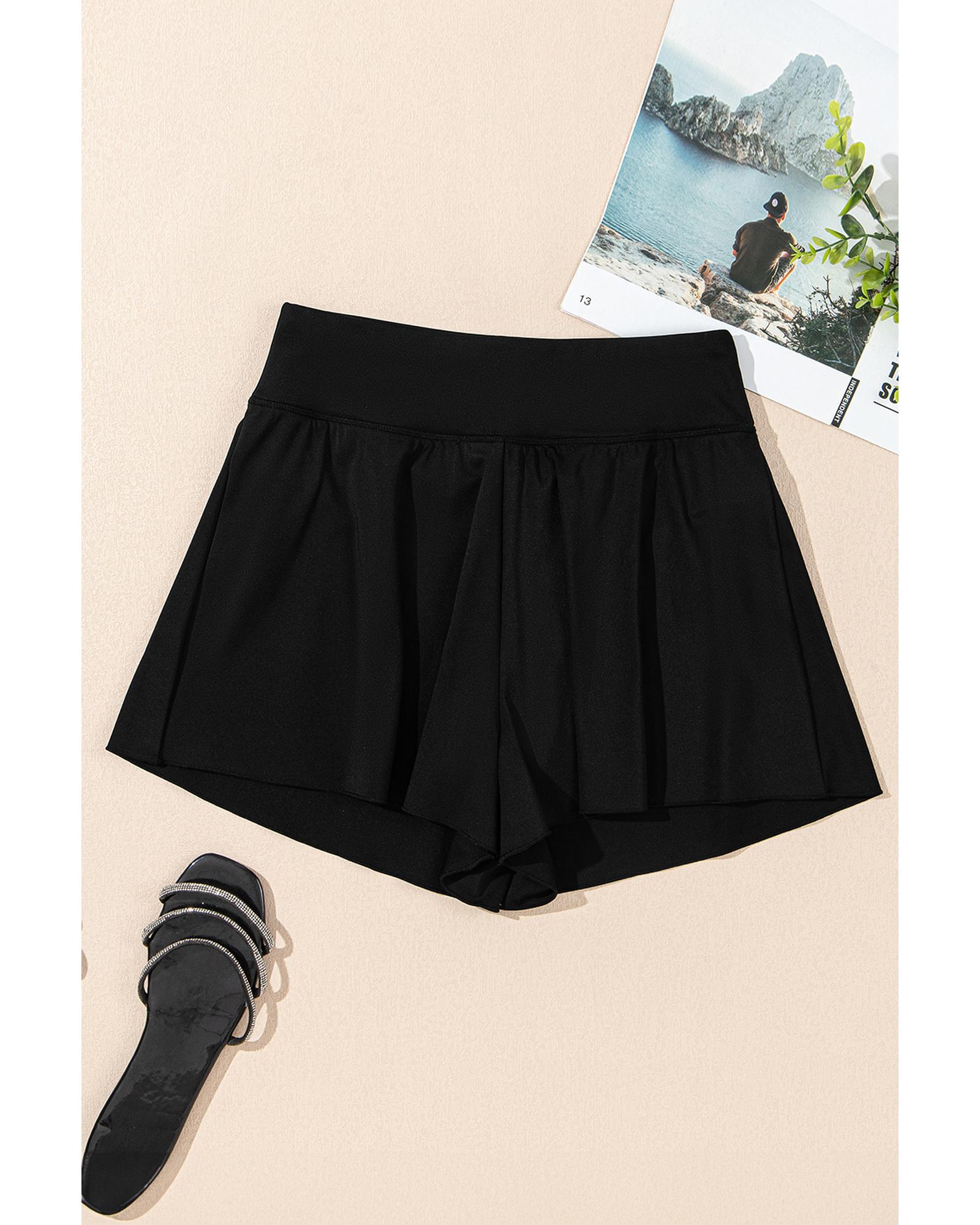 - Black solid color high waist wide leg swim bottom