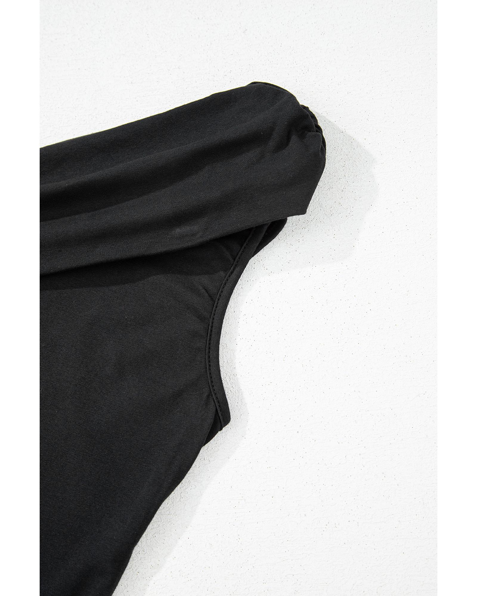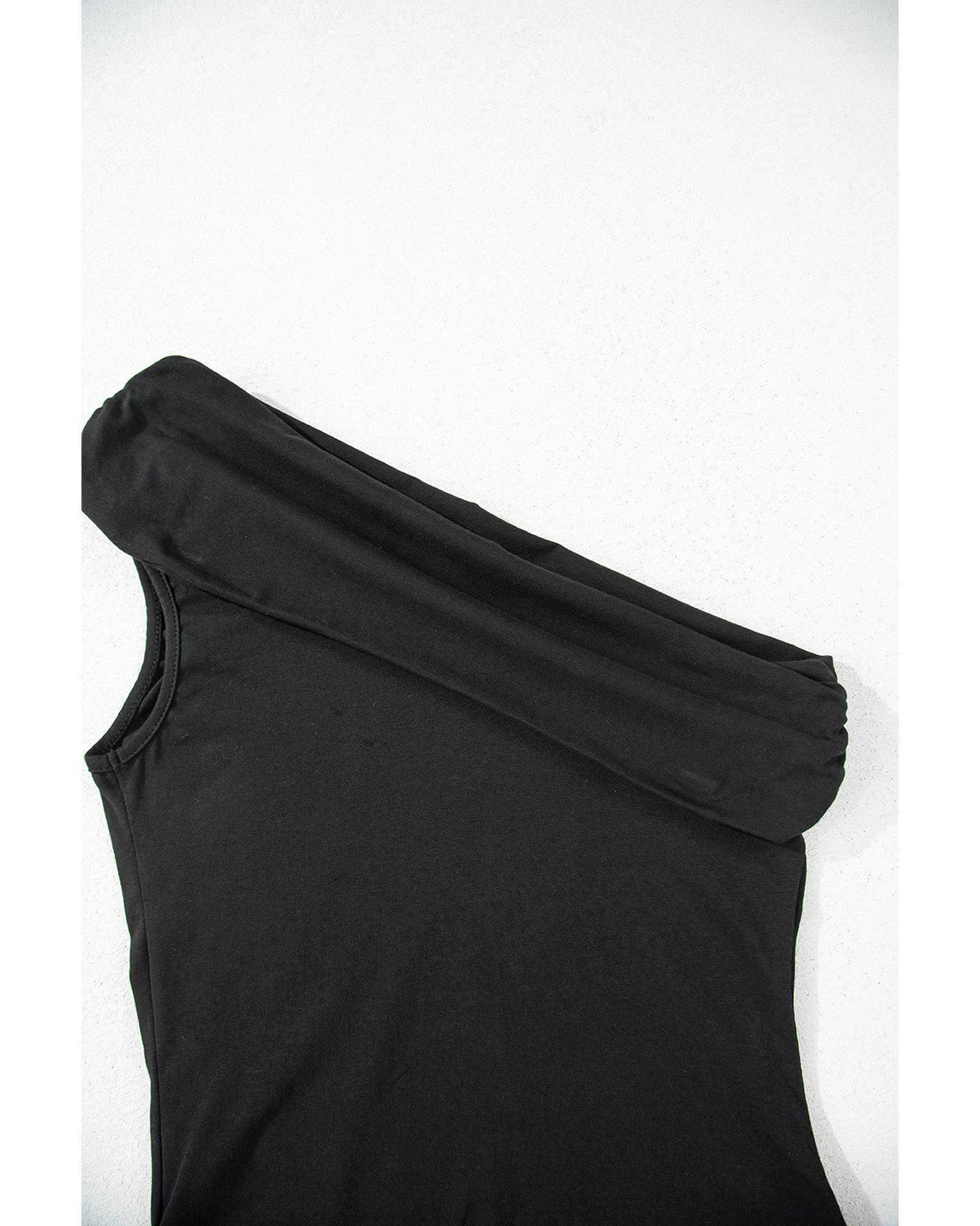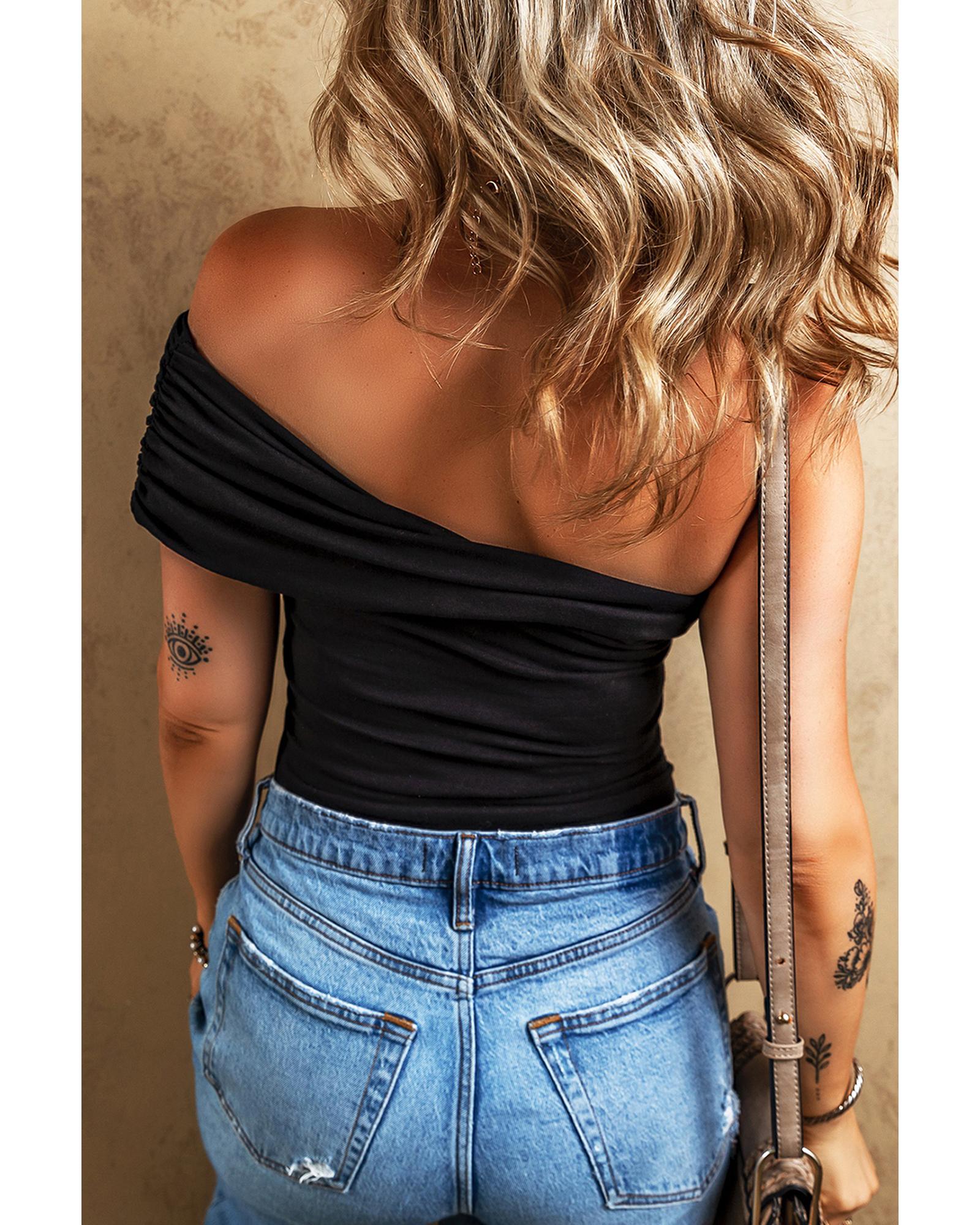 Black Solid Color Pleated One Shoulder Bodysuit – L