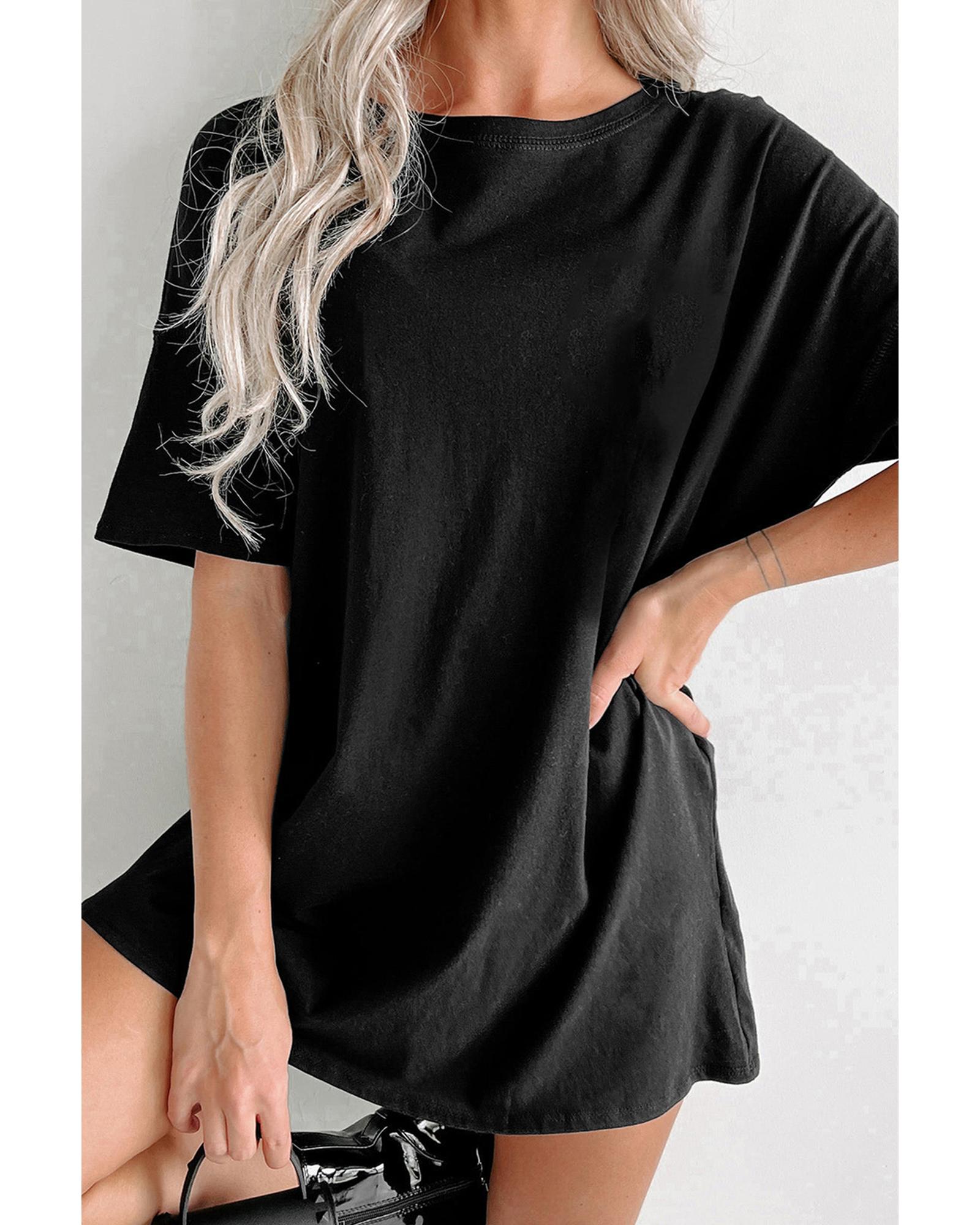 Black Solid Color Round Neck Basic Tunic T Shirt – XL