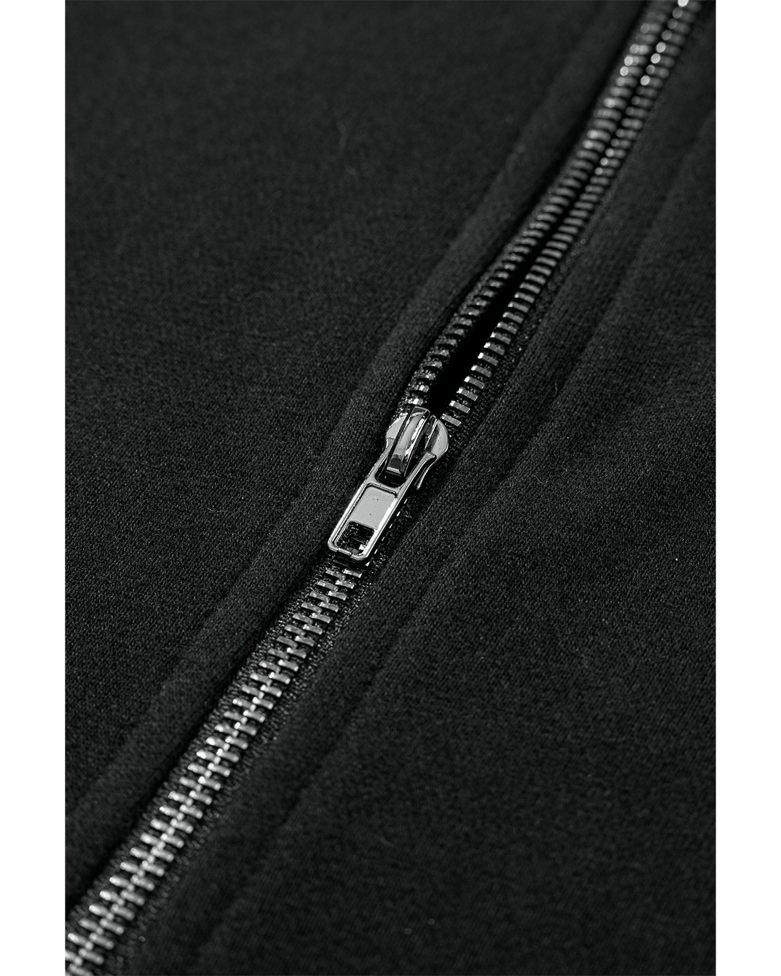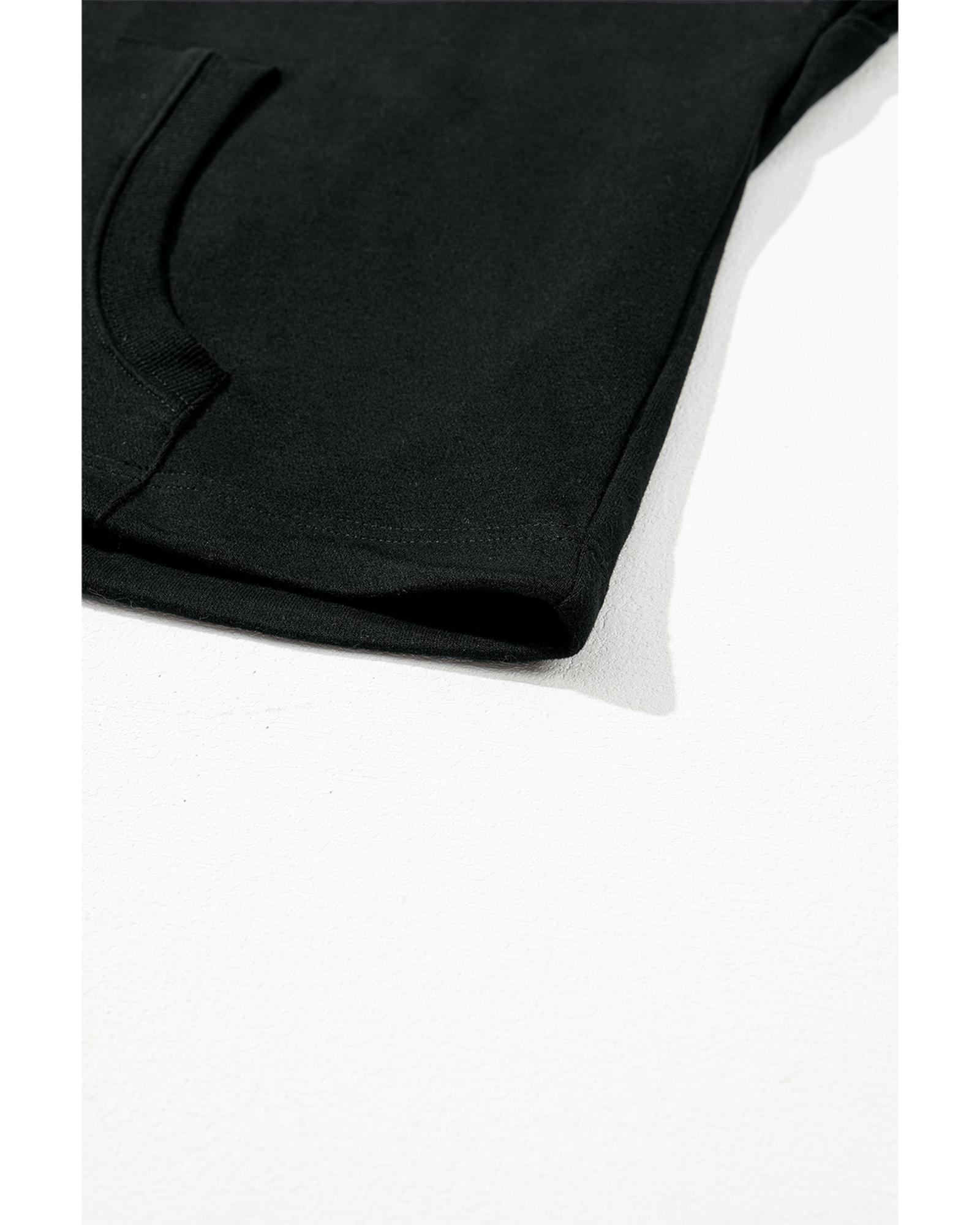 Black Solid Kangaroo Pocket Half Zipper Oversized Hoodie – S