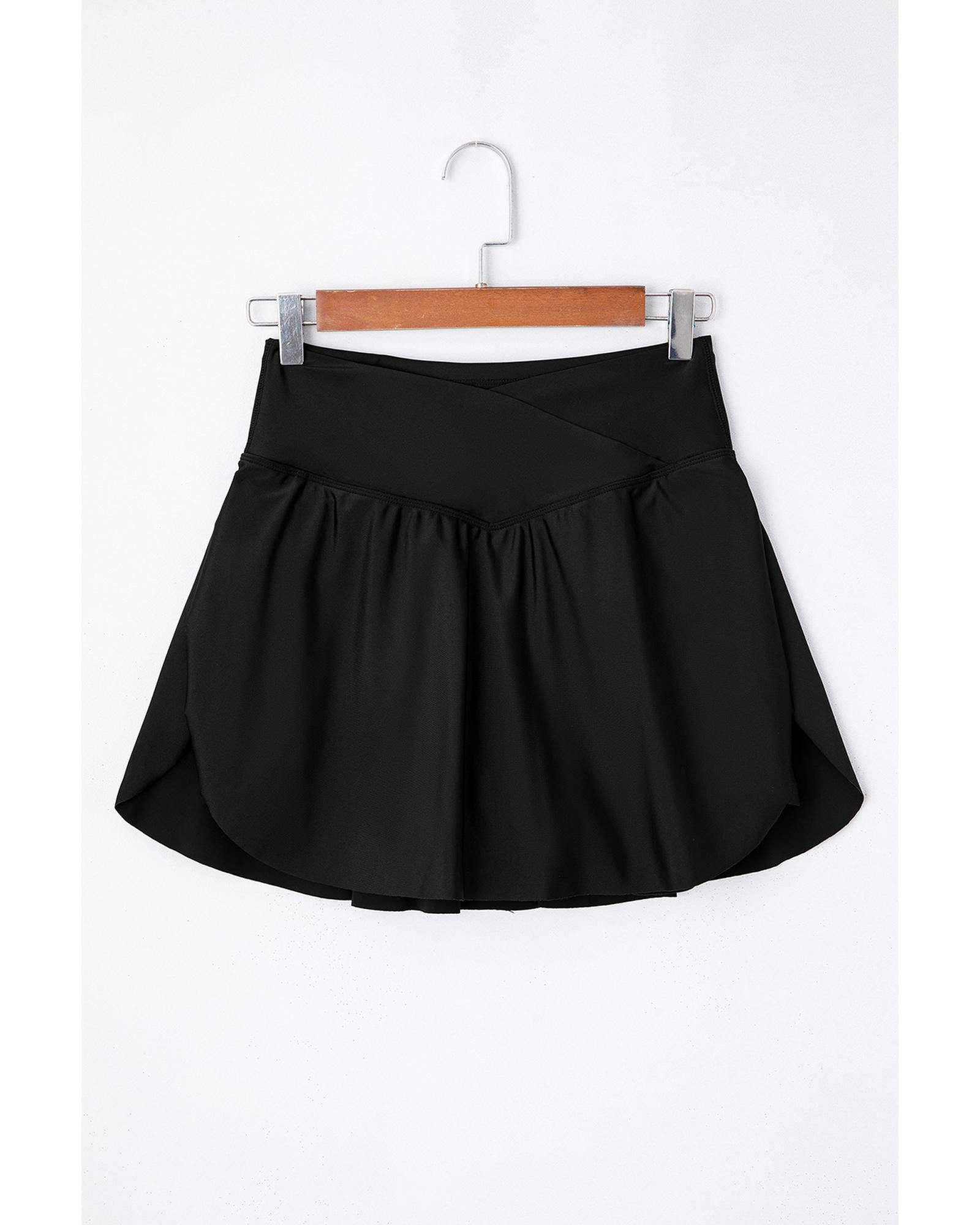 Black Solid Pocketed Crossover High Waist Swim Skort – L