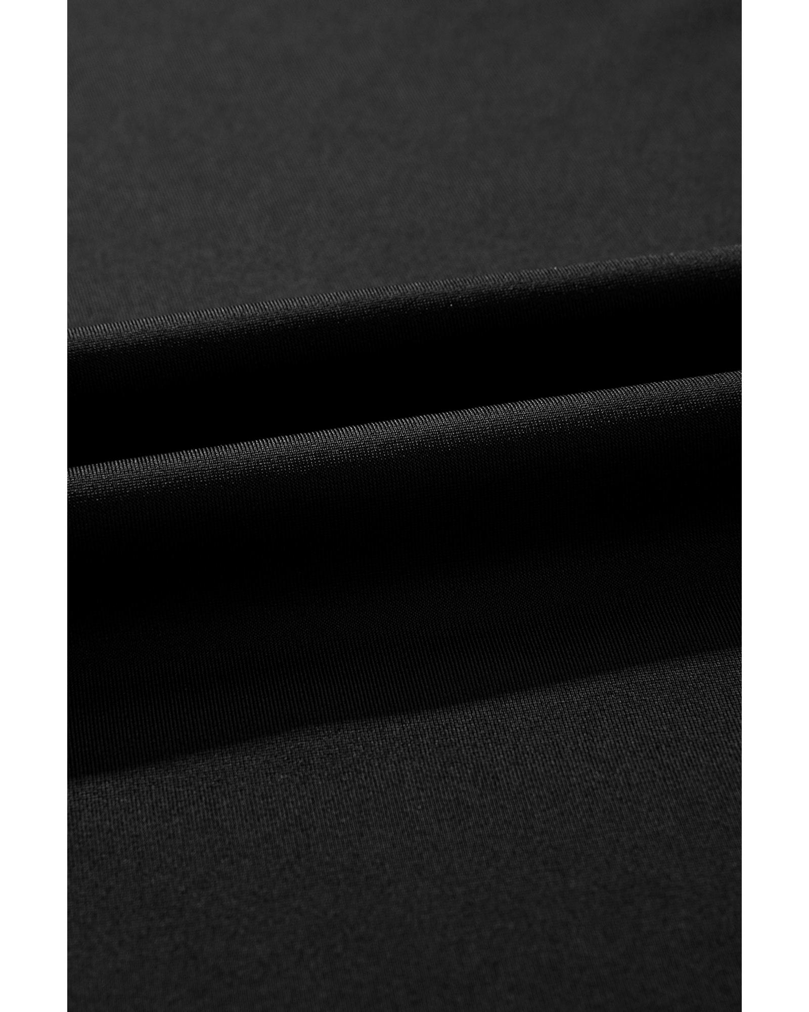 Black Solid Pocketed Crossover High Waist Swim Skort – S