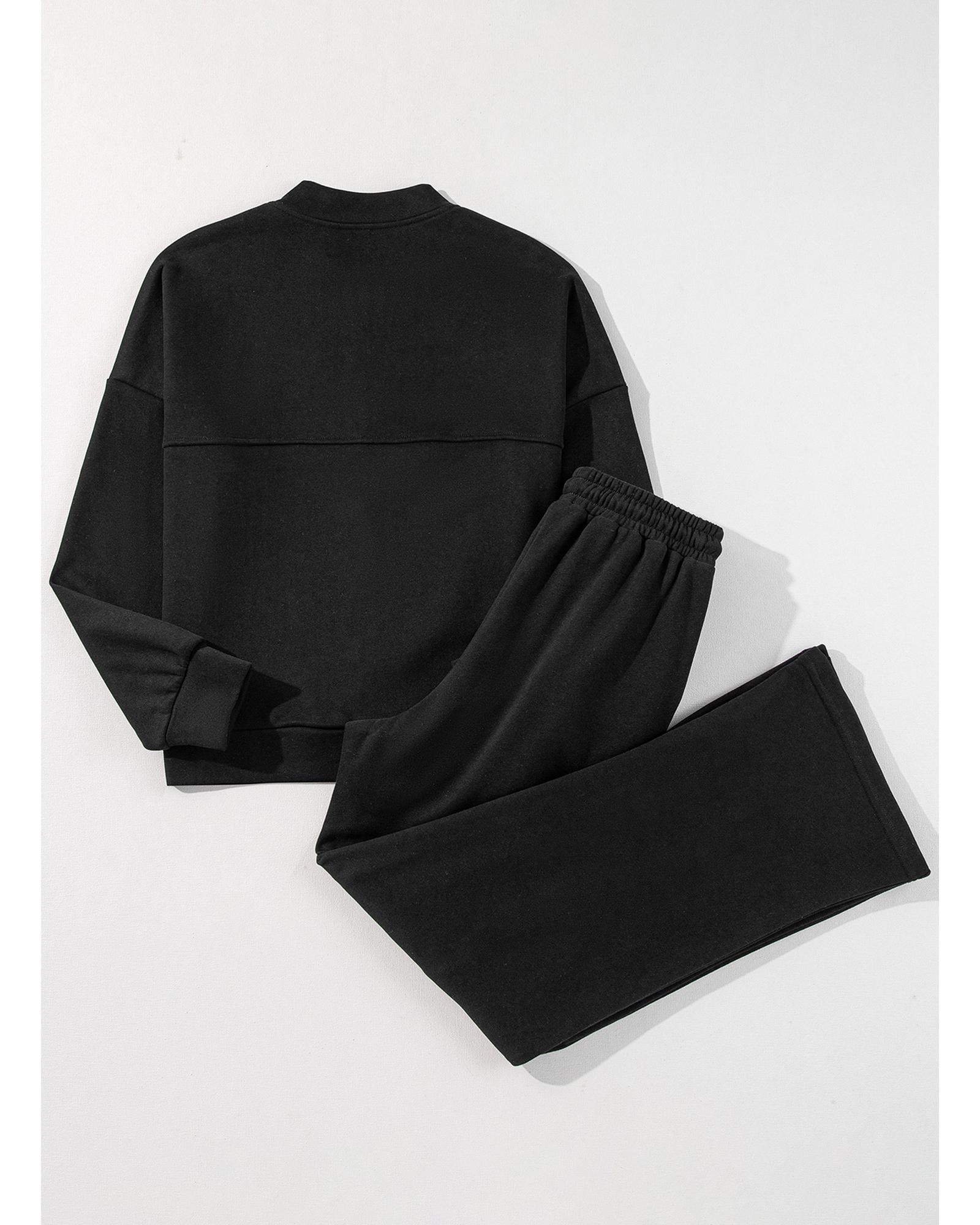 Black Solid Seamed Zipper Jacket and Drawstring Waist Pants Set – S