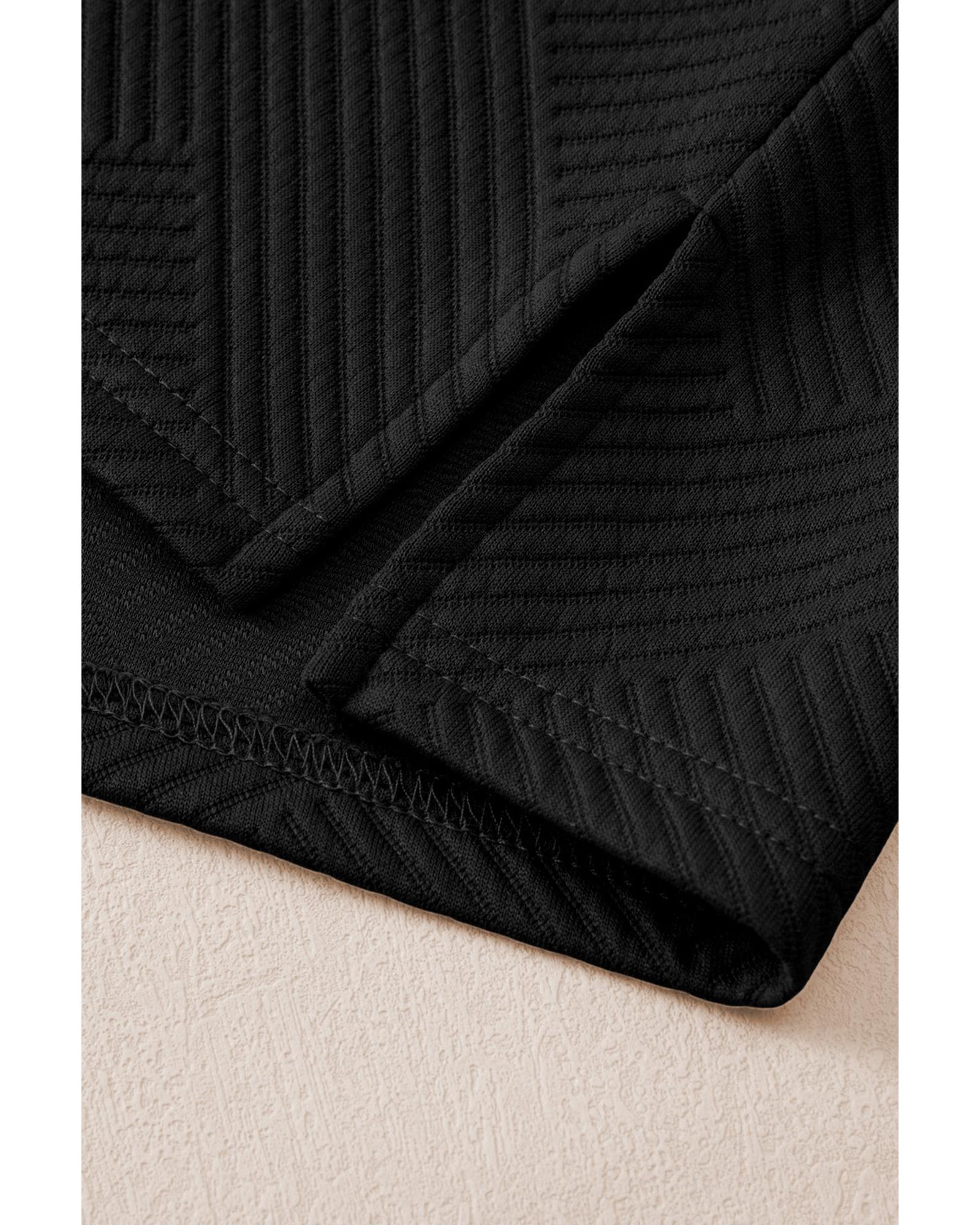 Black Solid Textured Collared V Neck Top and Wide Leg Pants Set – M