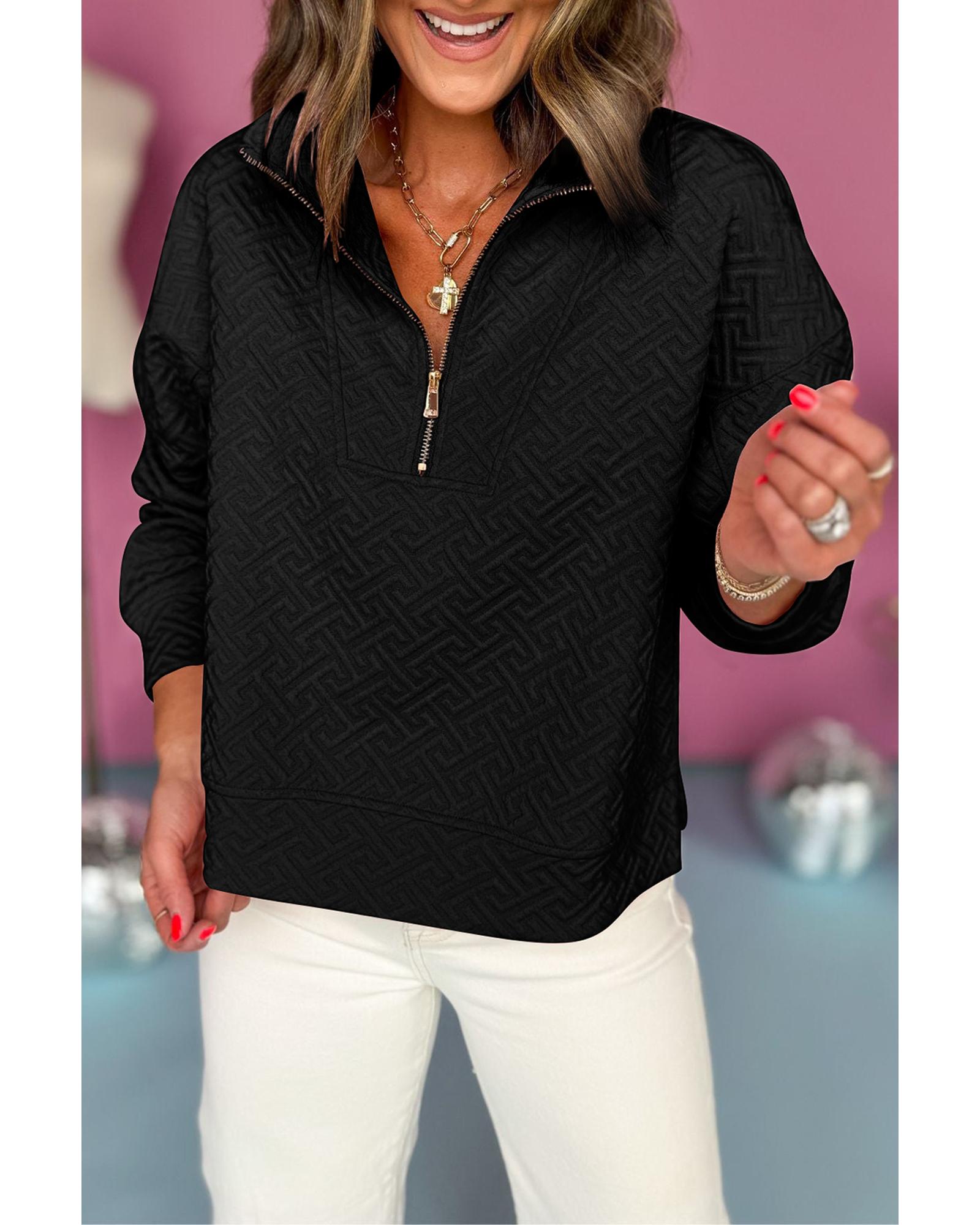Black Solid Textured Half Zipper Collared Sweatshirt – XL