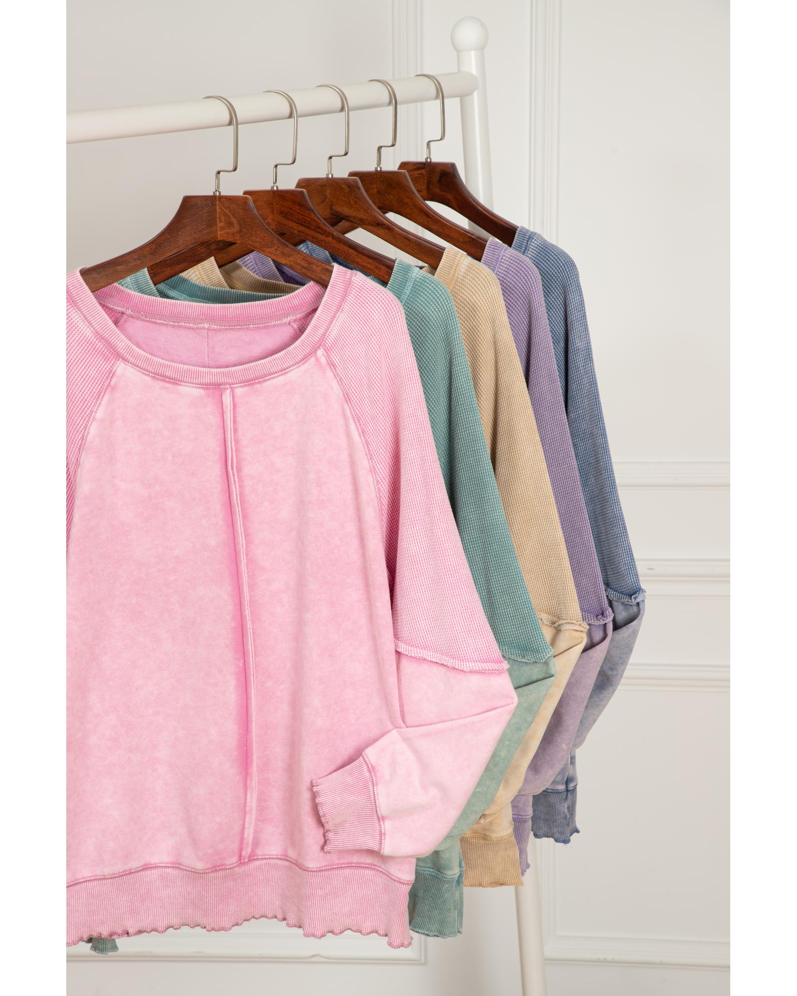 Black Solid Waffle Knit Patchwork Raglan Sleeve Sweatshirt – M