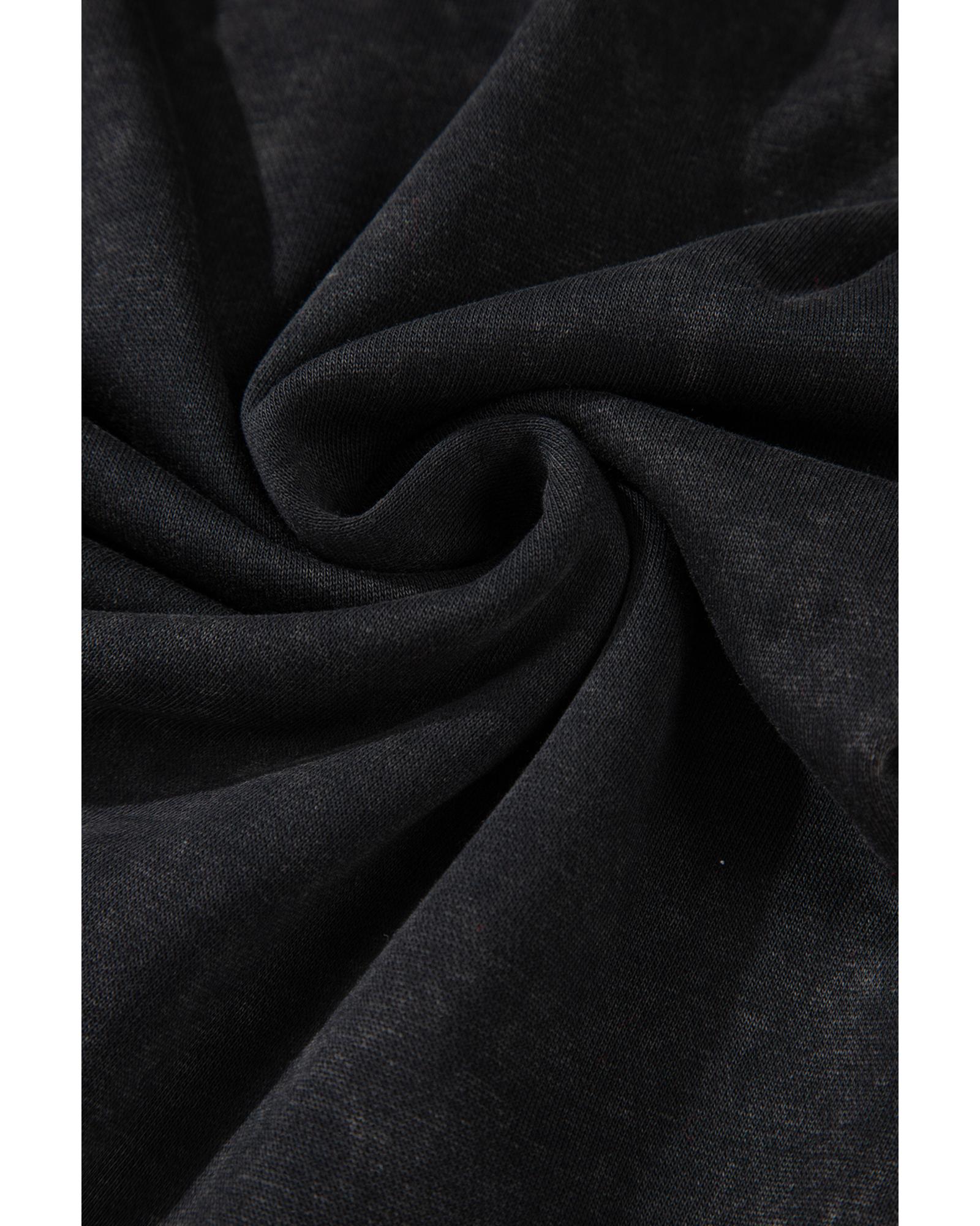 Black Solid Waffle Knit Patchwork Raglan Sleeve Sweatshirt – XL
