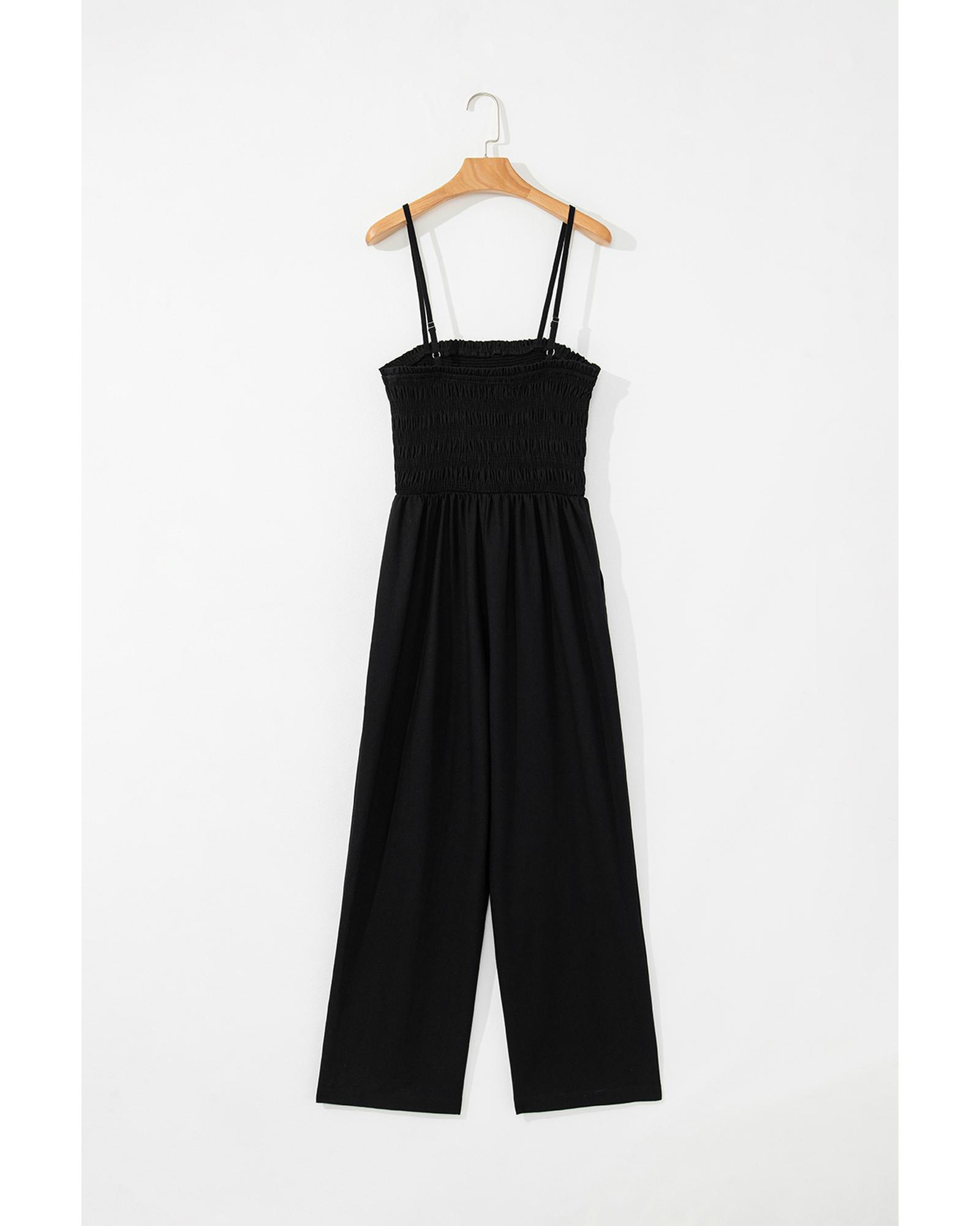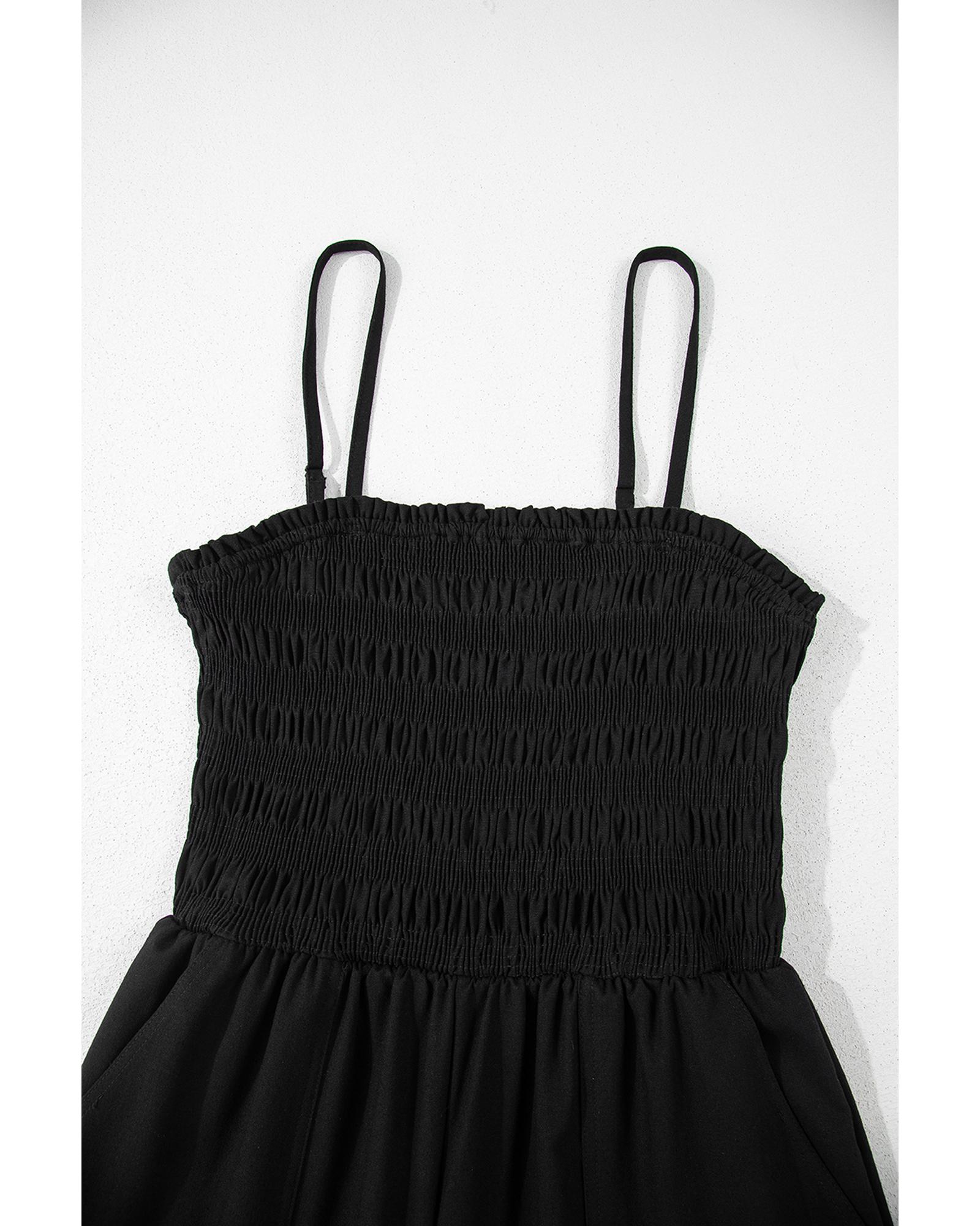 Black Spaghetti Straps Shirred Bodice Pocketed Wide Leg Jumpsuit – S
