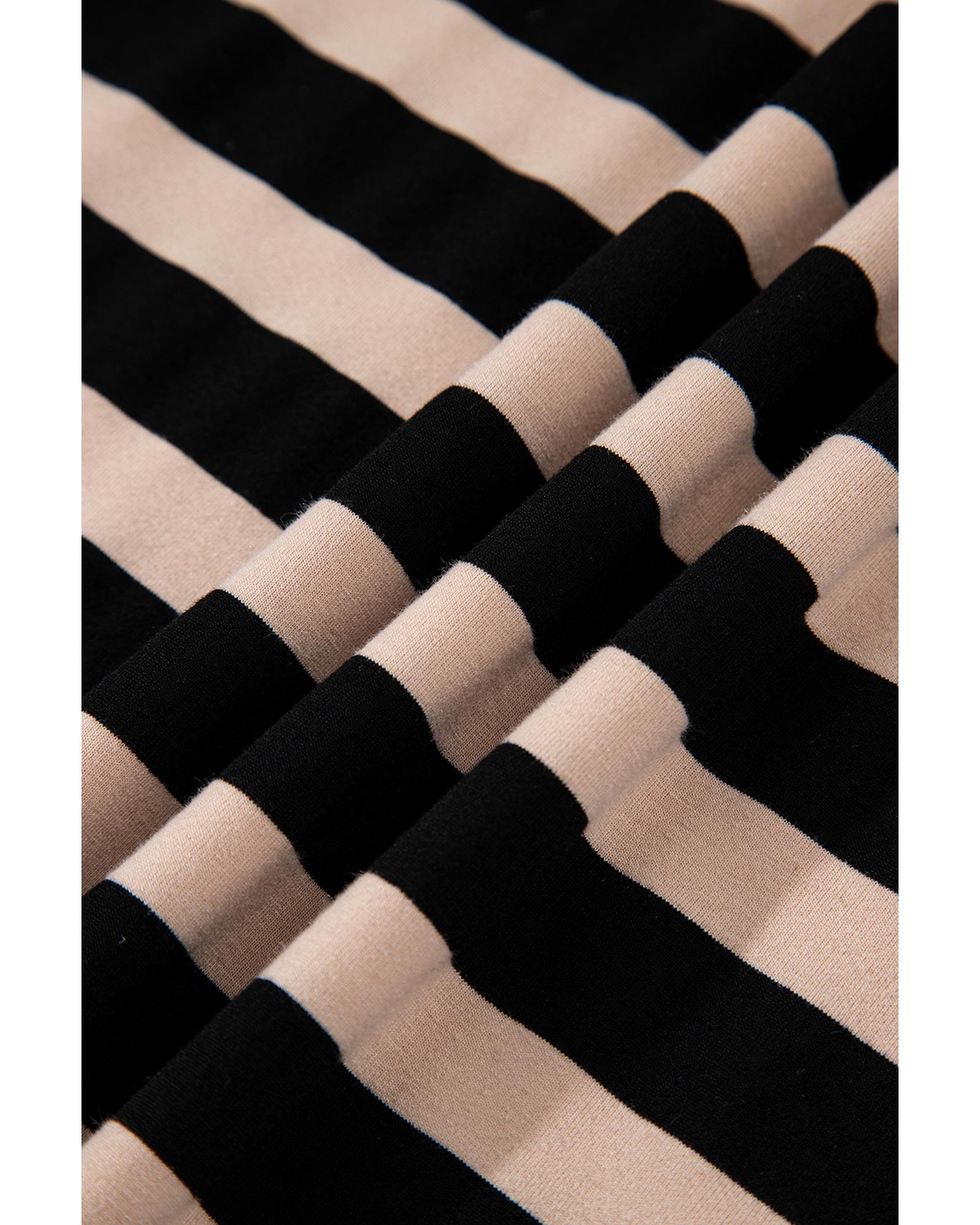 Black Stripe Casual Round Neck T-shirt Maxi Dress with Pockets – L