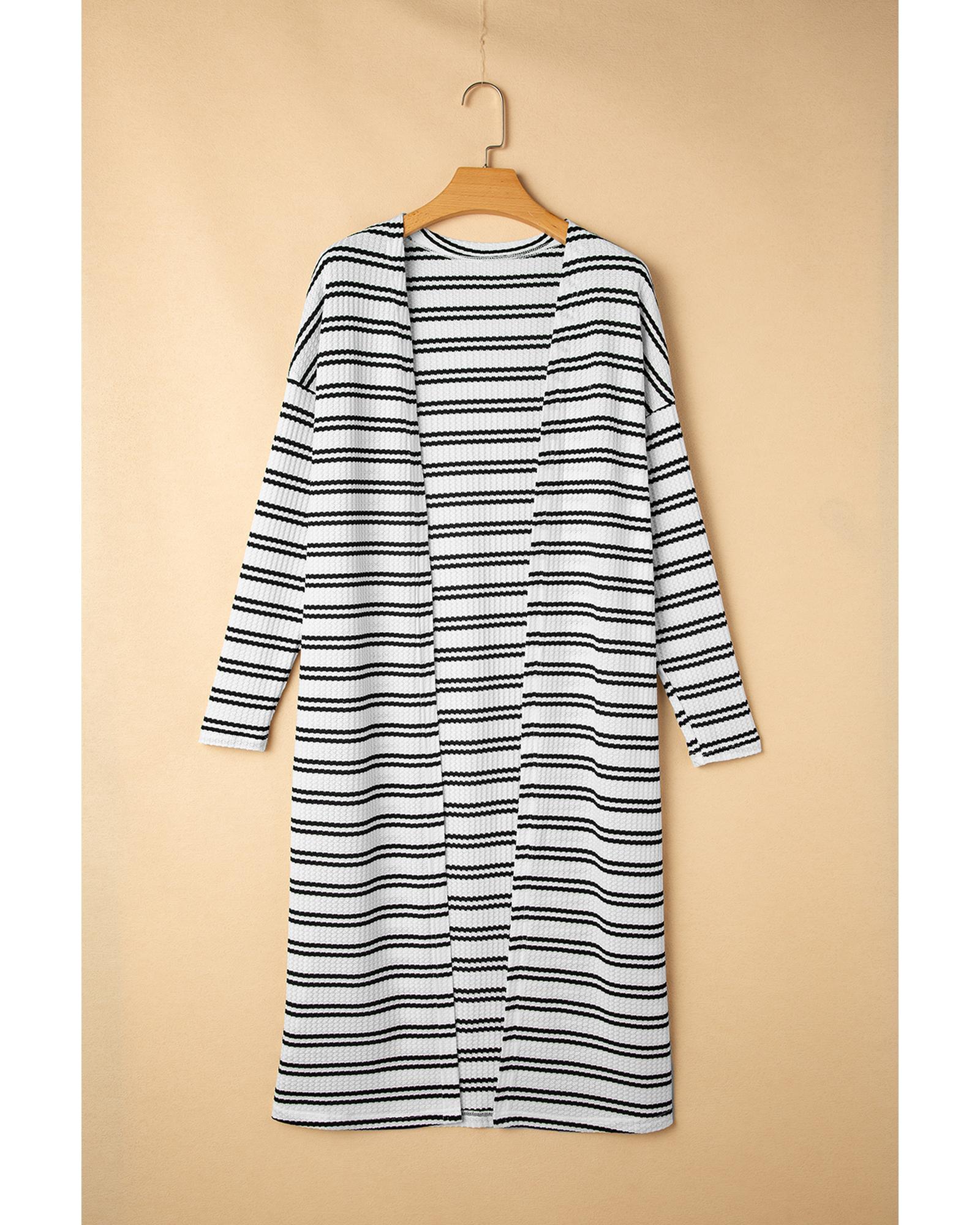 Black Stripe Print Open Front Duster Cardigan – XL