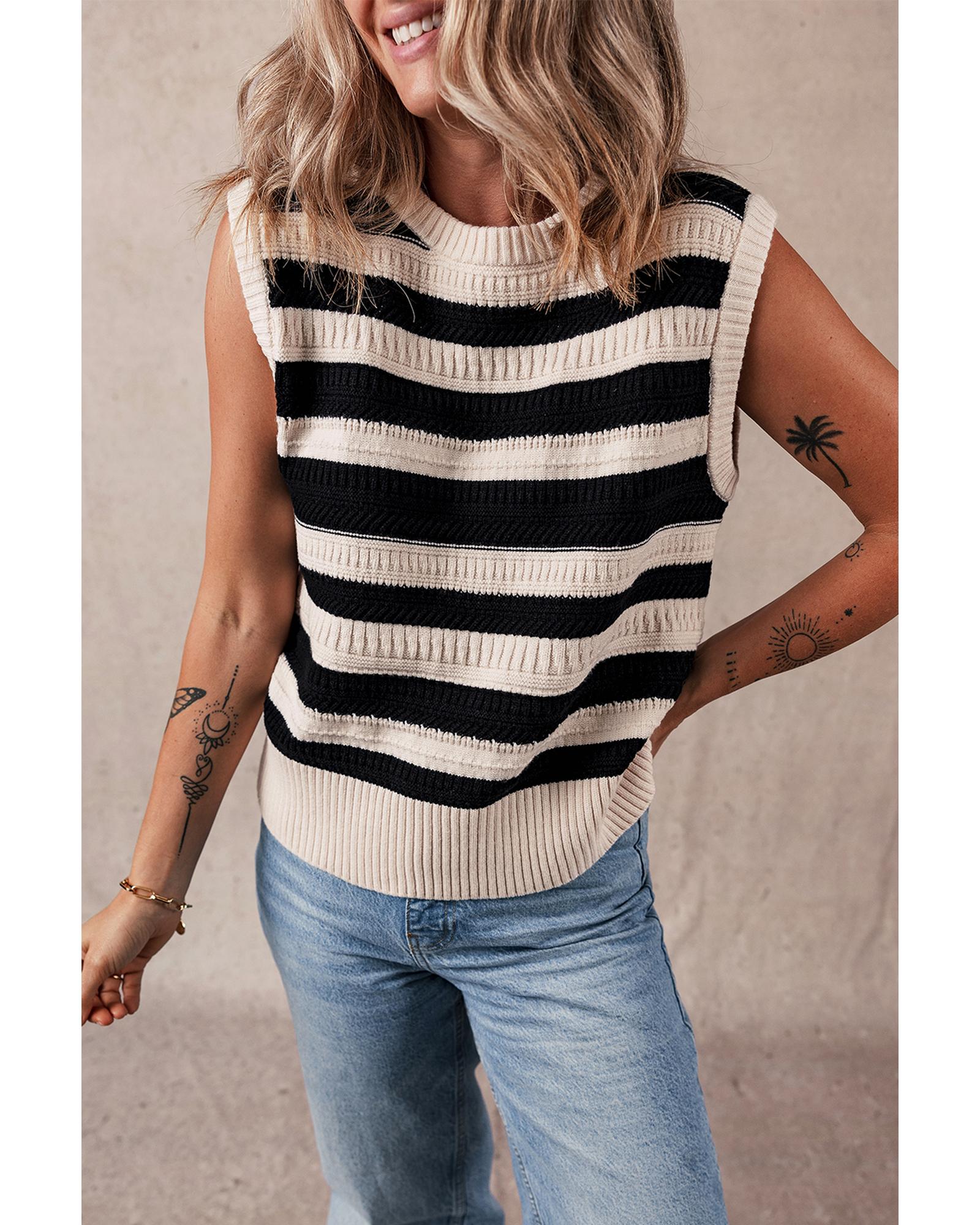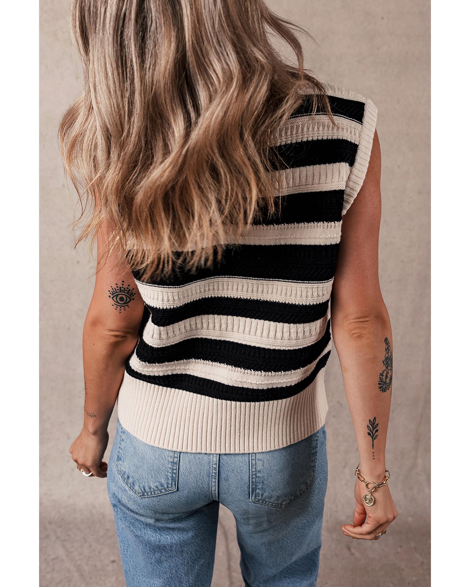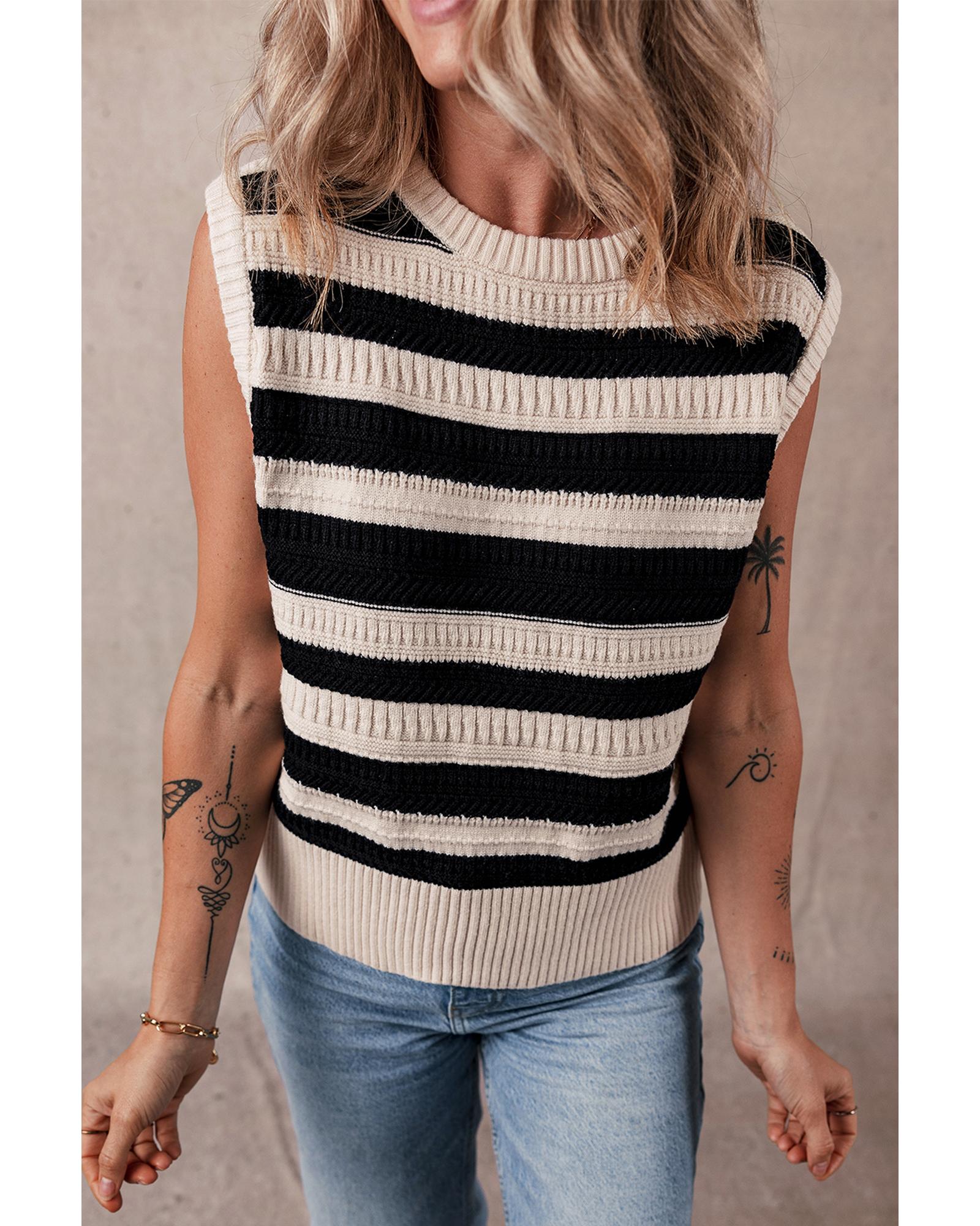 Black Stripe Ribbed Trim Knitted Sweater Vest – L