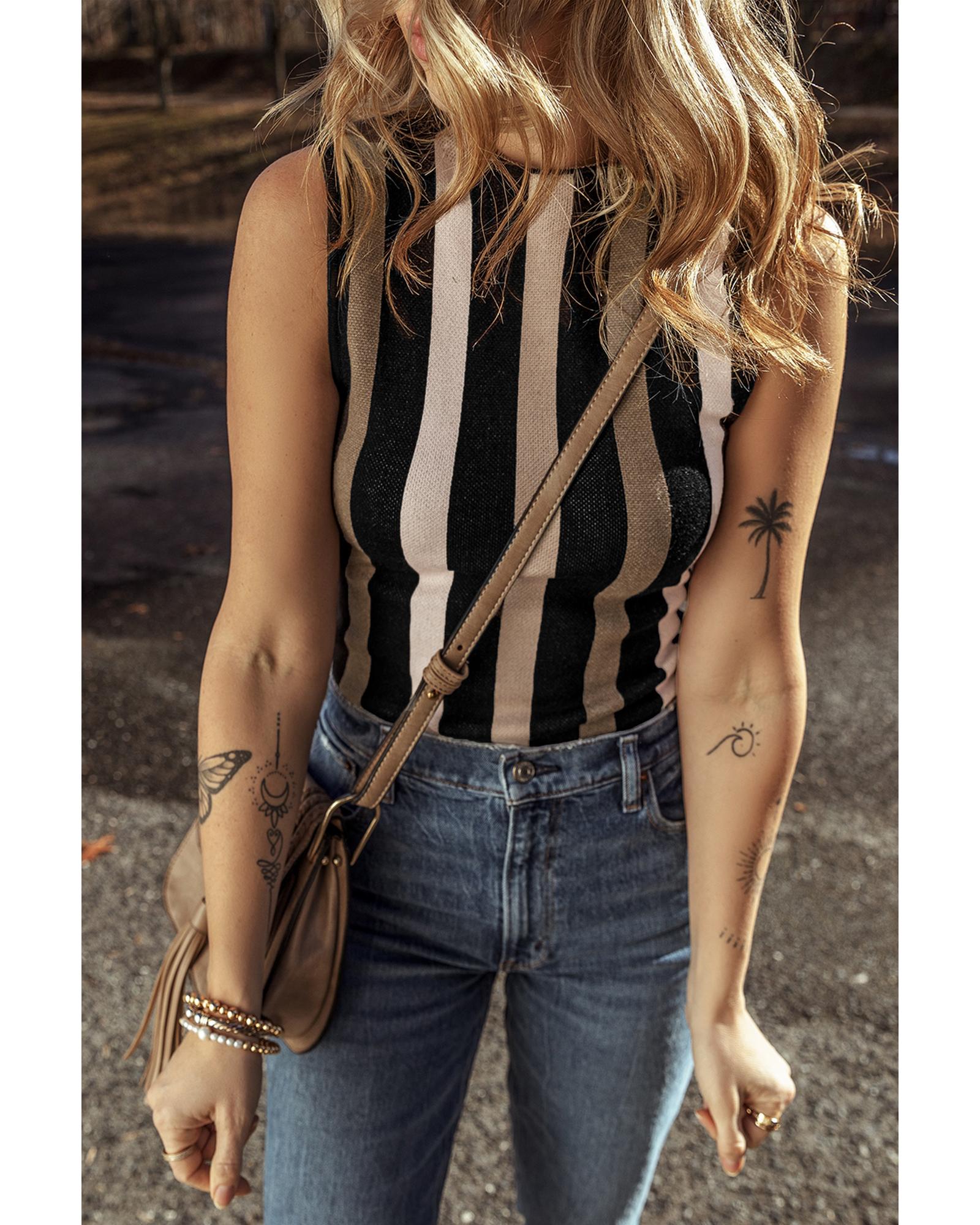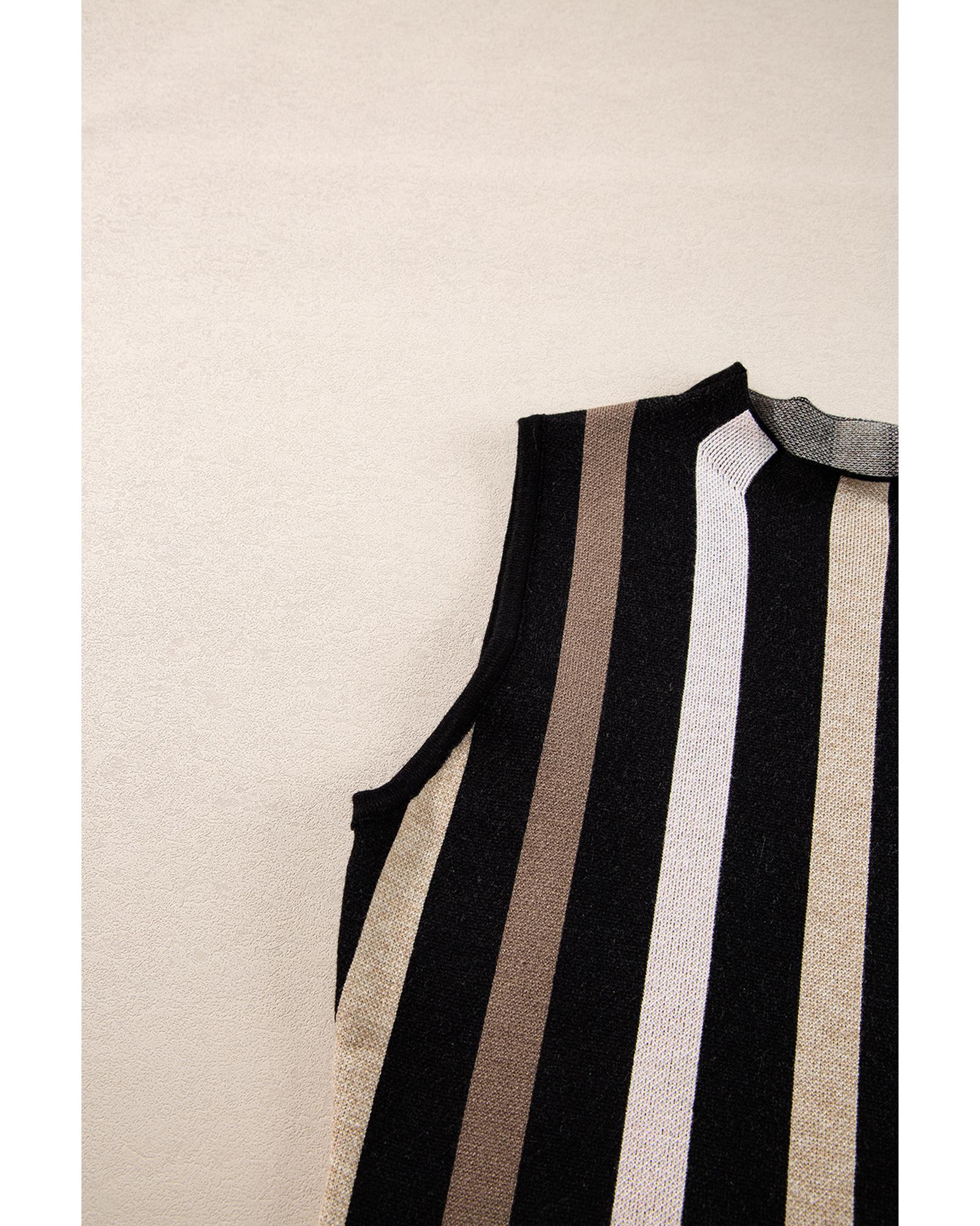 - Black Stripe Slim Fit O Neck Sweater Vest