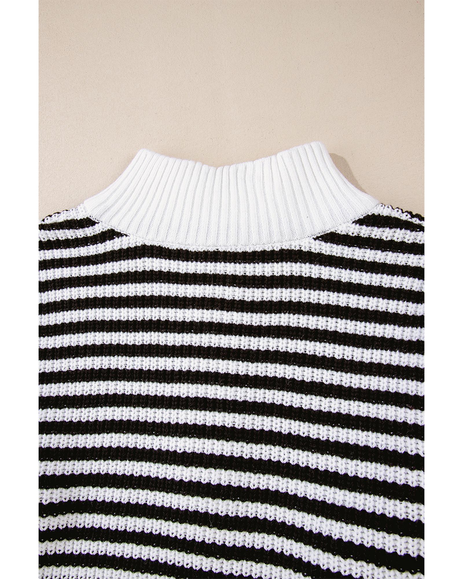 Black Stripe Zip up Collar Drop Shoulder Sweater – M