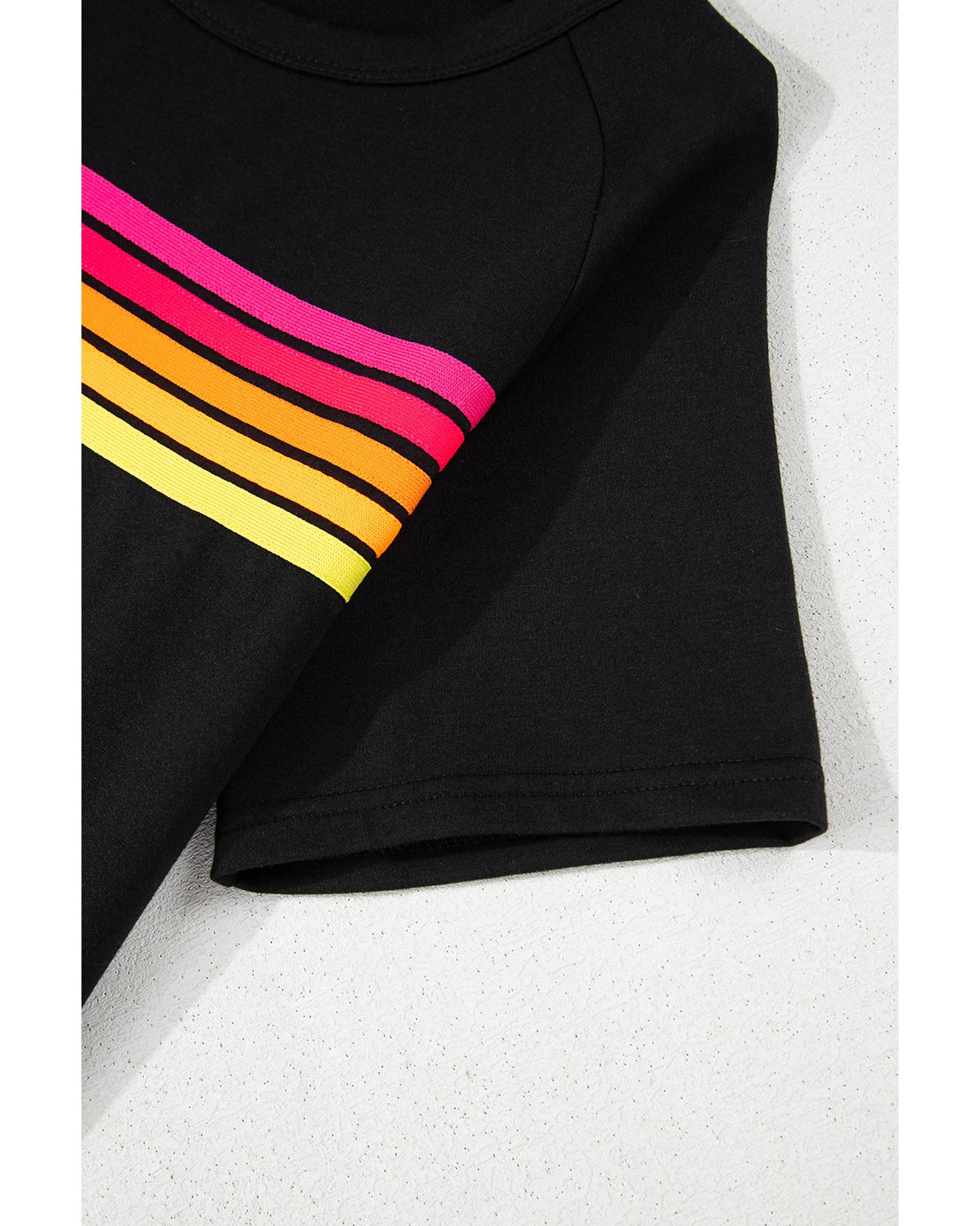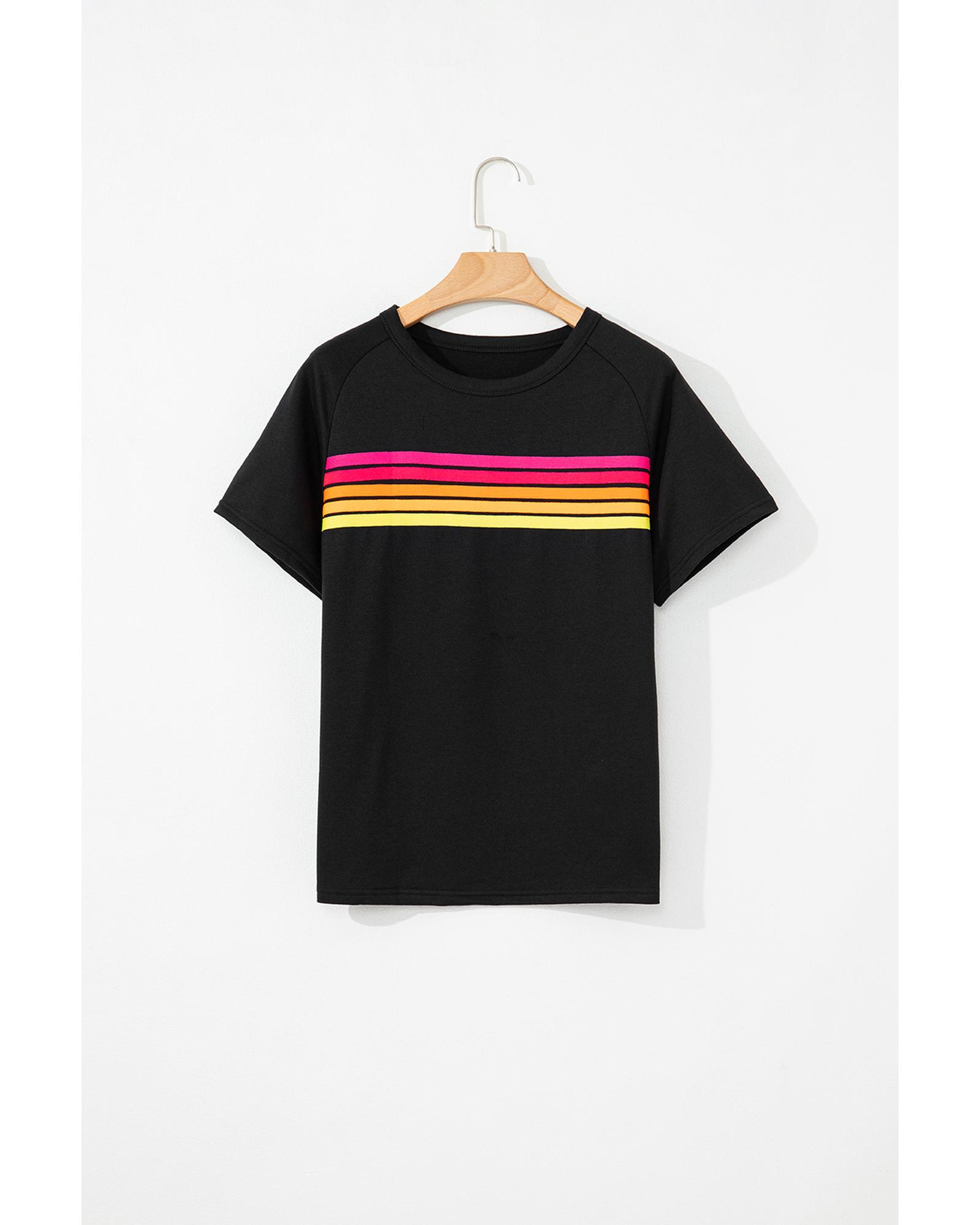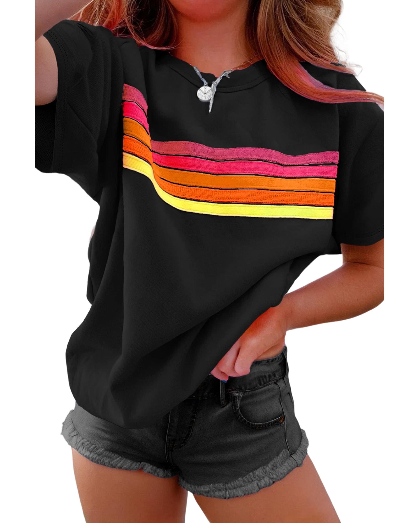 Black Striped Patch Front Casual Tee – XL