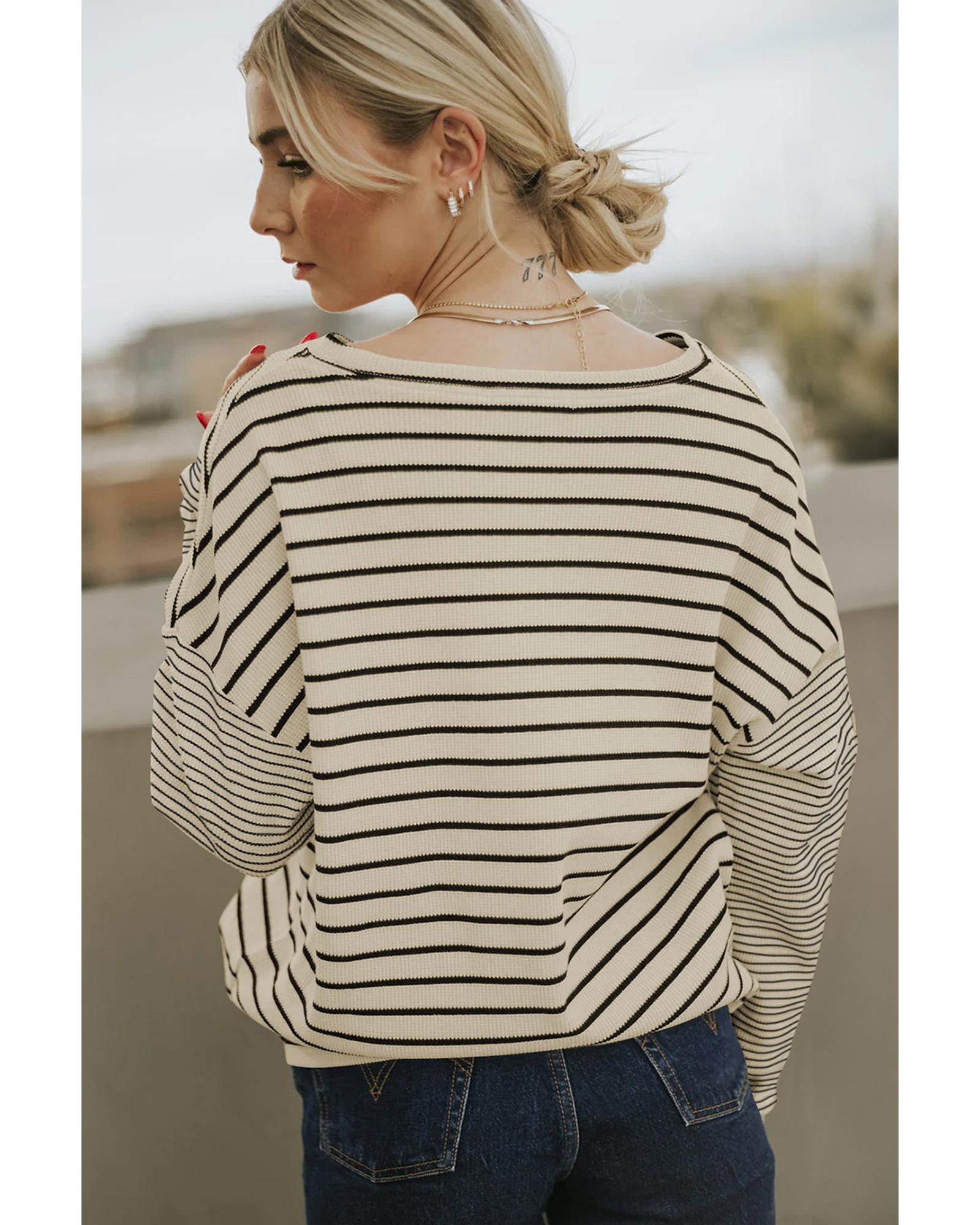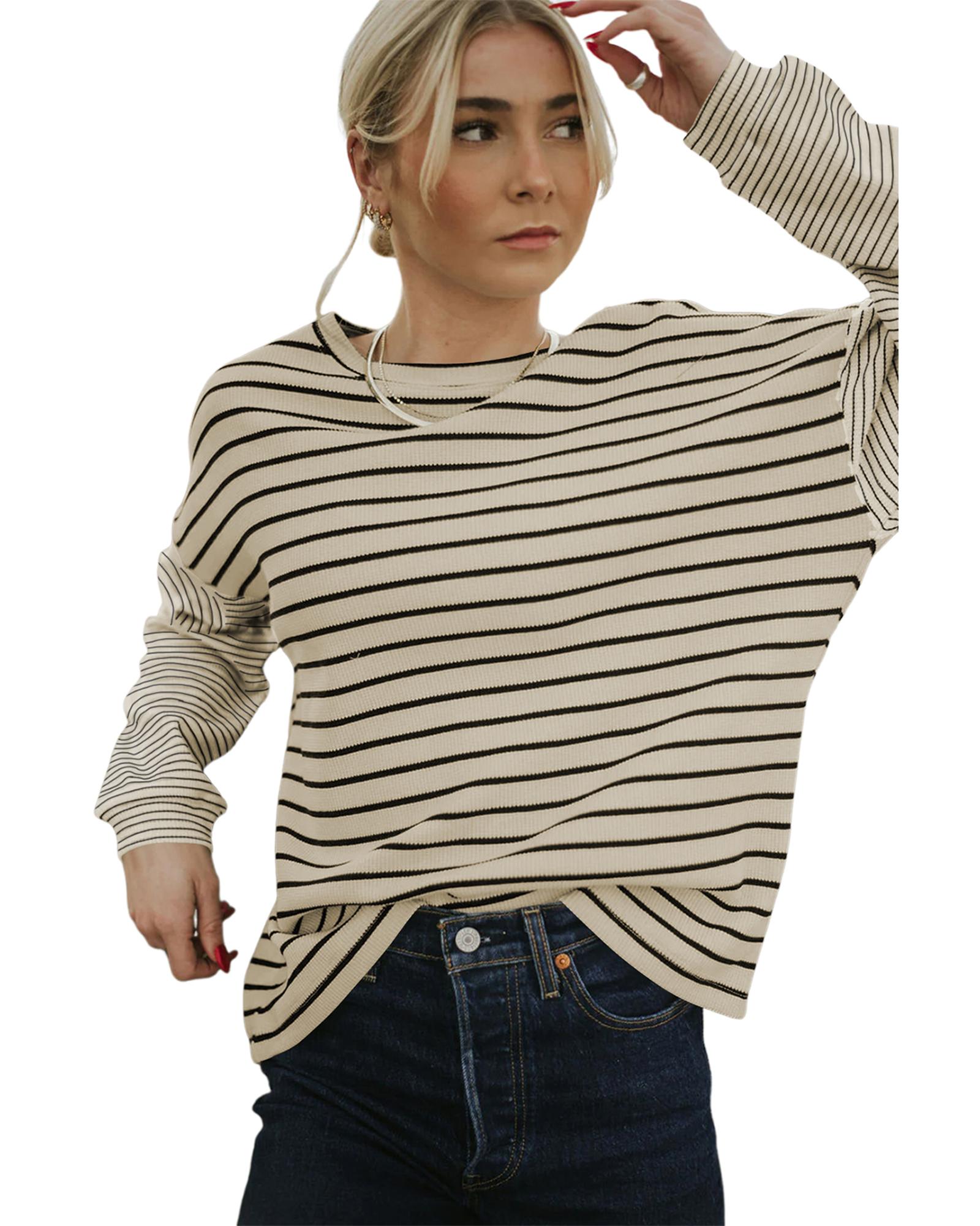 Black Striped Patchwork Loose Long Sleeve Tee – S