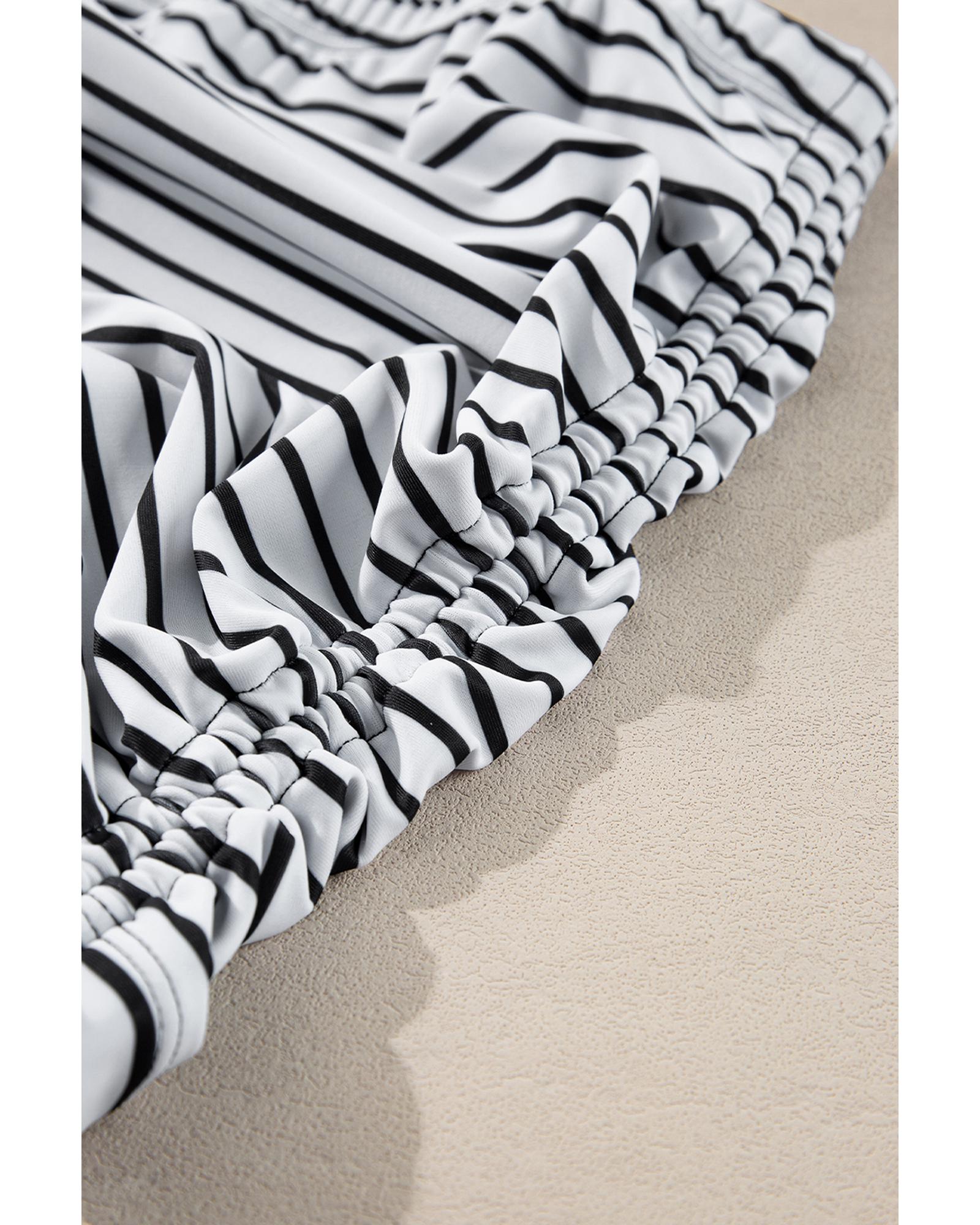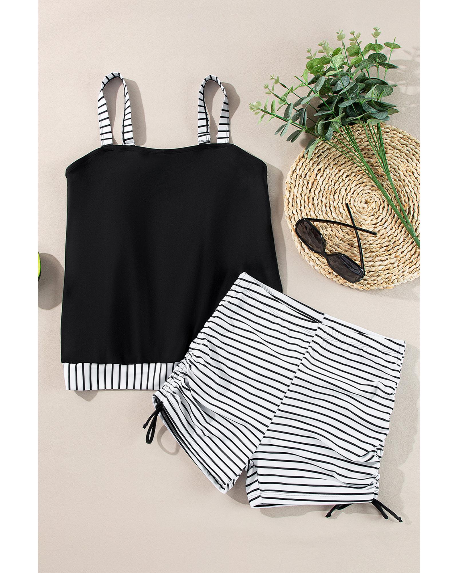Black Striped Patchwork Side Drawstring Bottoms Tankini Set – S