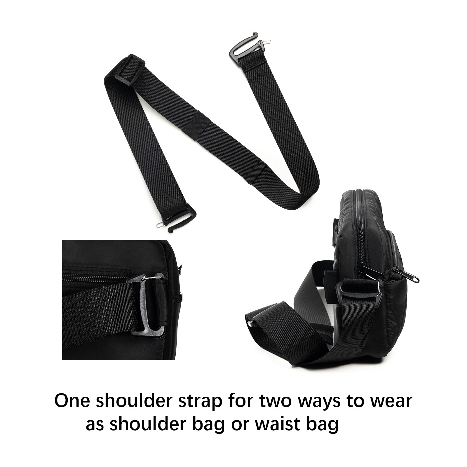 - Adjustable & Versatile Strap: The sturdy, adjustable strap (approx. 23.6 inches to 59 inches / 60cm to 150cm) allows you to customize the fit and wear it comfortably as a belt bag, waist pack, crossbody bag, or shoulder sling.