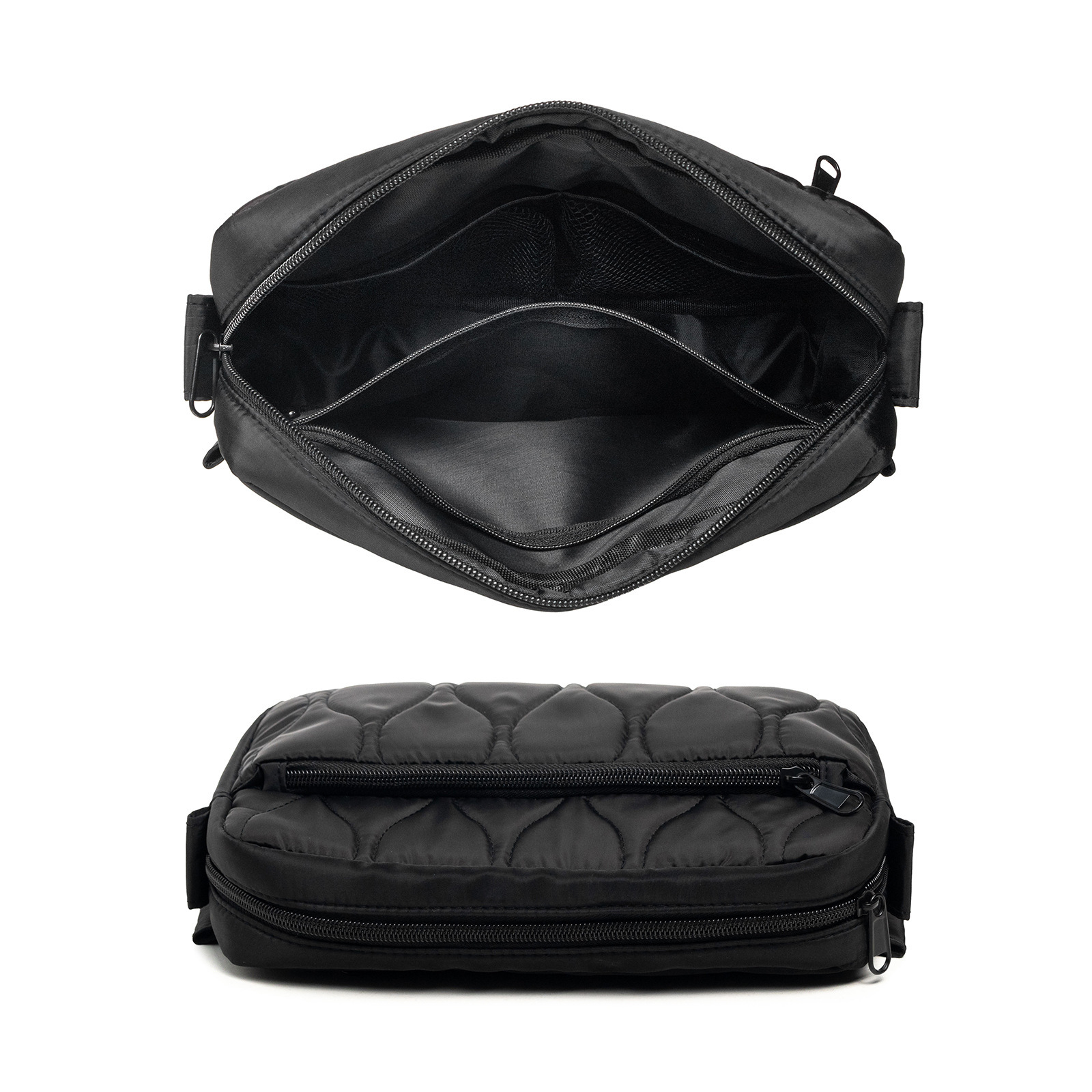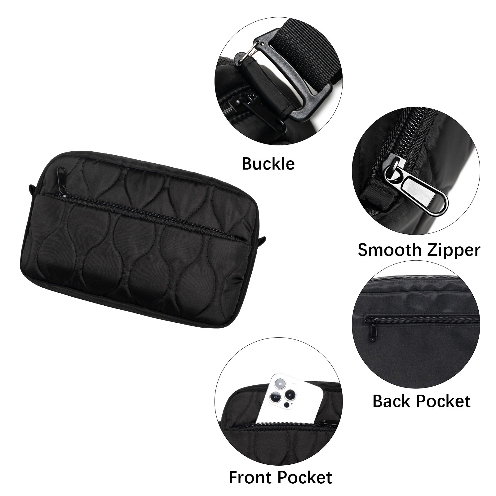 Black Stylish Quilted Belt Bag – Lightweight Nylon Crossbody Fanny Pack