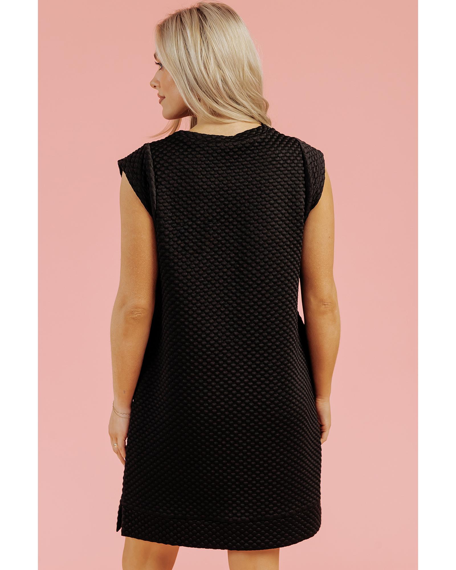 Black Textured Cap Sleeve T-shirt Shift Mini Dress – XL