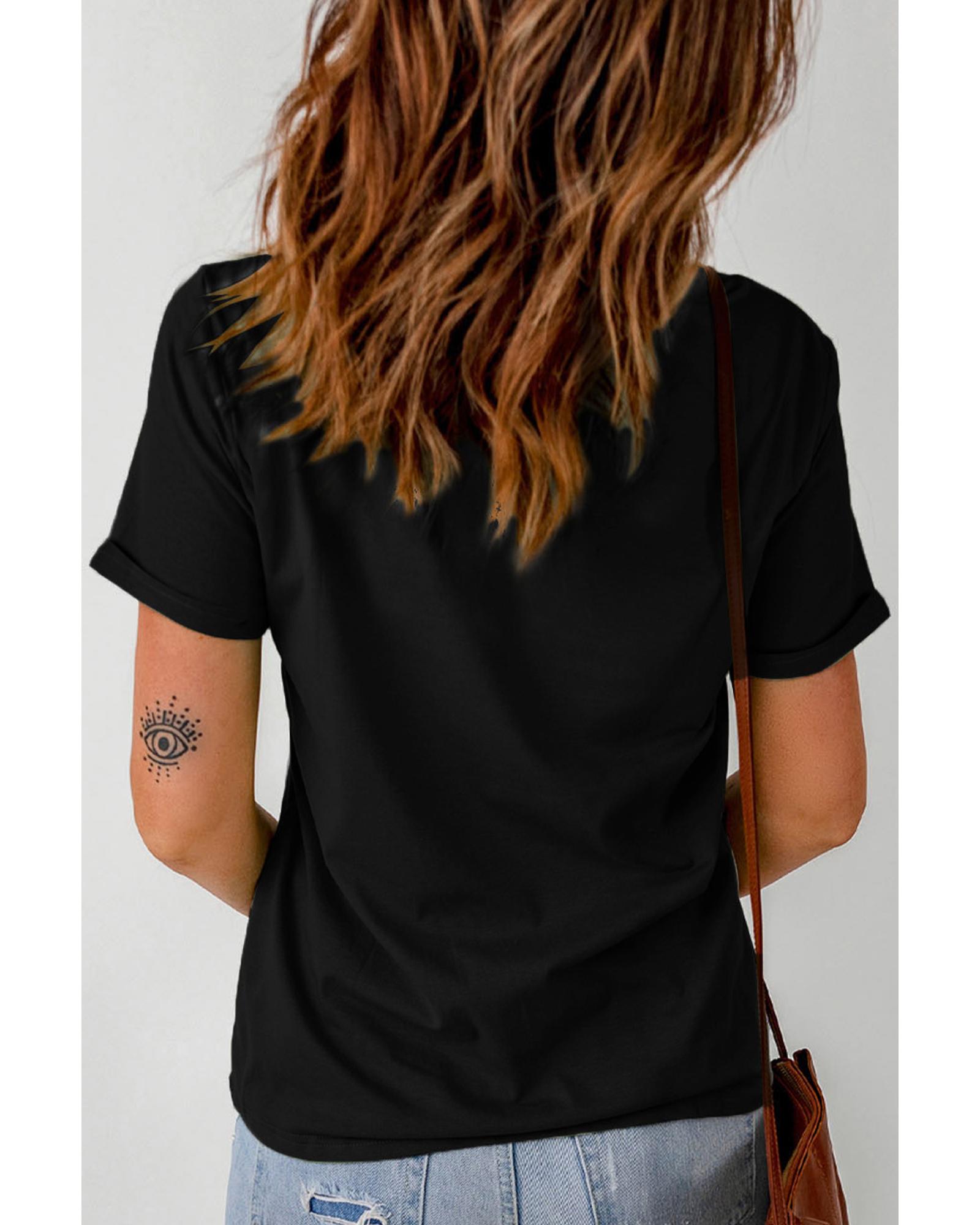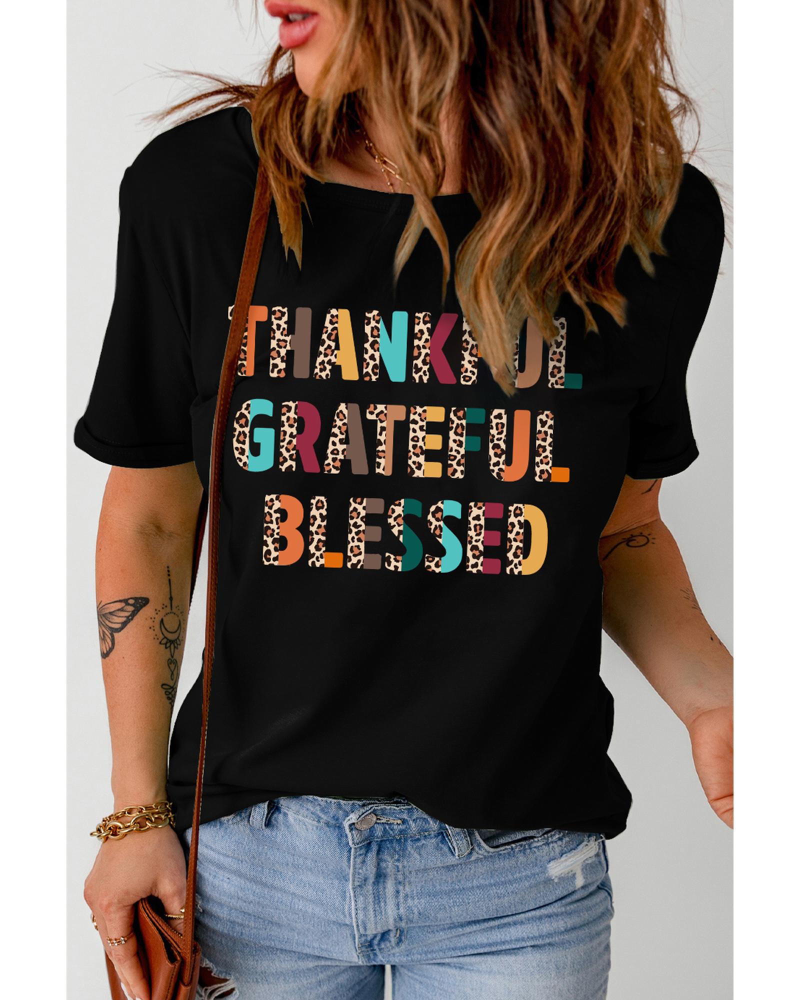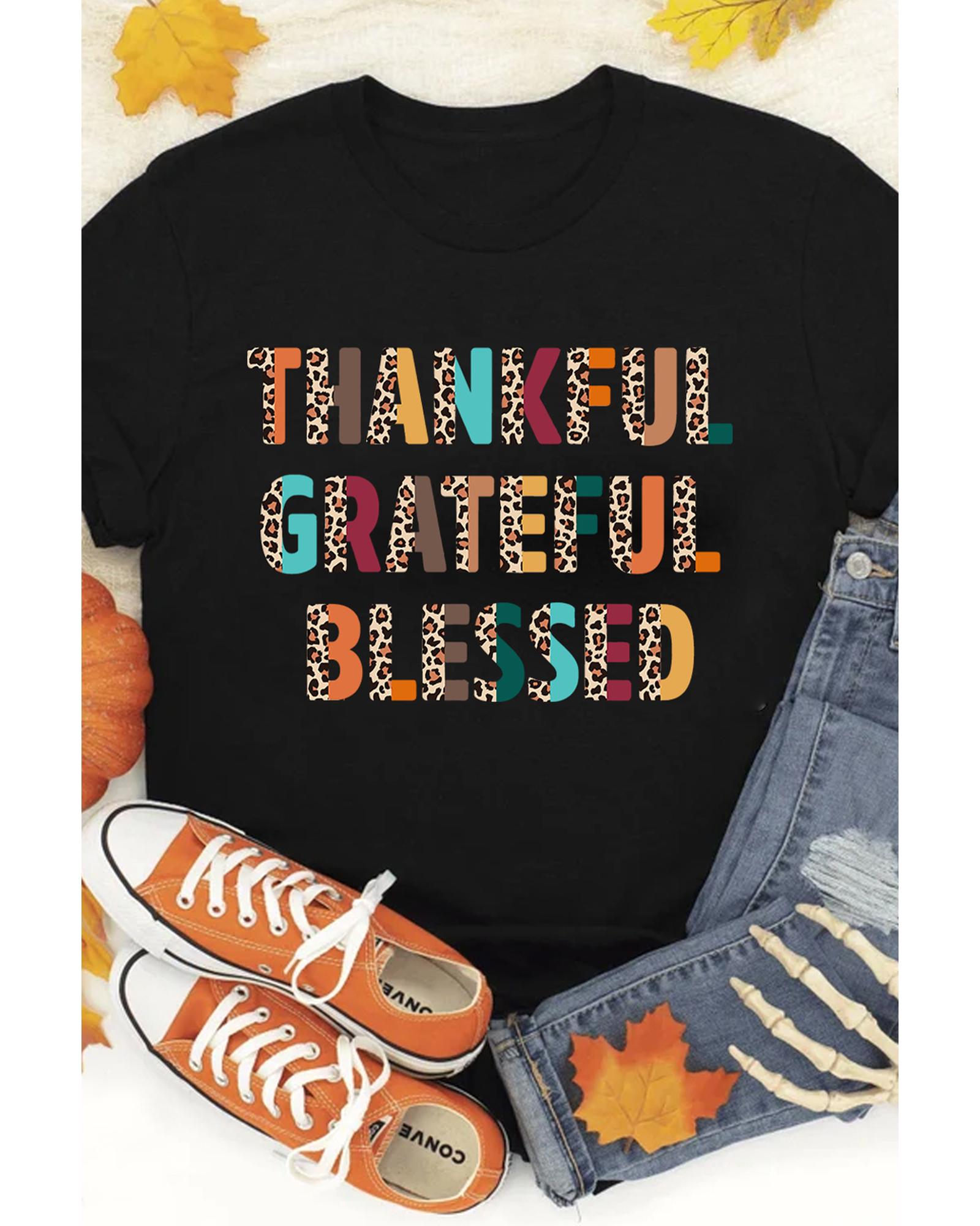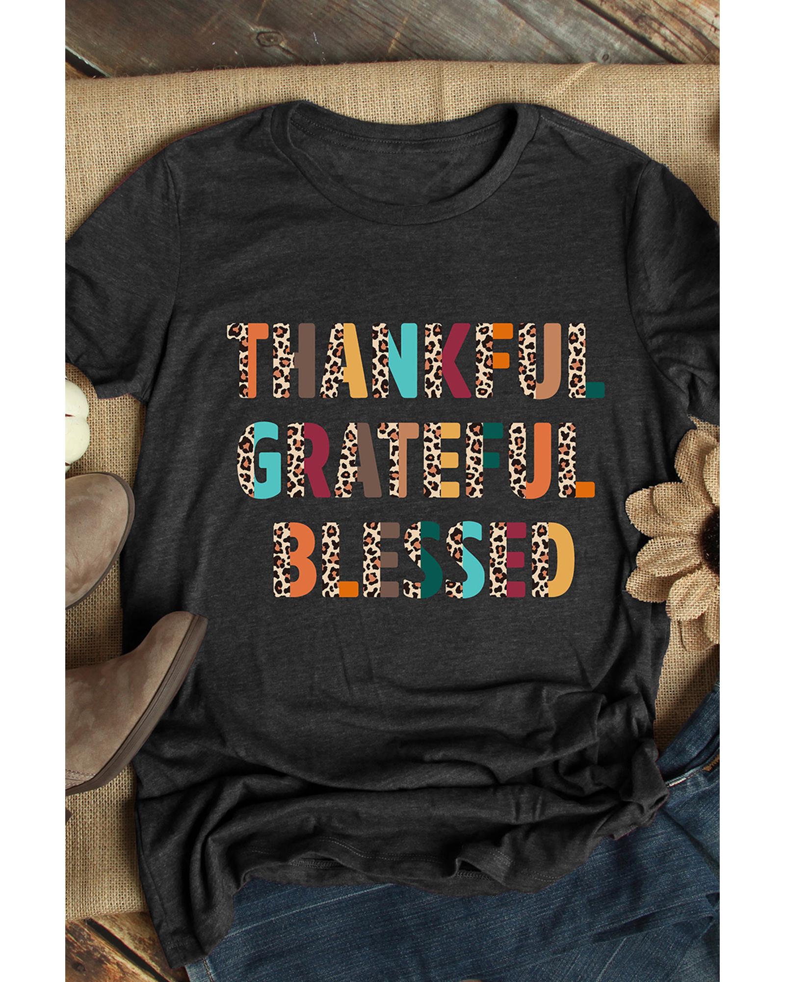 Black Thankful Grateful Blessed Leopard Print Crewneck T Shirt – M