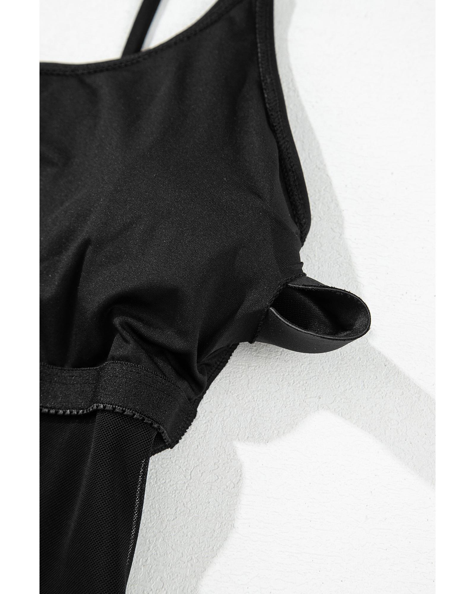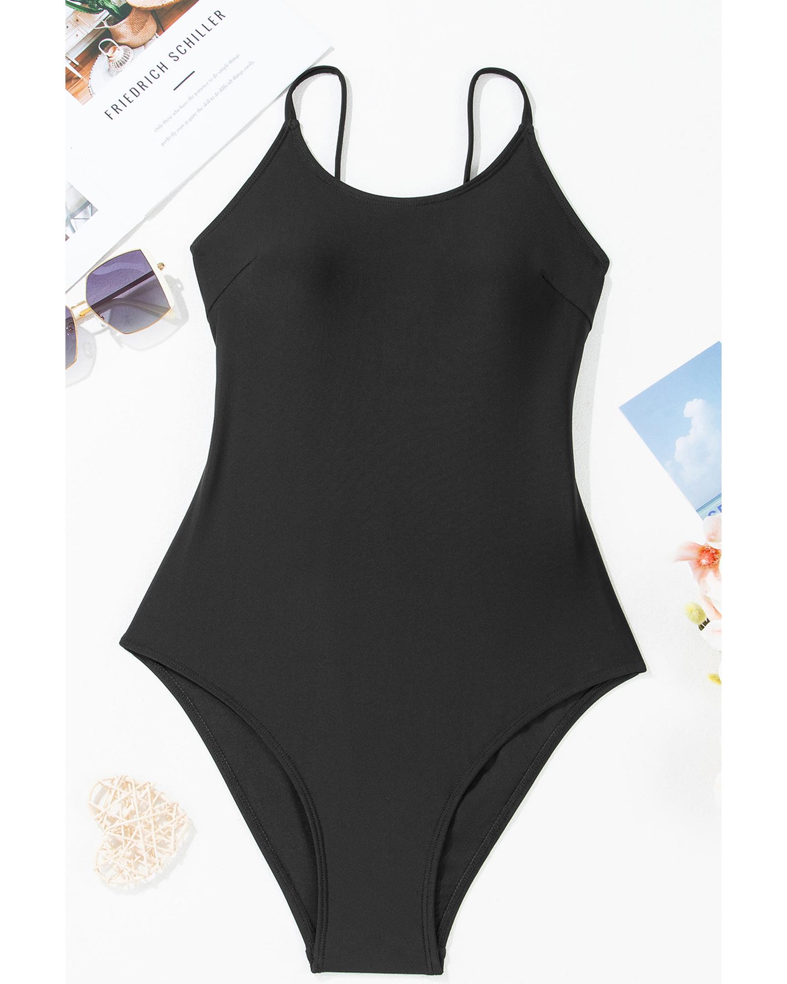 Black Thin Strap Strappy Lace-up Open Back One Piece Swimsuit – L