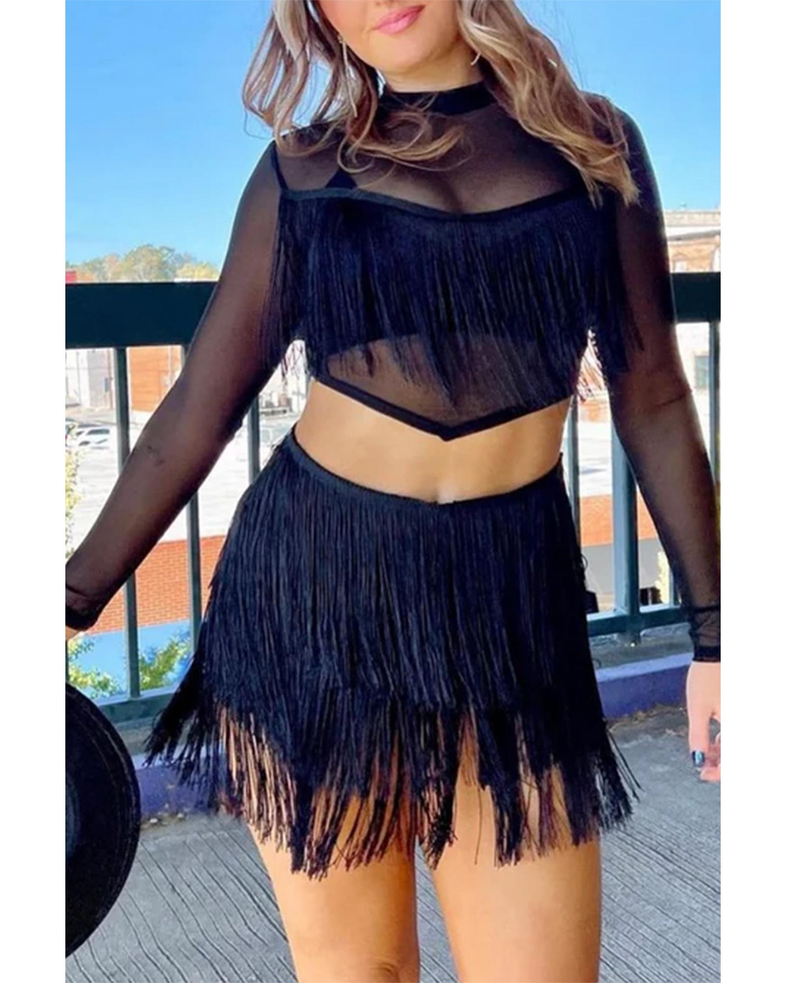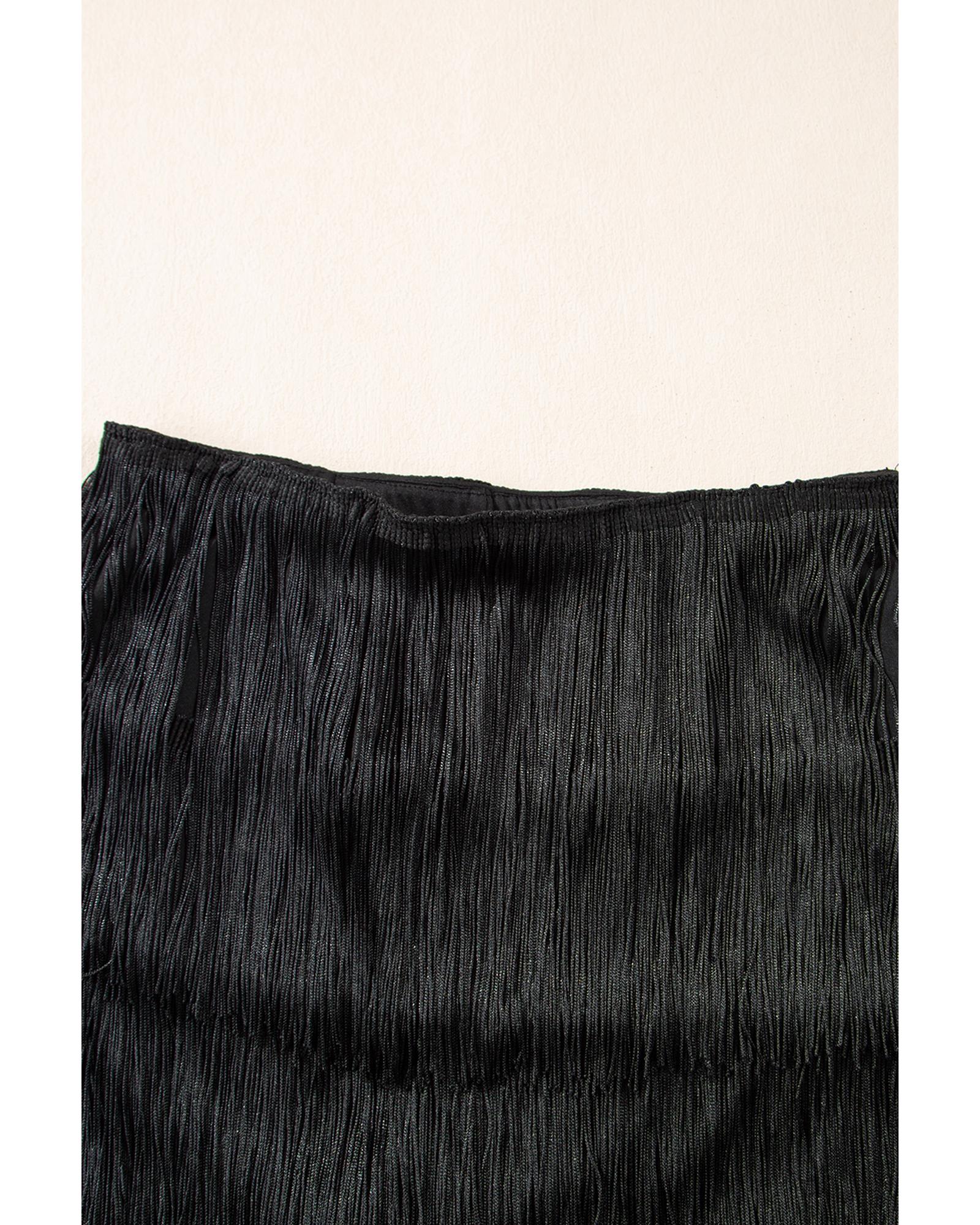Black Tiered Fringe Trimmed Mini Skirt – L