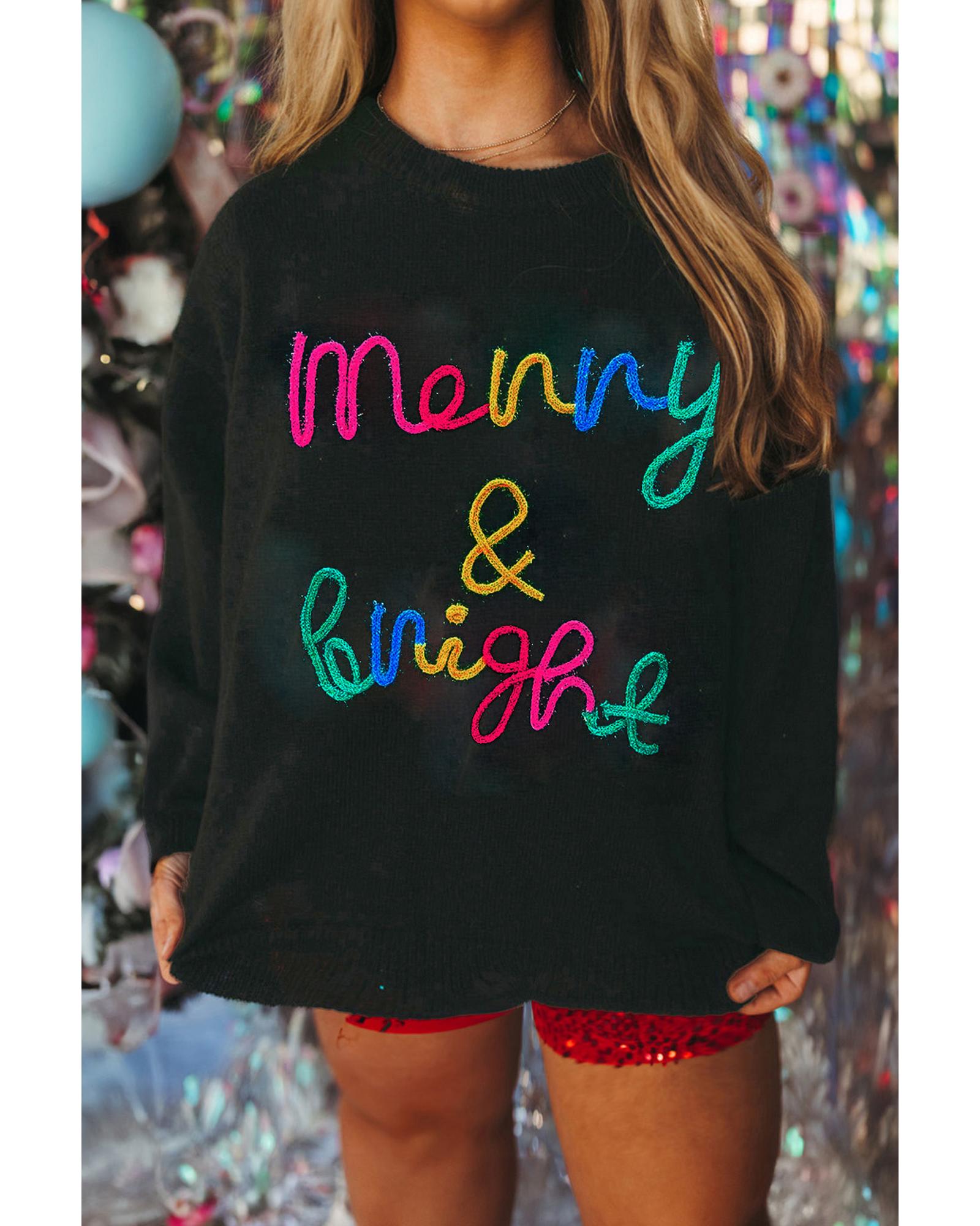 Black Tinsel Merry & Bright Round Neck Plus Size Sweater – 3X