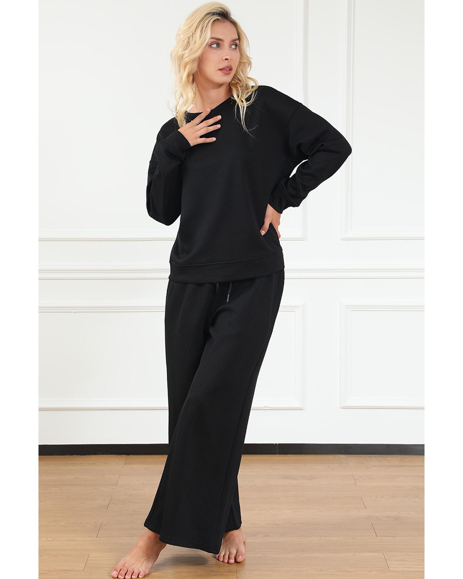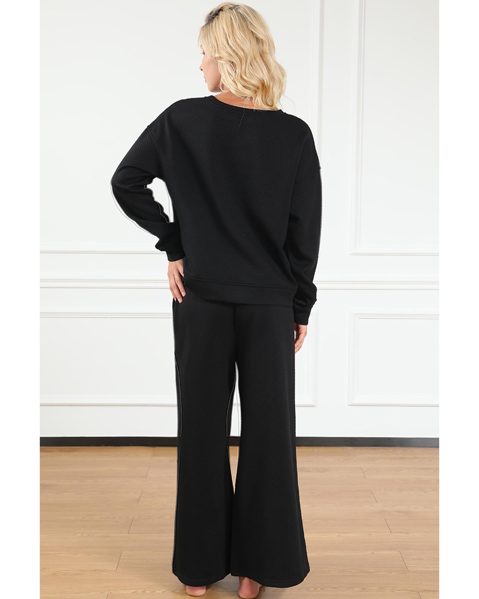 Black Ultra Loose Textured 2pcs Slouchy Outfit – 2XL